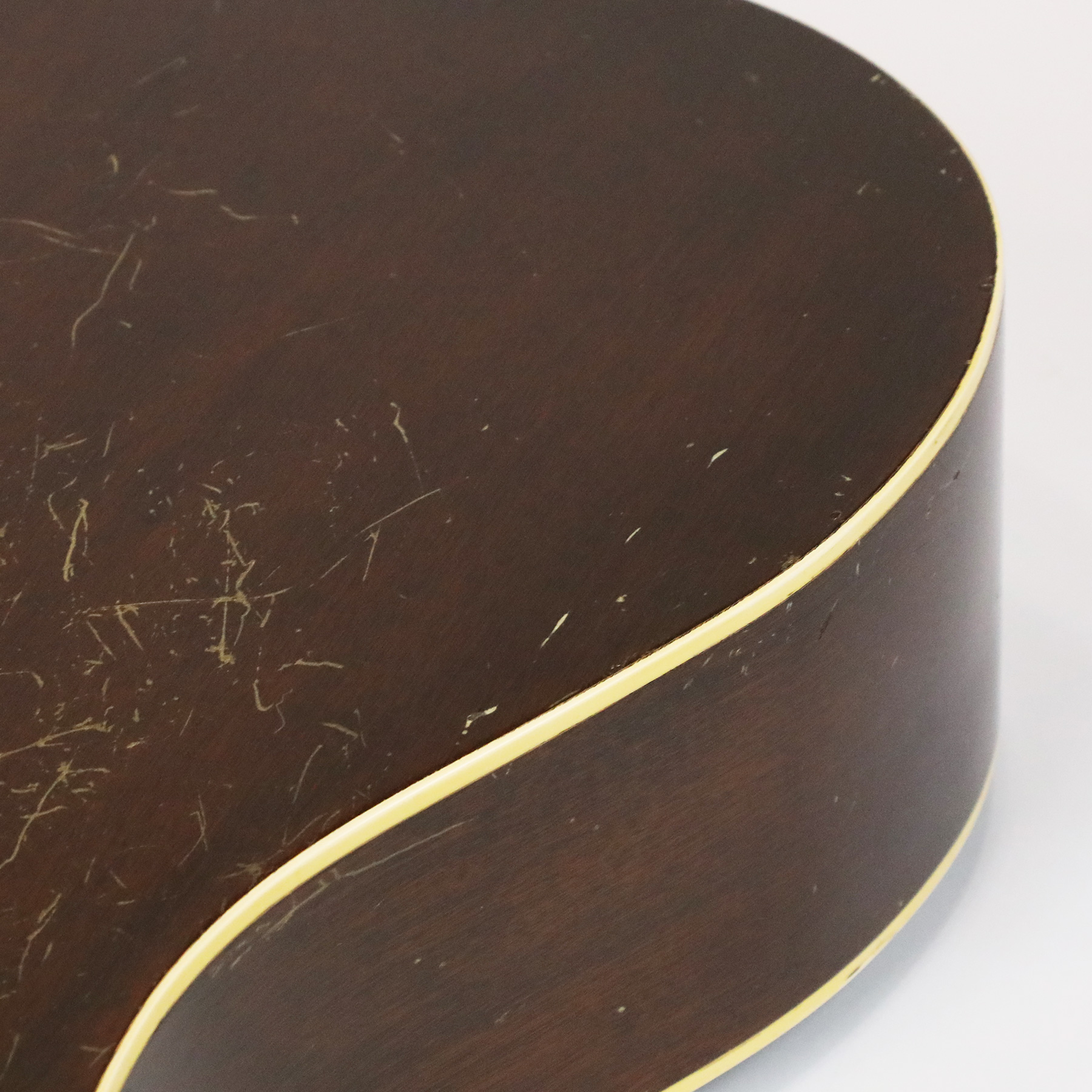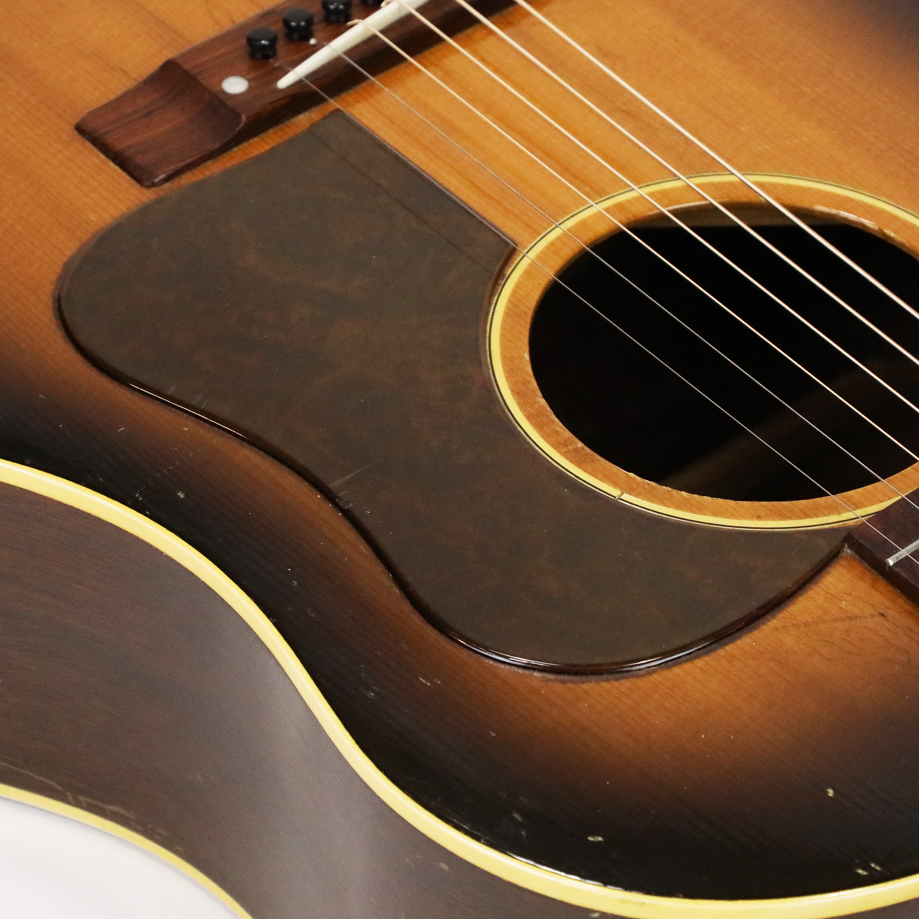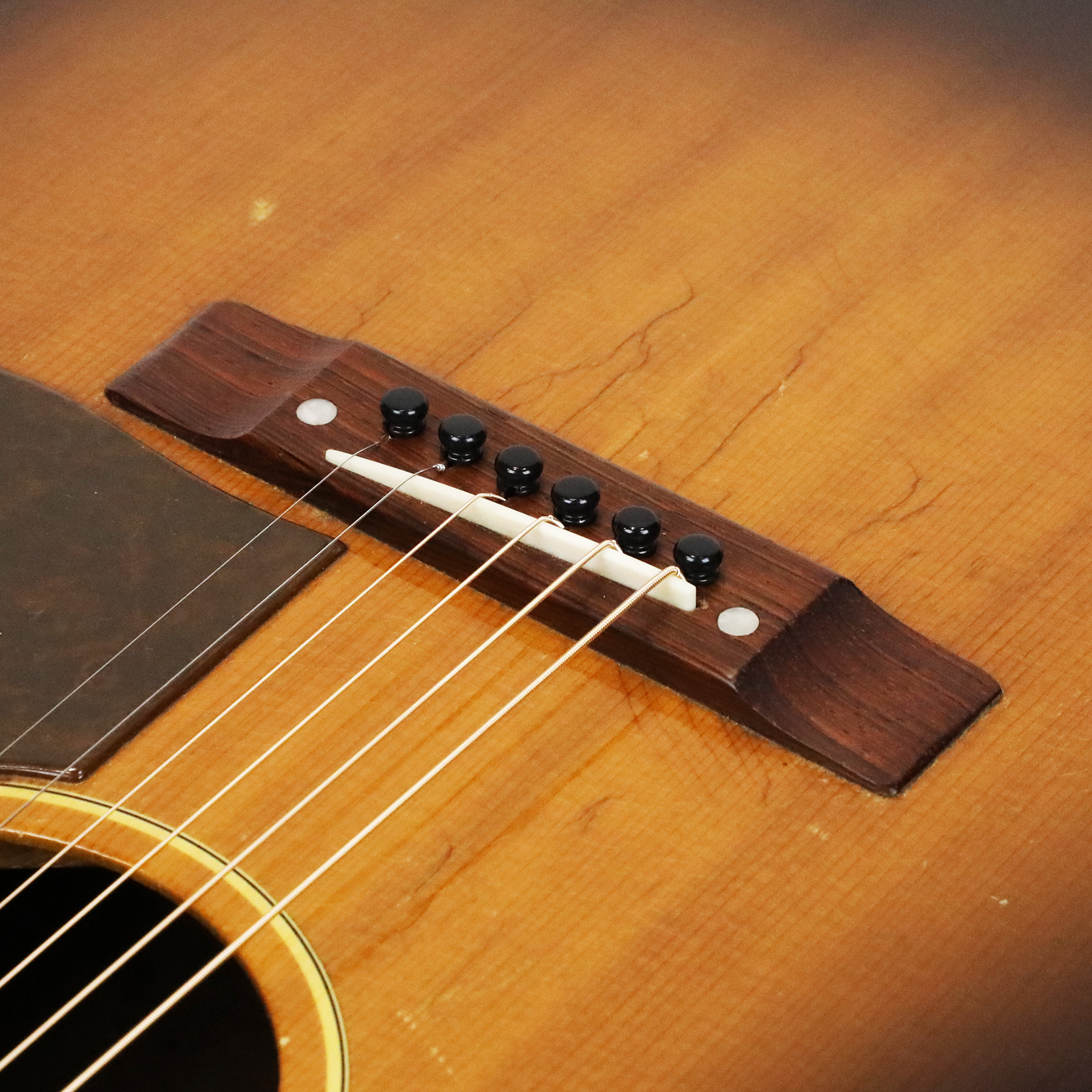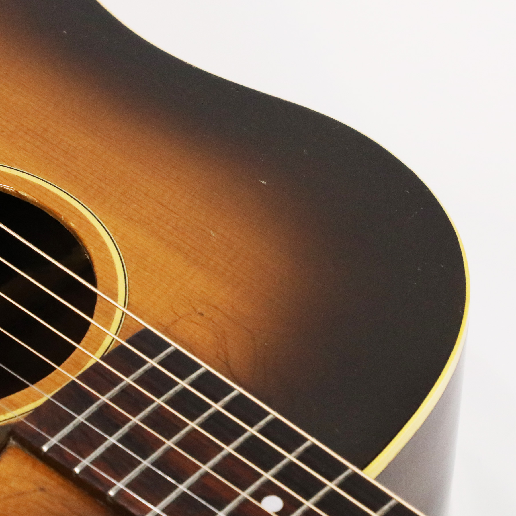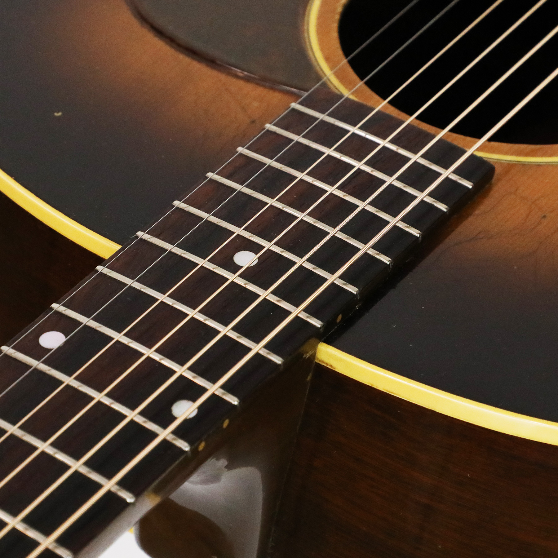 – This is a stunning example with respect to condition and sound. It remains structurally perfect, with no cracks, no breaks, and no repairs. Quite objectively it sounds better than any late-’40s Gibson Jumbo I’ve owned, and that’s most certainly because the neck is a very large completely solid piece of mahogany. This guitar is more resonant and clear than your typical J-45, and it’s not nearly as expensive.