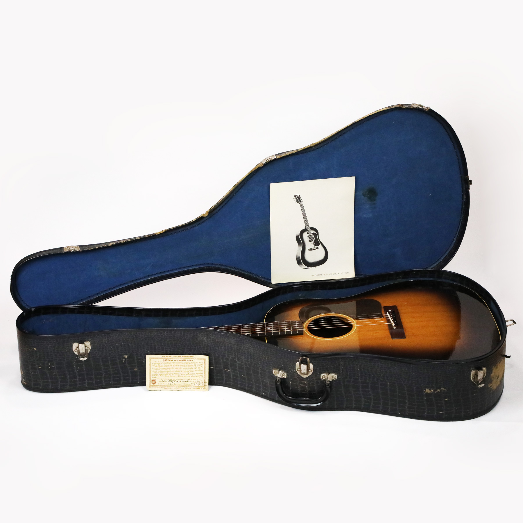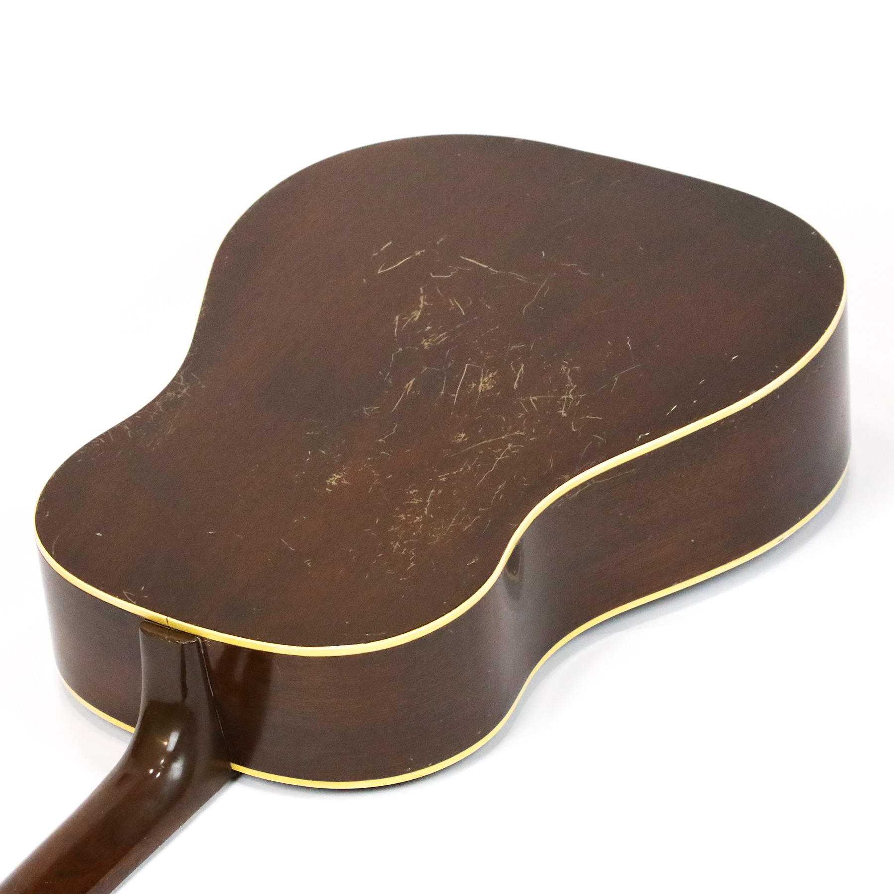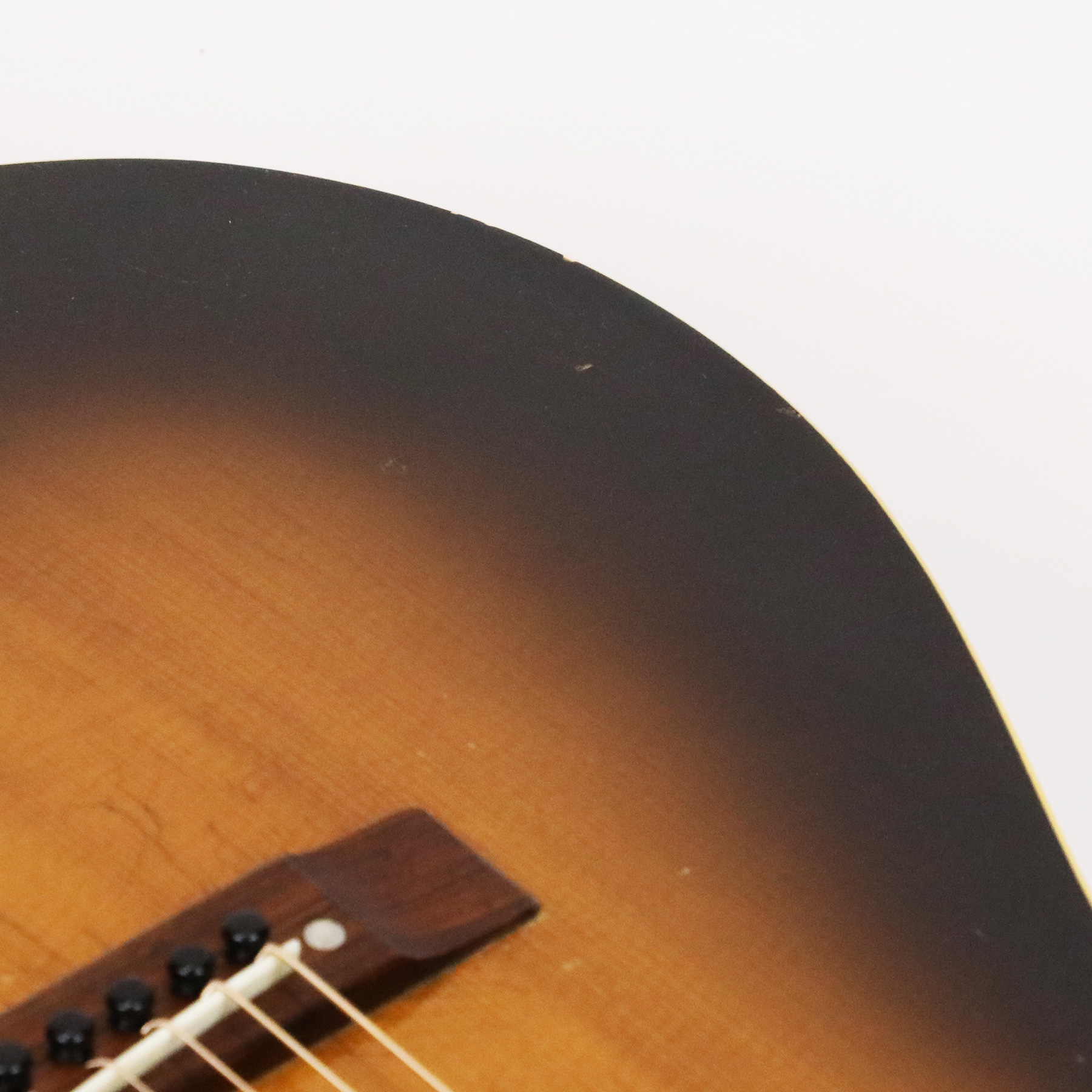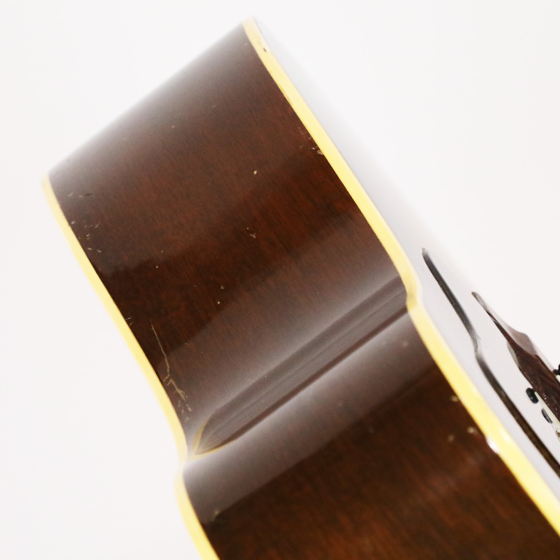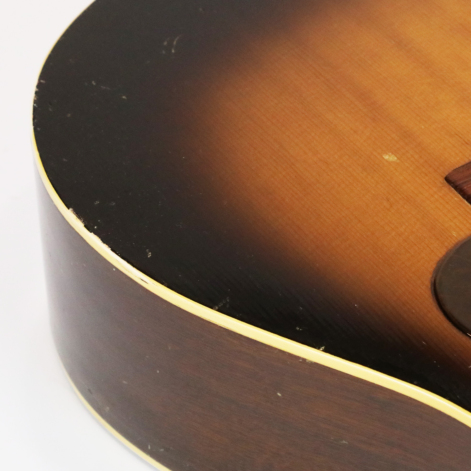 – This is a stunning example with respect to condition and sound. It remains structurally perfect, with no cracks, no breaks, and no repairs. Quite objectively it sounds better than any late-’40s Gibson Jumbo I’ve owned, and that’s most certainly because the neck is a very large completely solid piece of mahogany. This guitar is more resonant and clear than your typical J-45, and it’s not nearly as expensive.