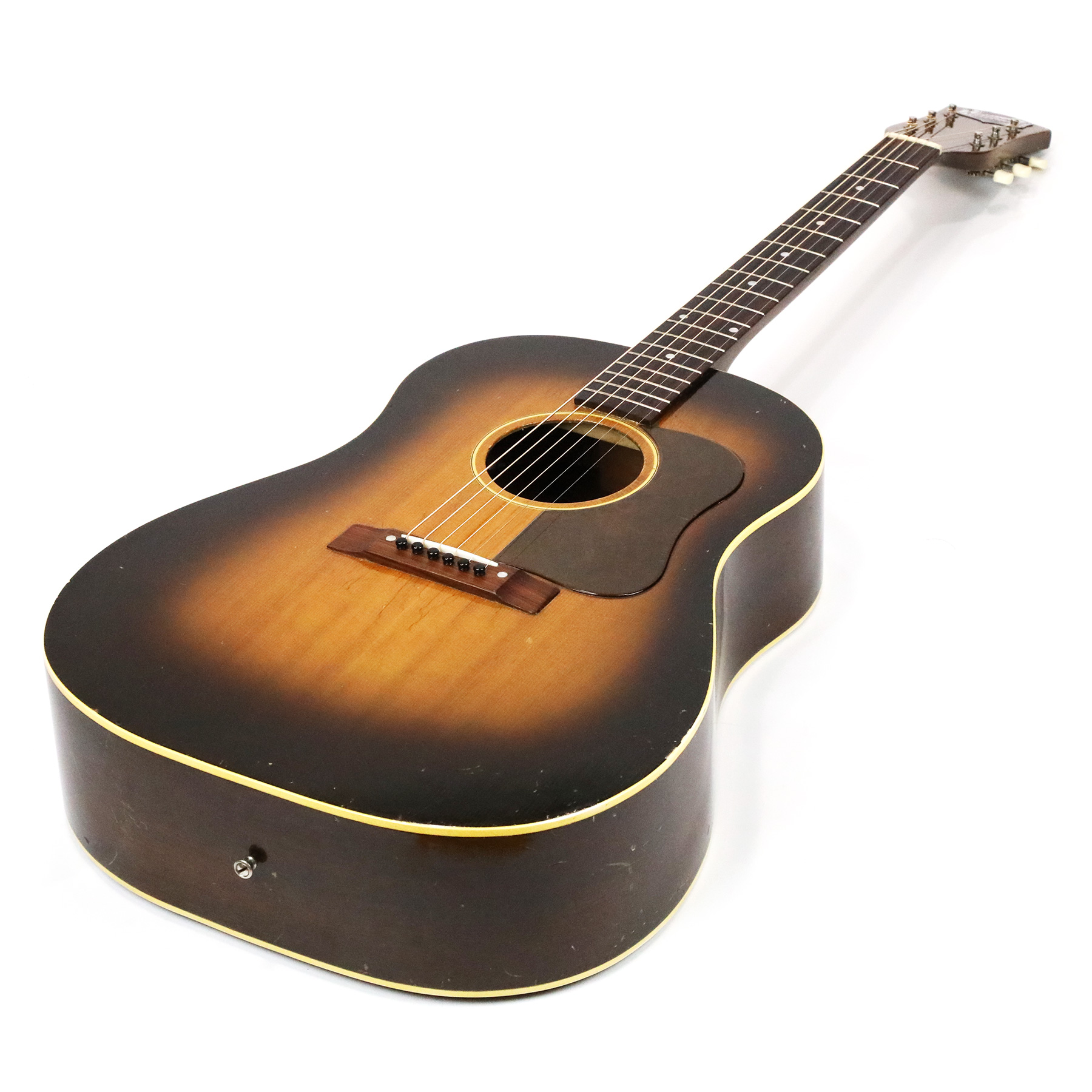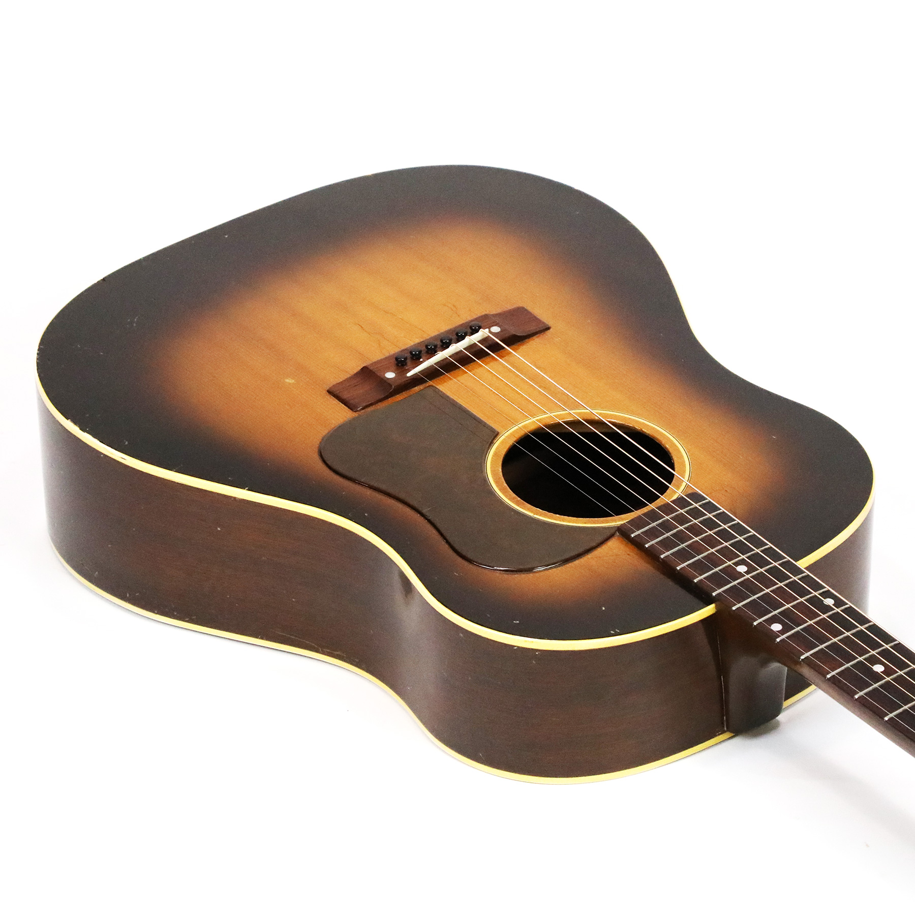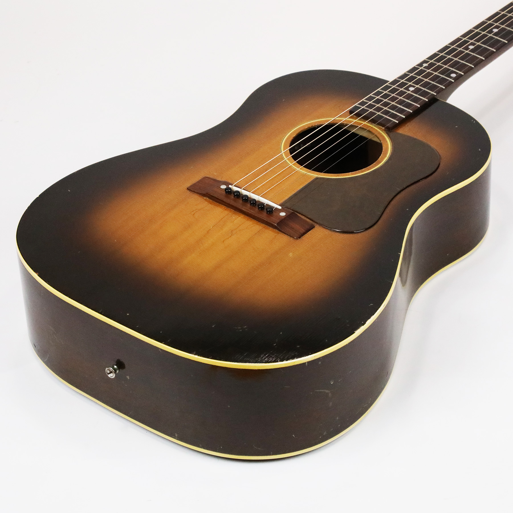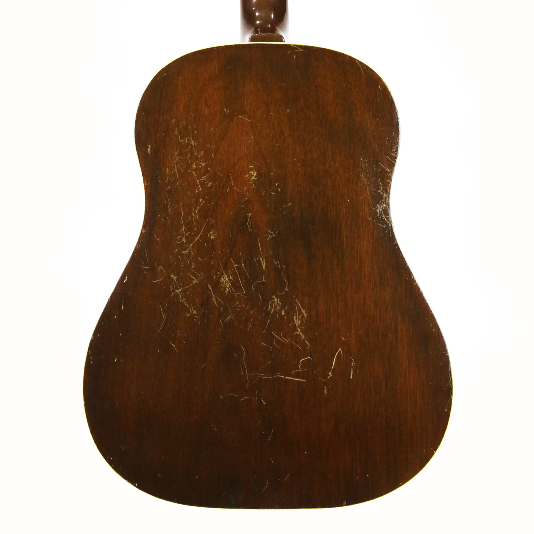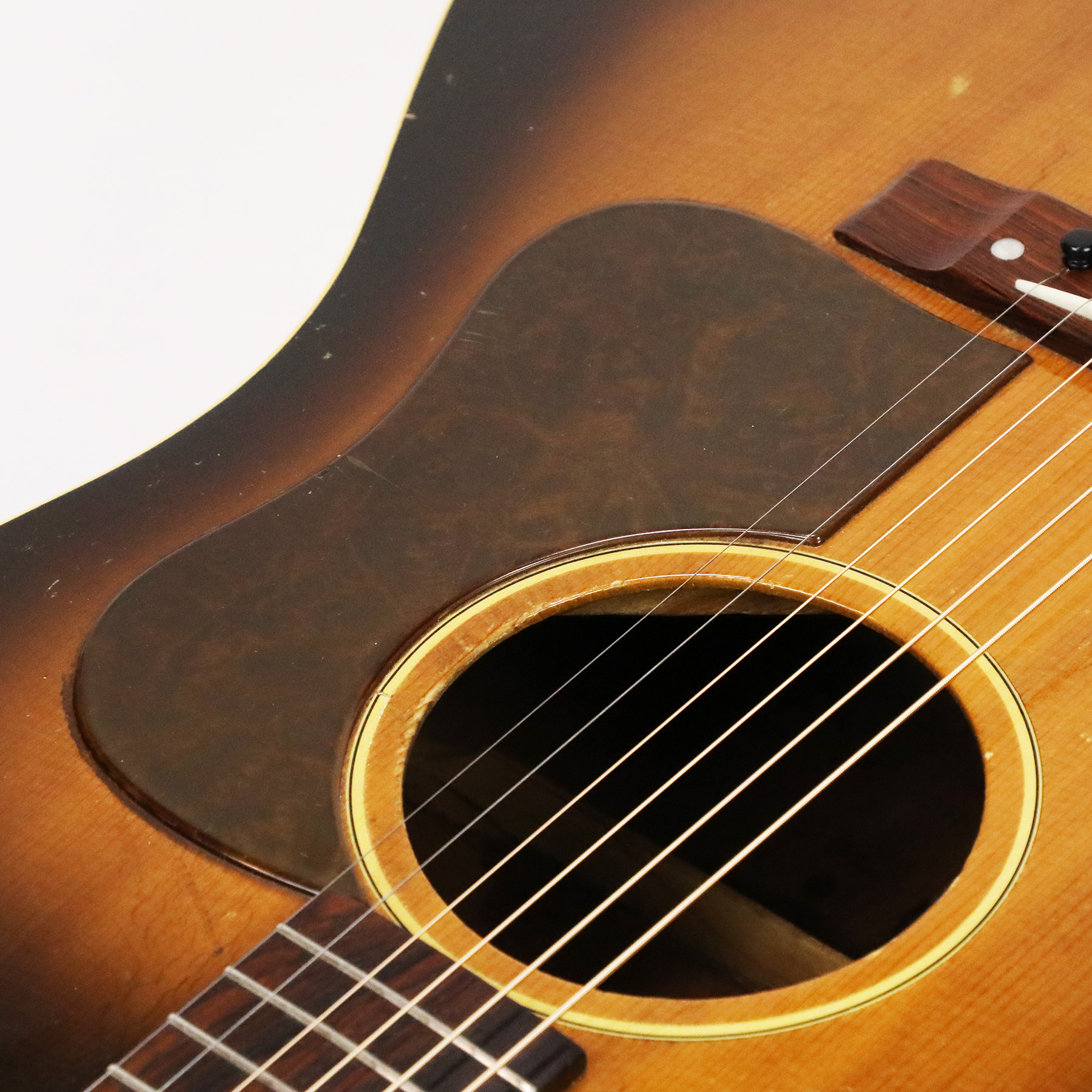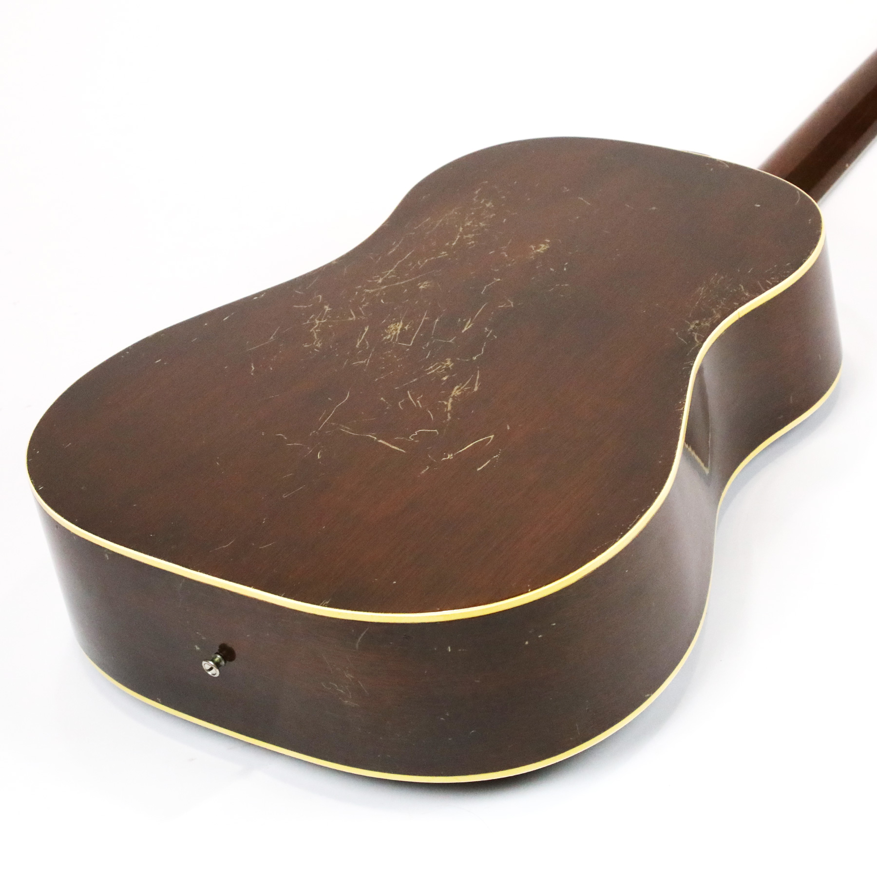 – This is a stunning example with respect to condition and sound. It remains structurally perfect, with no cracks, no breaks, and no repairs. Quite objectively it sounds better than any late-’40s Gibson Jumbo I’ve owned, and that’s most certainly because the neck is a very large completely solid piece of mahogany. This guitar is more resonant and clear than your typical J-45, and it’s not nearly as expensive.
