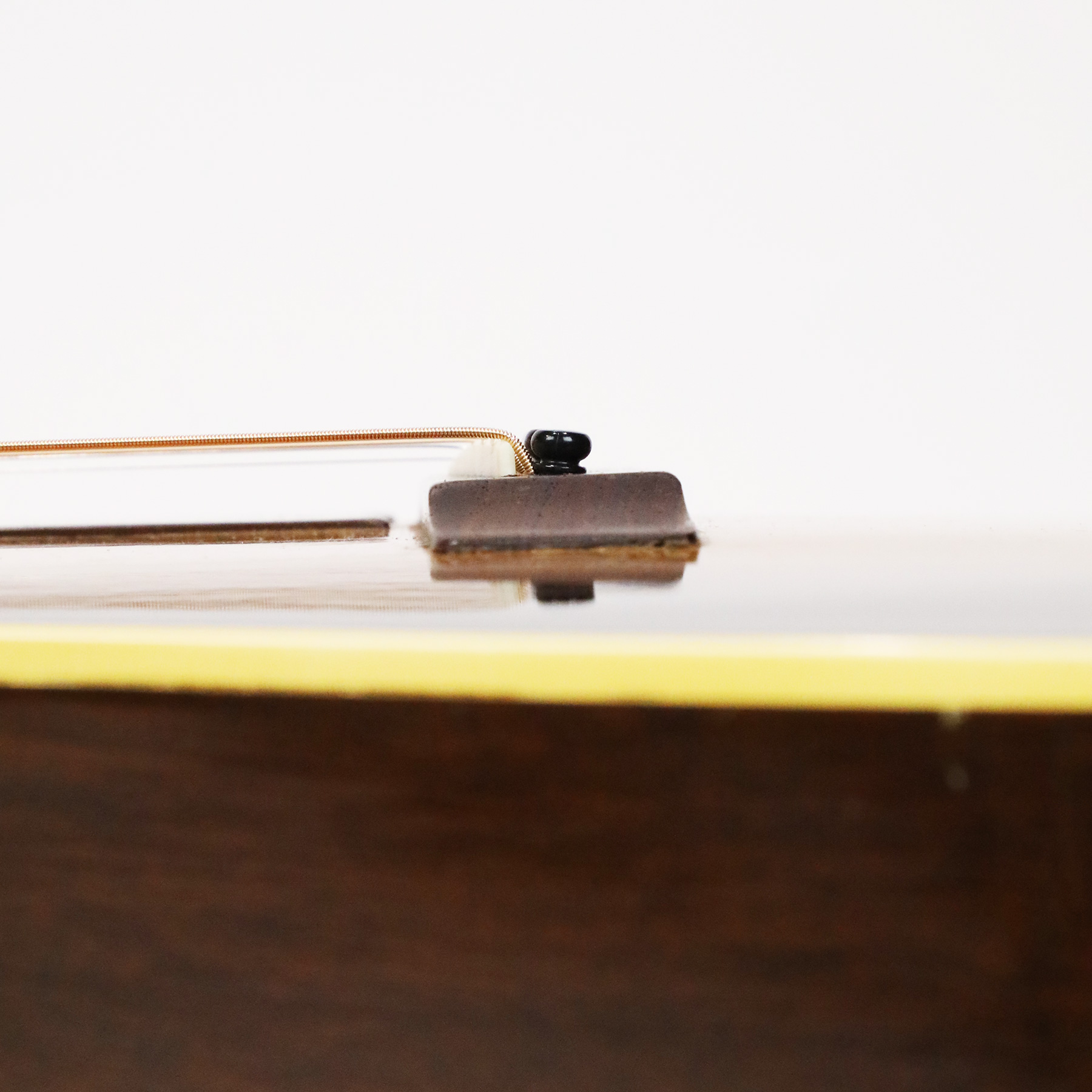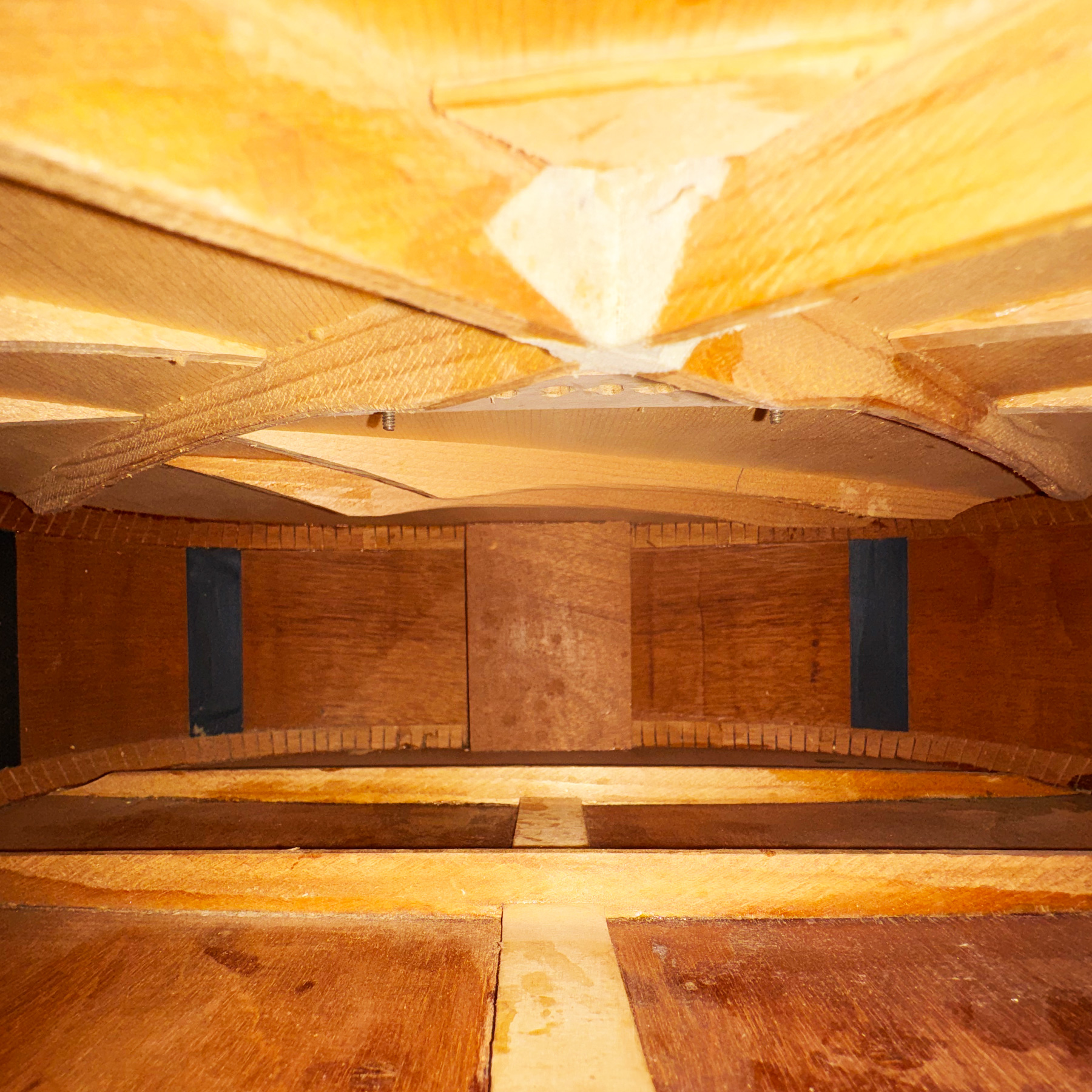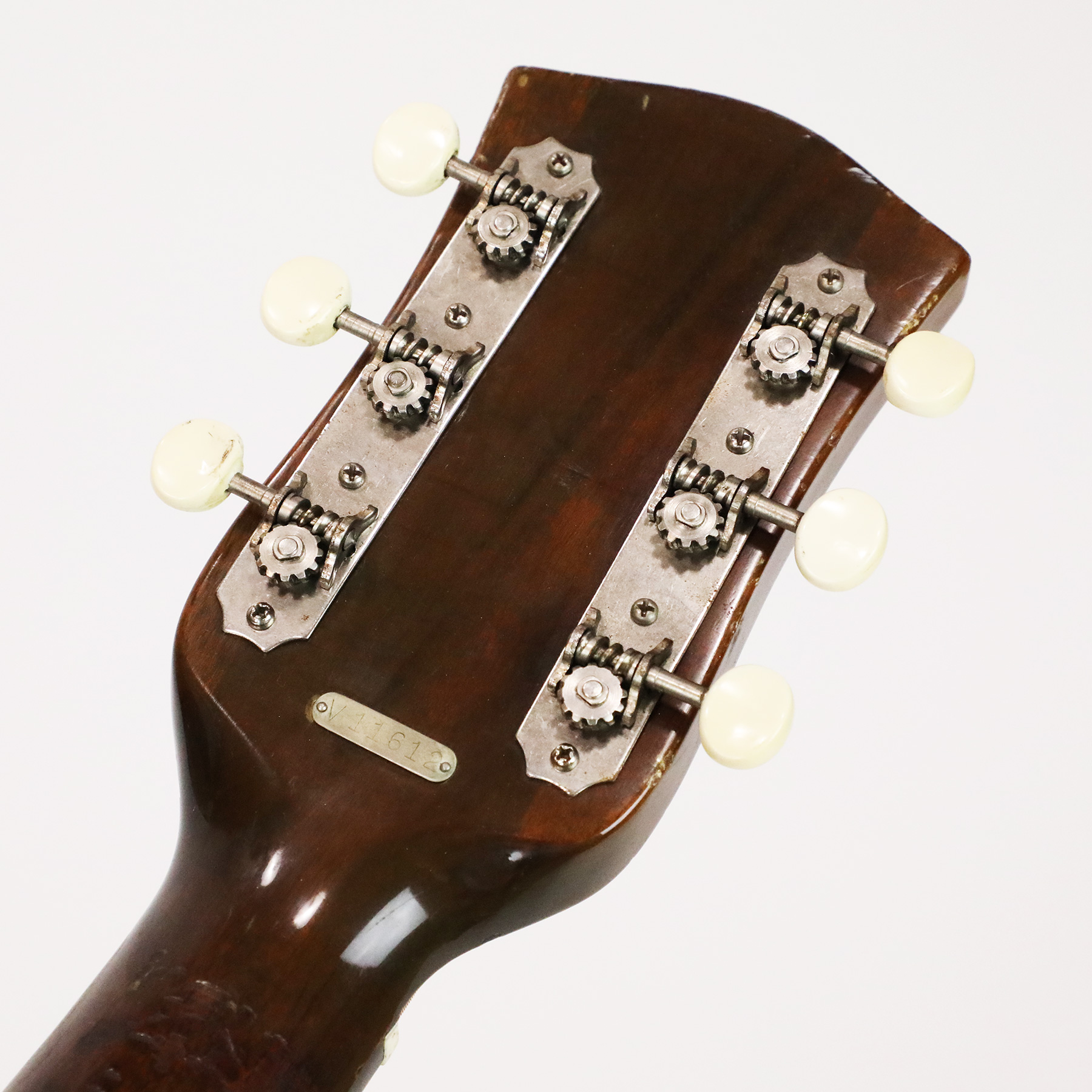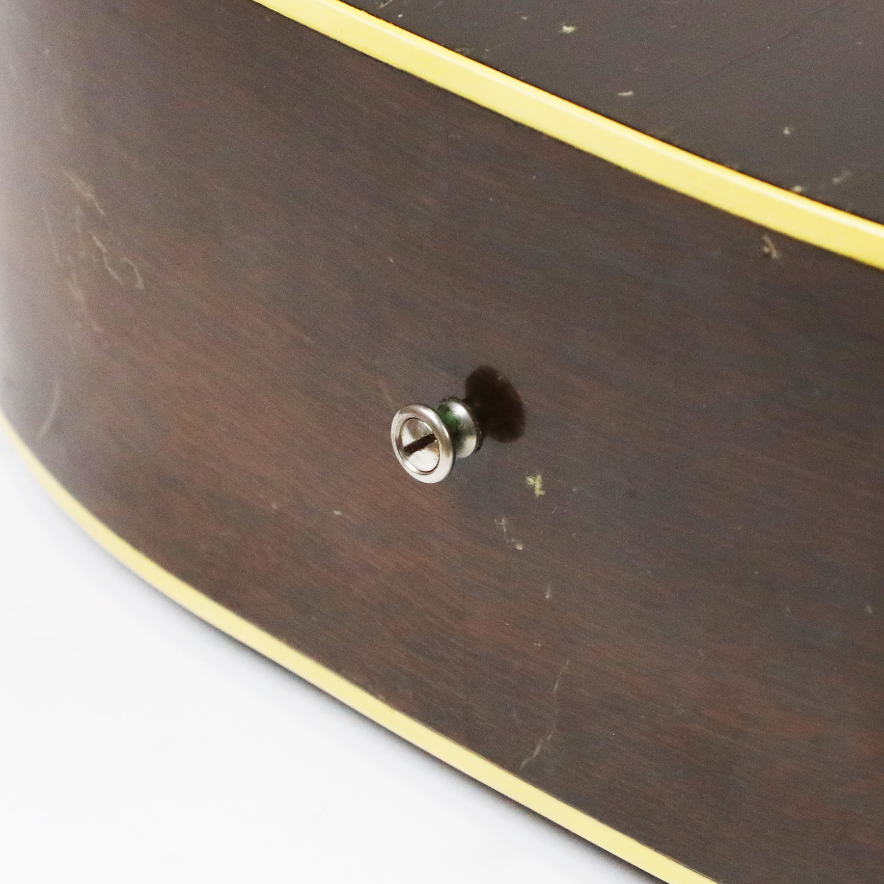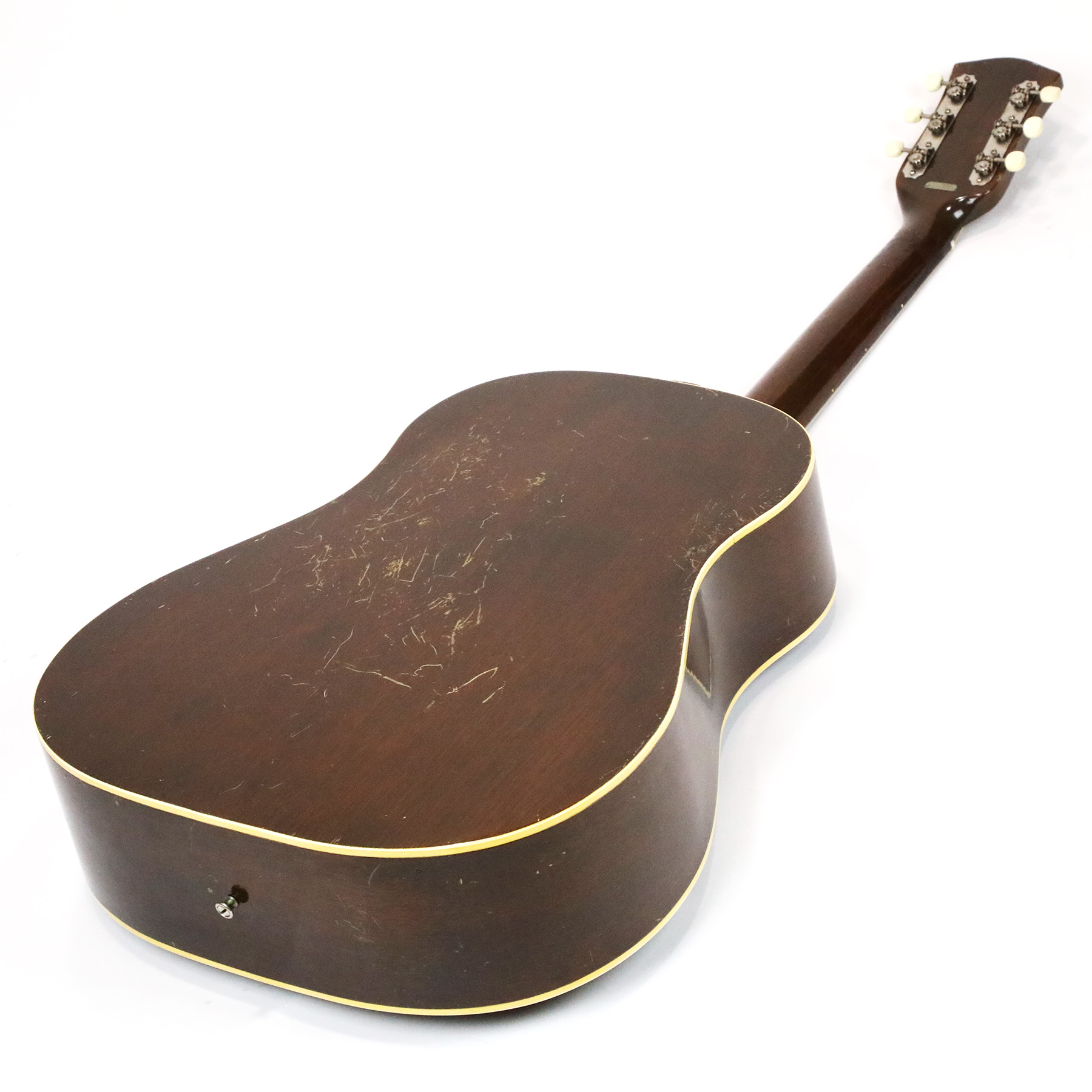 – This is a stunning example with respect to condition and sound. It remains structurally perfect, with no cracks, no breaks, and no repairs. Quite objectively it sounds better than any late-’40s Gibson Jumbo I’ve owned, and that’s most certainly because the neck is a very large completely solid piece of mahogany. This guitar is more resonant and clear than your typical J-45, and it’s not nearly as expensive.