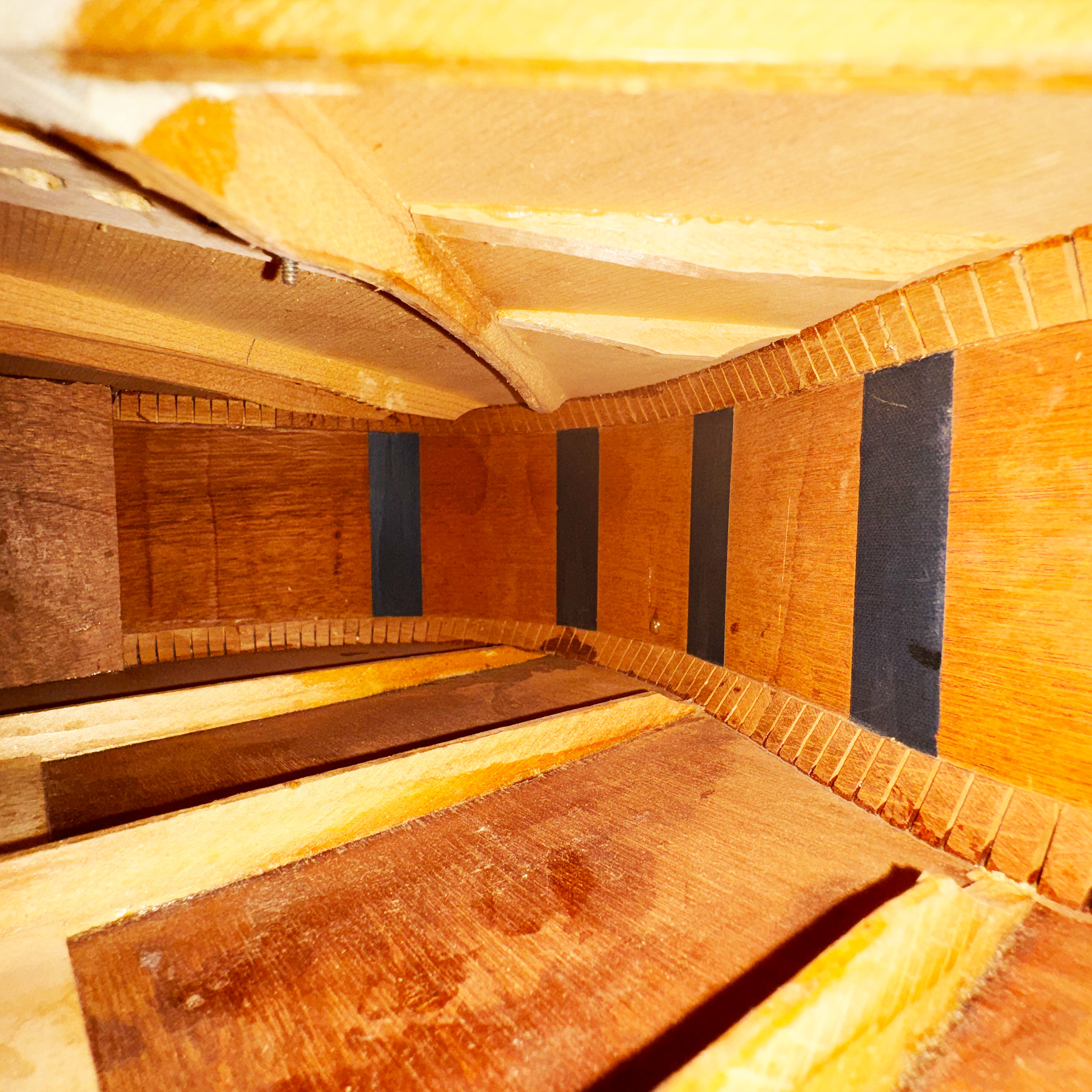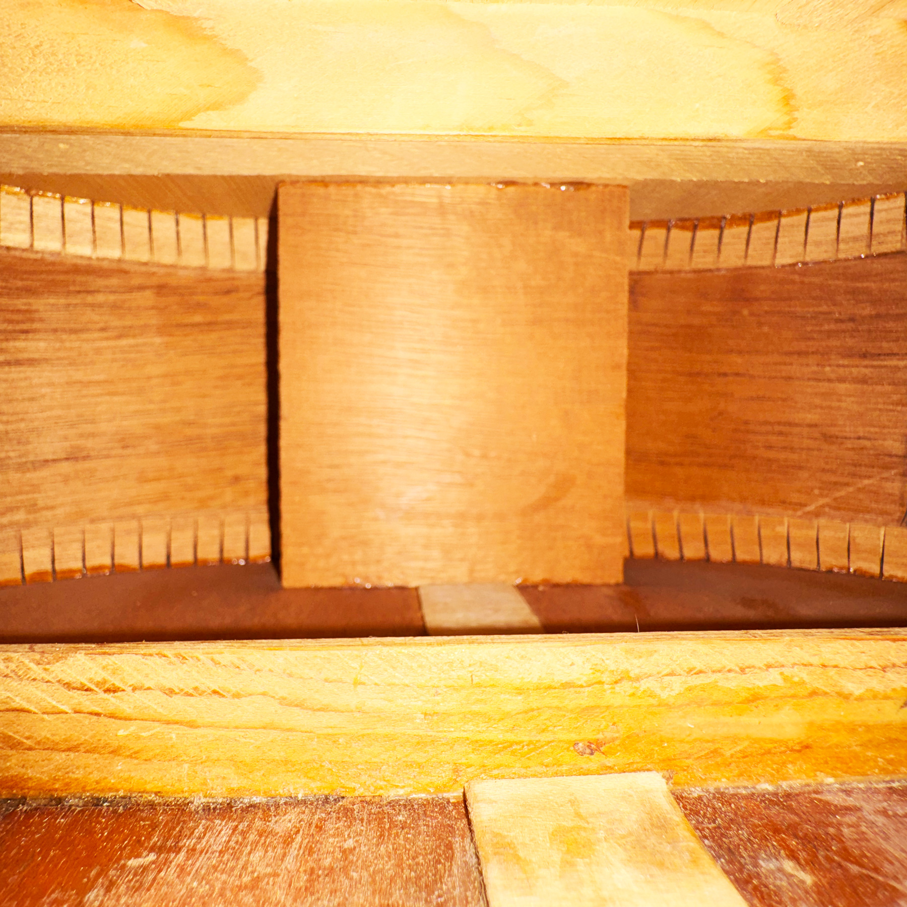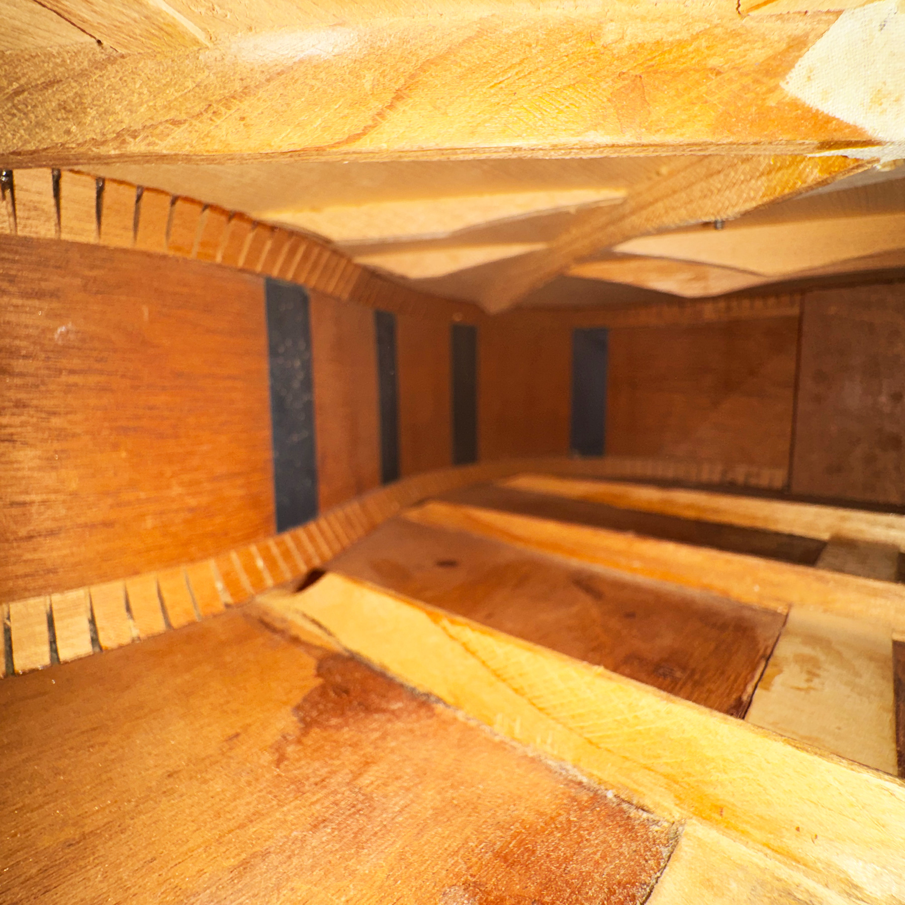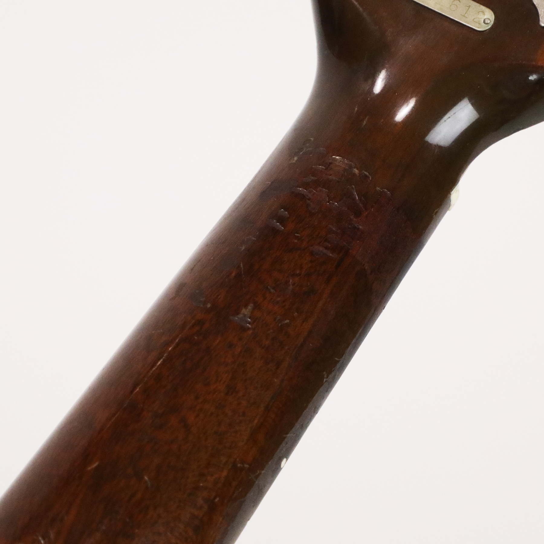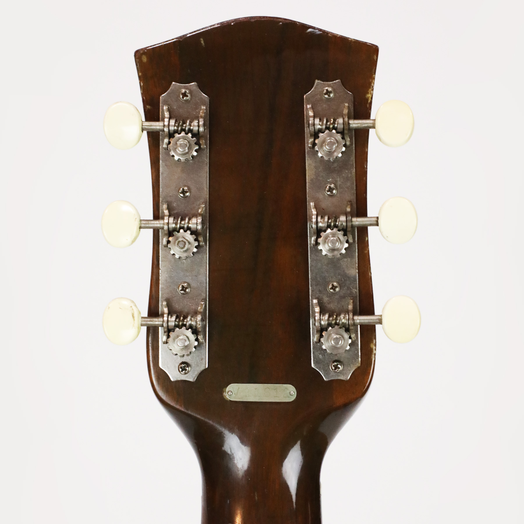 – This is a stunning example with respect to condition and sound. It remains structurally perfect, with no cracks, no breaks, and no repairs. Quite objectively it sounds better than any late-’40s Gibson Jumbo I’ve owned, and that’s most certainly because the neck is a very large completely solid piece of mahogany. This guitar is more resonant and clear than your typical J-45, and it’s not nearly as expensive.