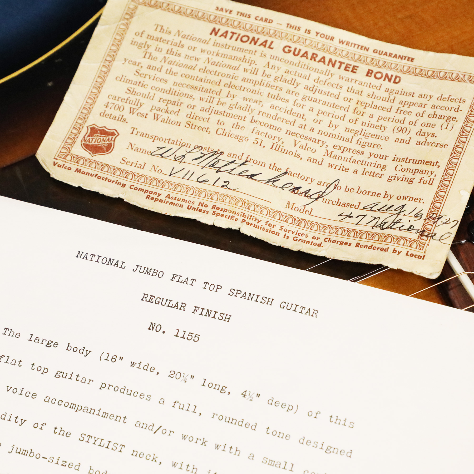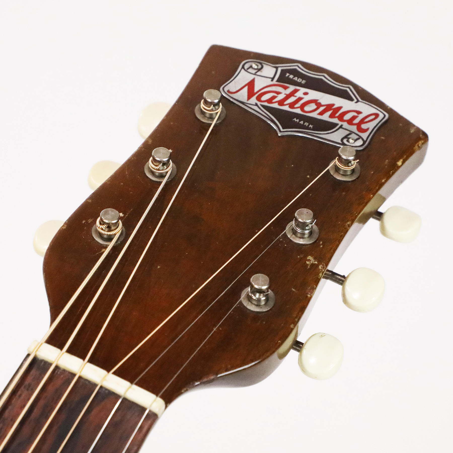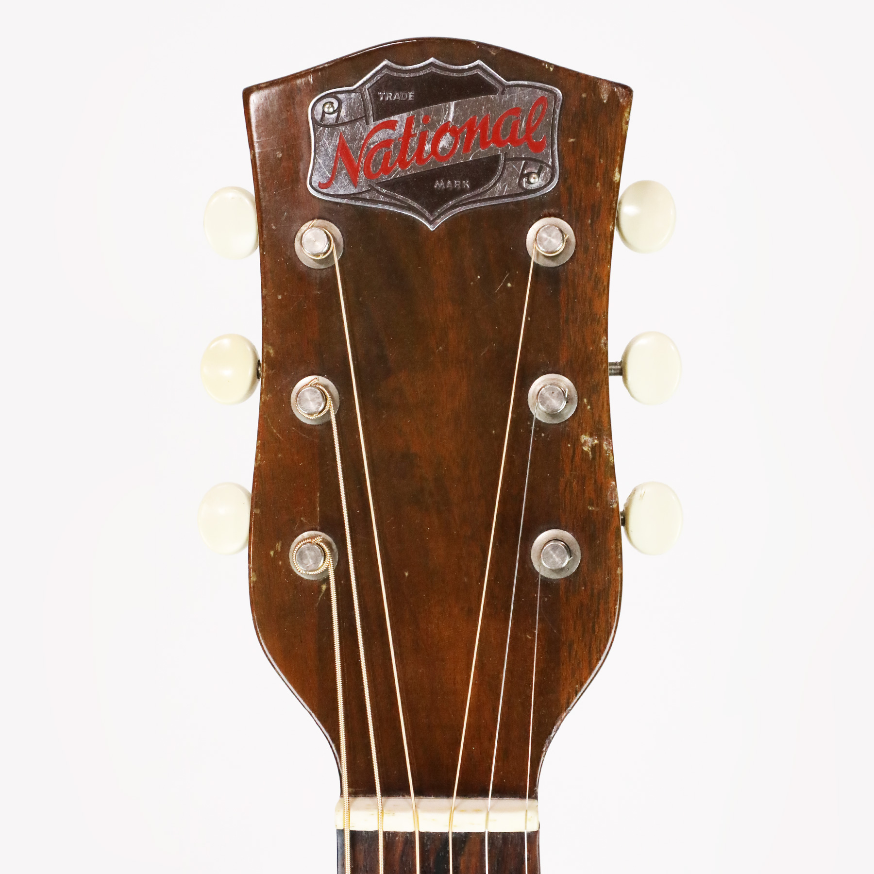 – This model famously features an X-braced body made by Gibson. The braces within are scalloped, just like those found in a concurrently produced Gibson J-45 and J-50 models. The Gibson body is attached to a National made neck which does not have a truss rod. The two are glued in place via a dove tail joint, which is unique to the 1st batch of the National 1155 jumbo acoustics made between 1947-1949. Thereafter, this model changes dramatically to incorporate a bolt-on neck construction.