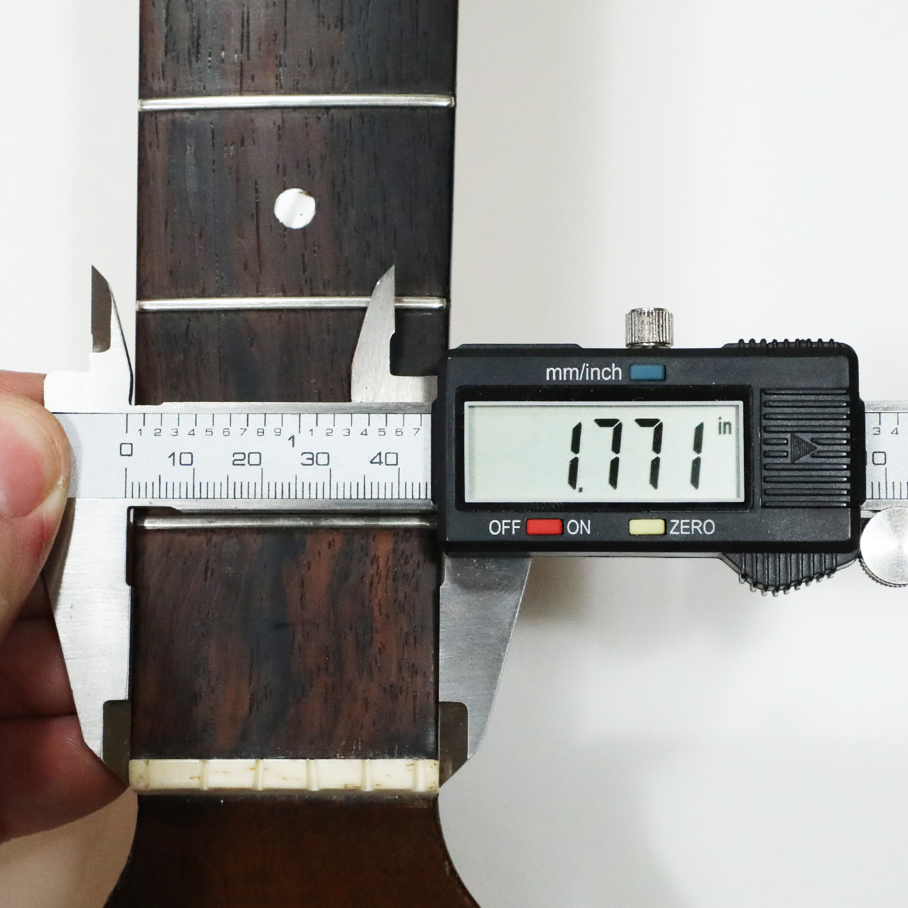 – Neck measurements: 1.771″ nut width, .905″ neck depth at 1st fret, 1.164″ depth at 12th fret.