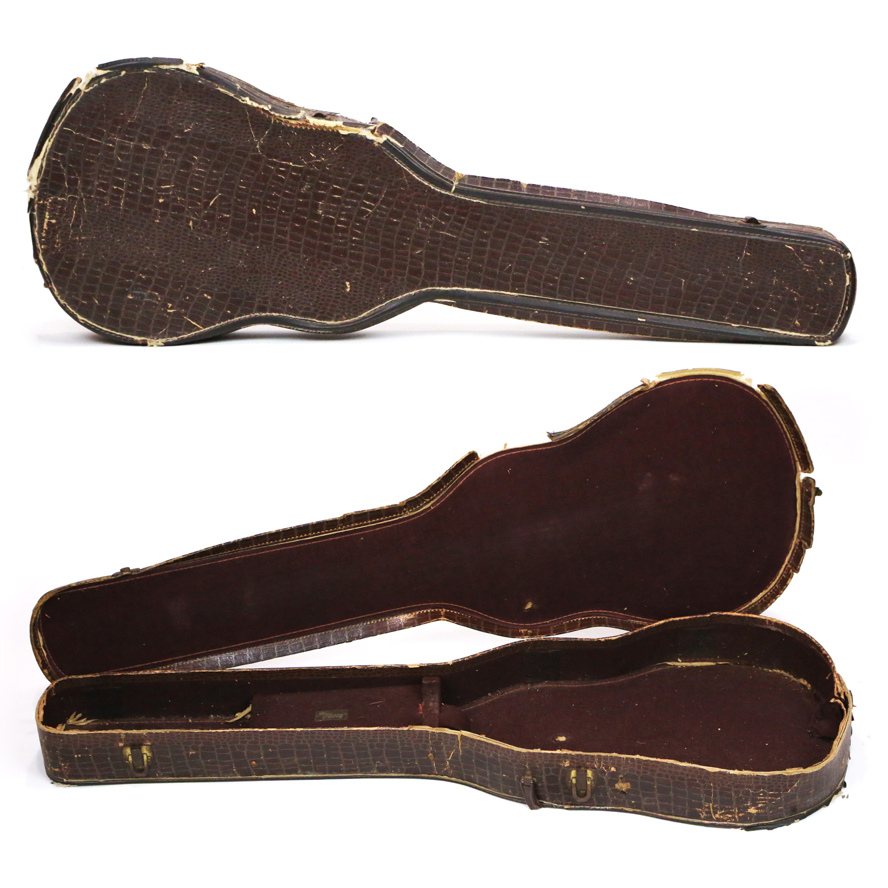 – Not to be mistaken for a Gibson Melody Maker case, this ’50s Les Paul Jr. soft case features; a neck heel support, a Gibson brass badge, and a rounded non-angular plastic handle.