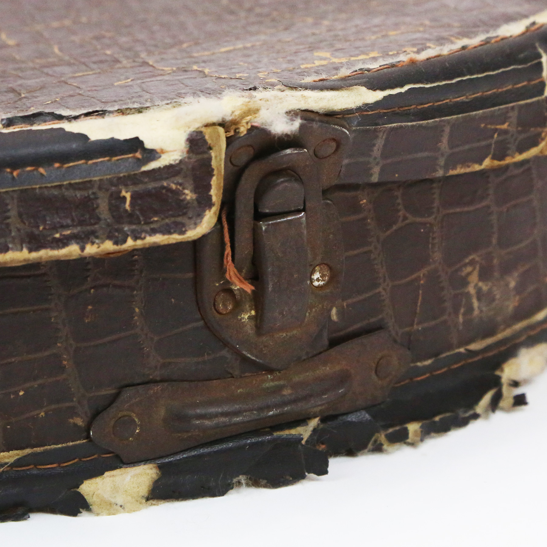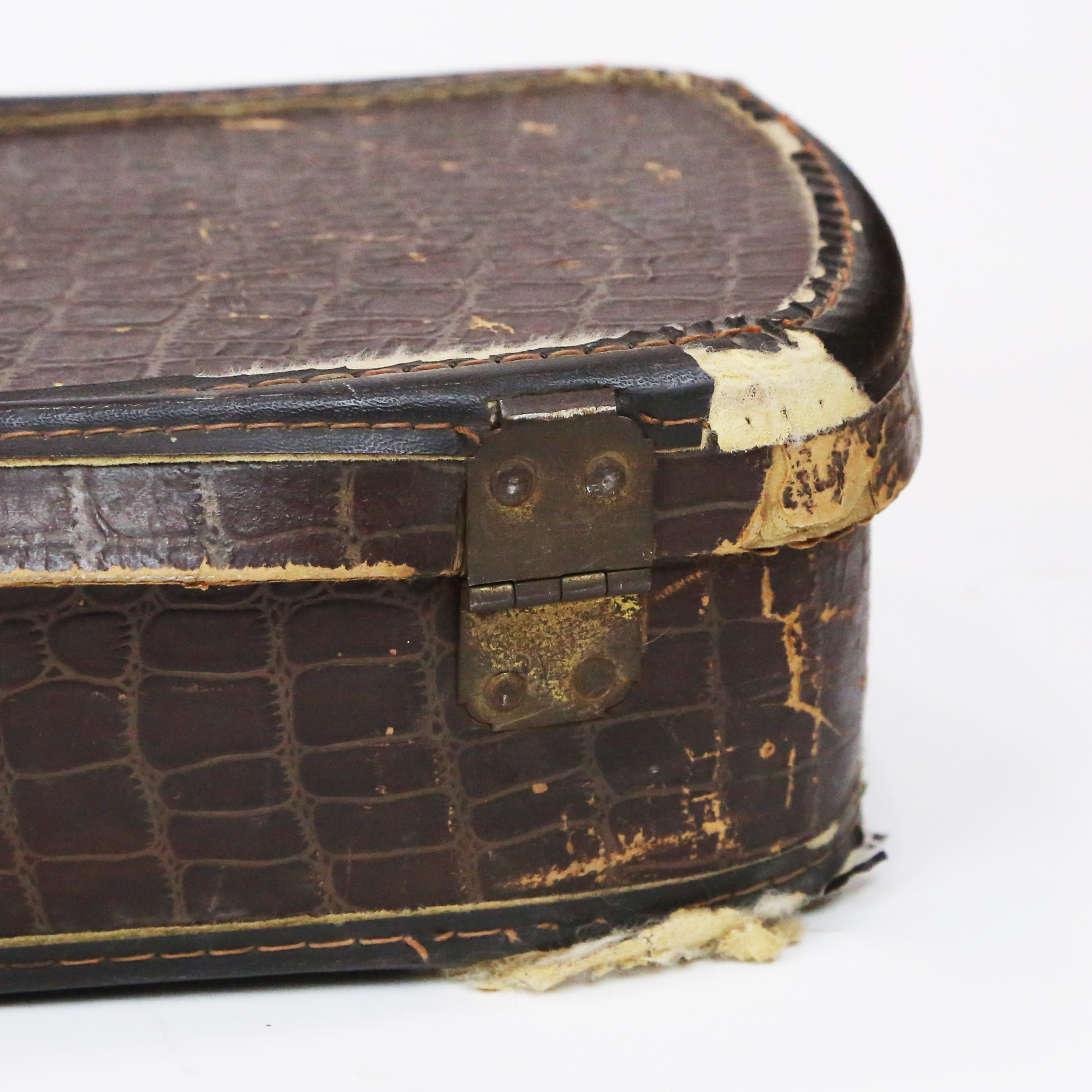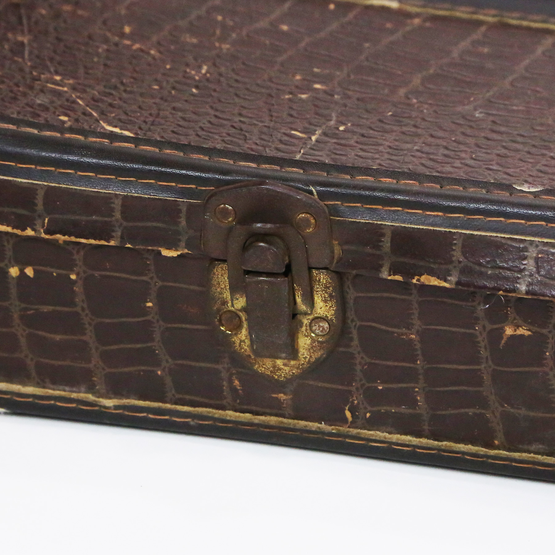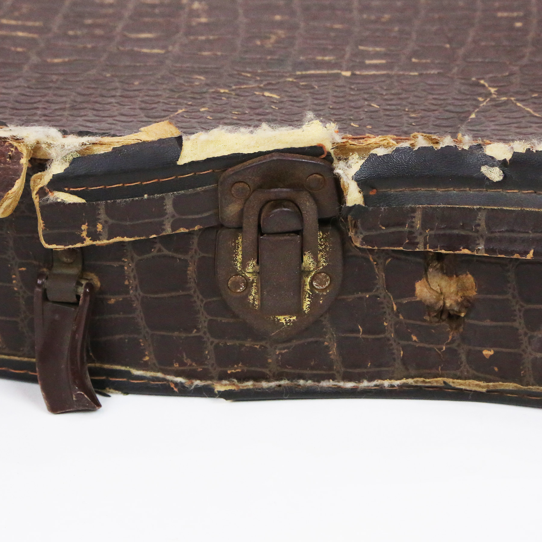 – This case is in poor original cosmetic condition. Several hinges have ripped from the case exterior and the handle is almost completely gone.