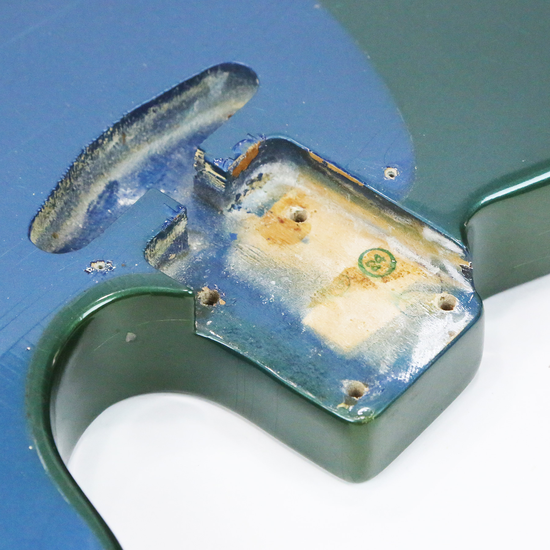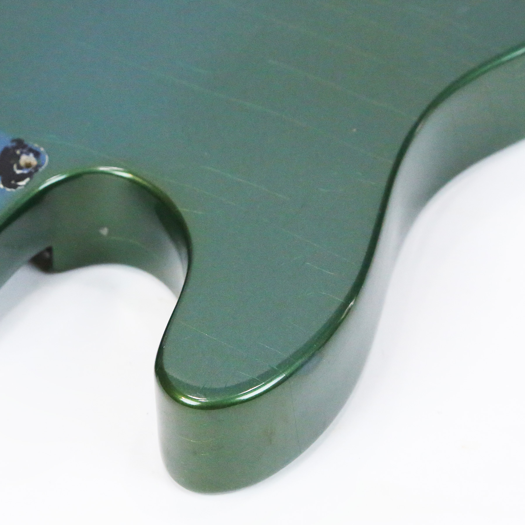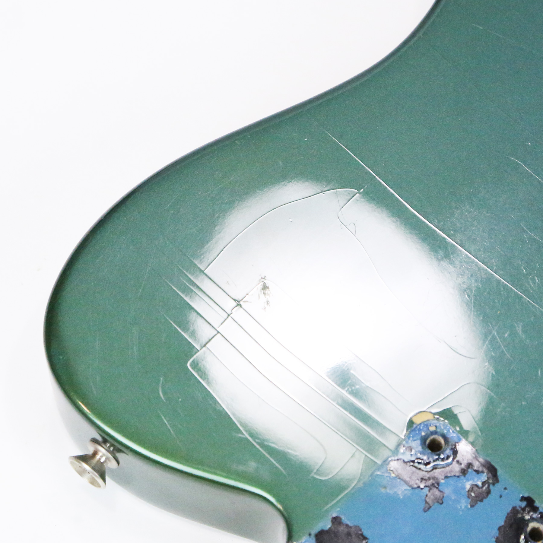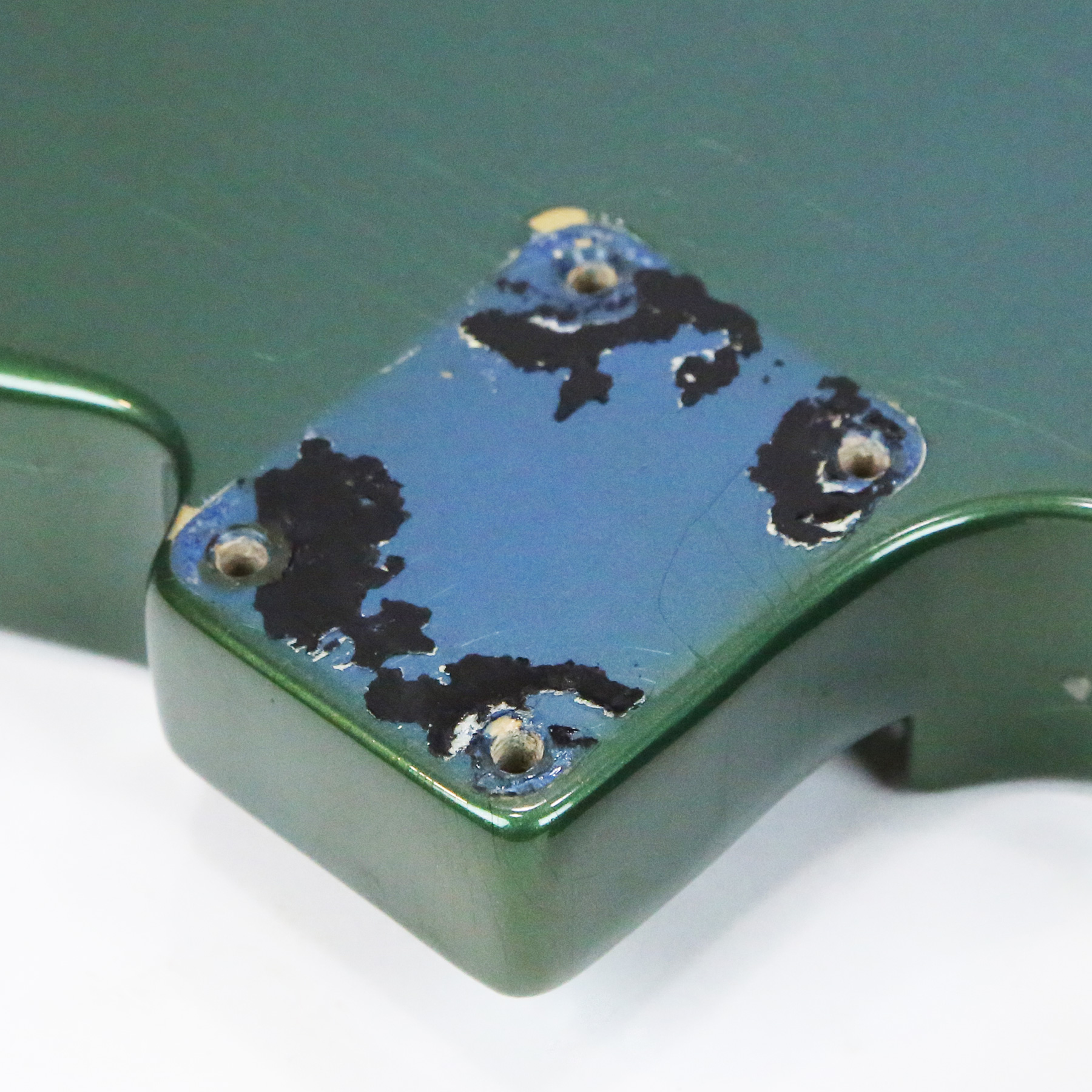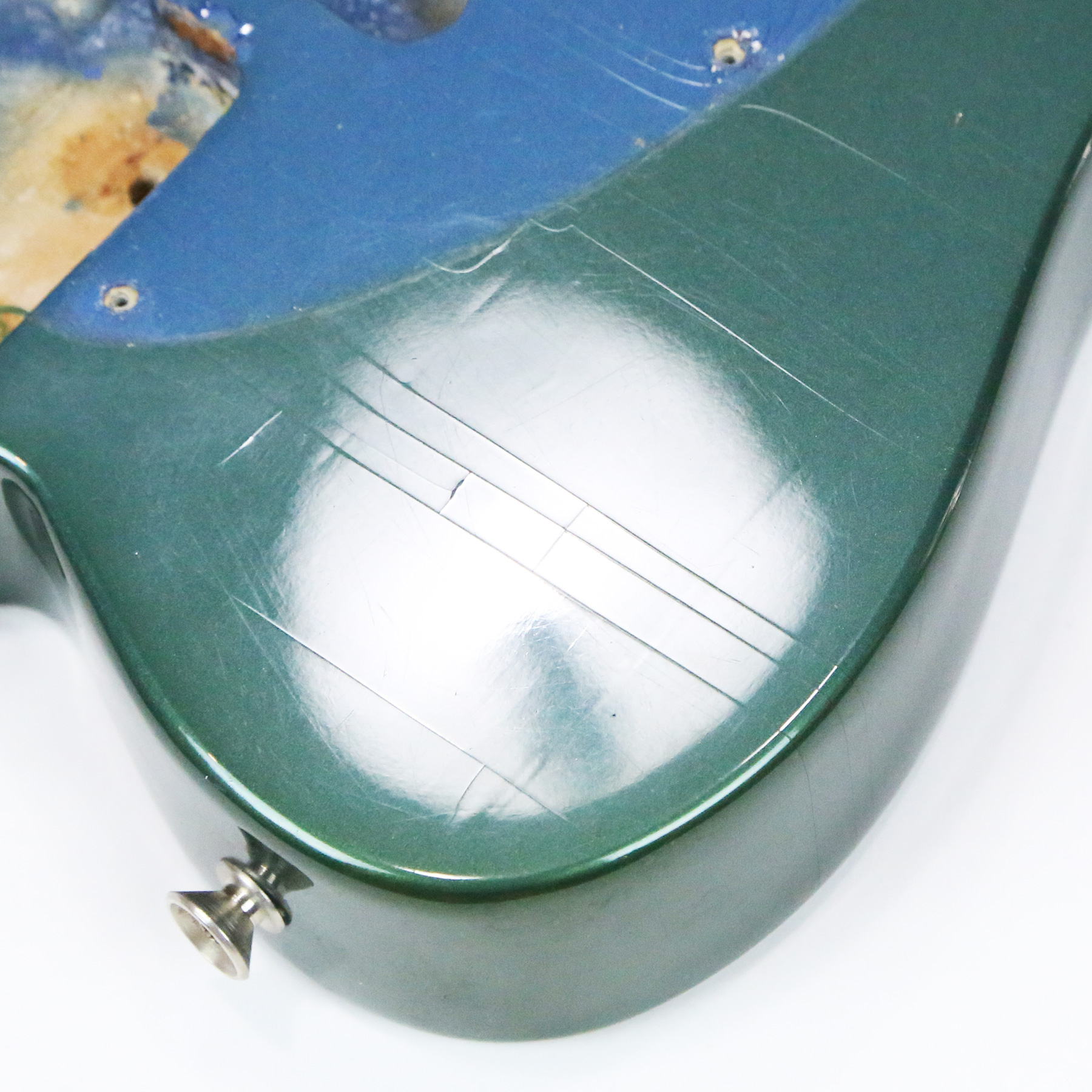 – An absolutely beautiful representation of Fender’s Lake Placid Blue custom color having evolved into a much more desirable nearly Sherwood Green. The body is handsomely weather-checked, sports crisp and bold UV fading lines, and displays moderate evidence of superficial wear otherwise.
