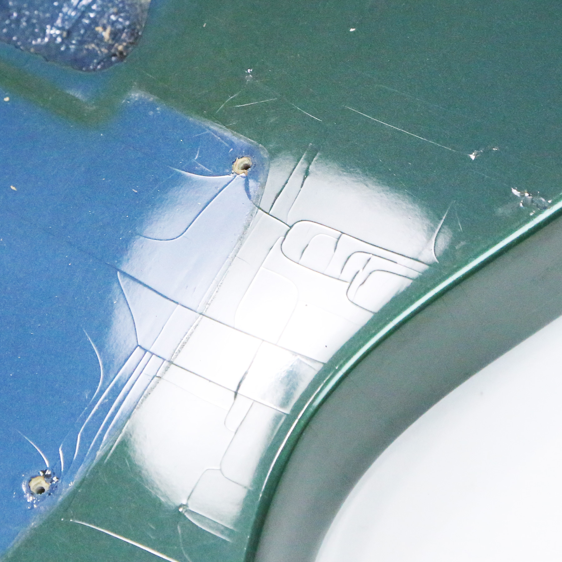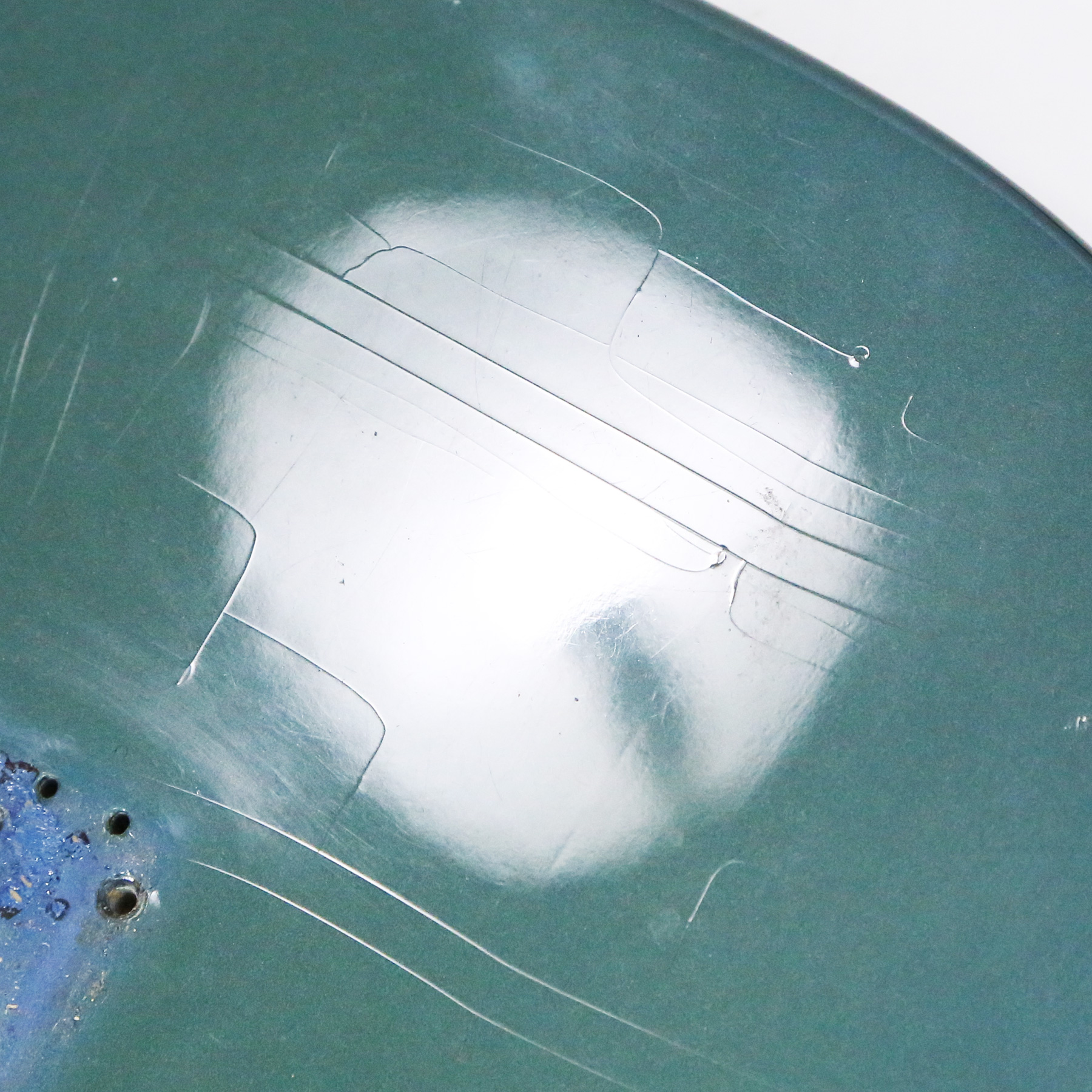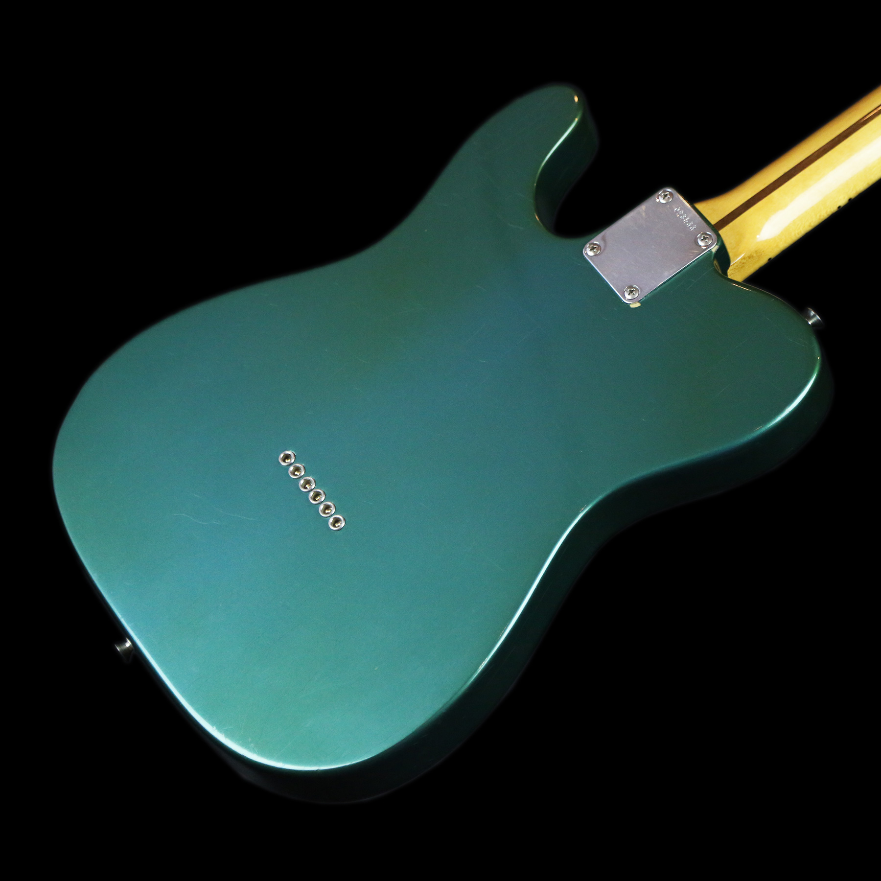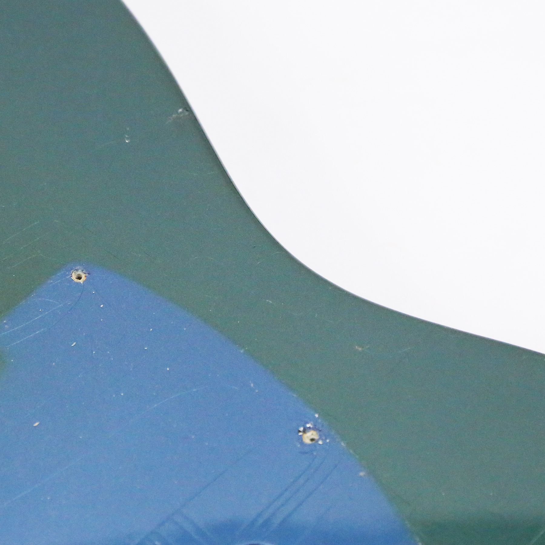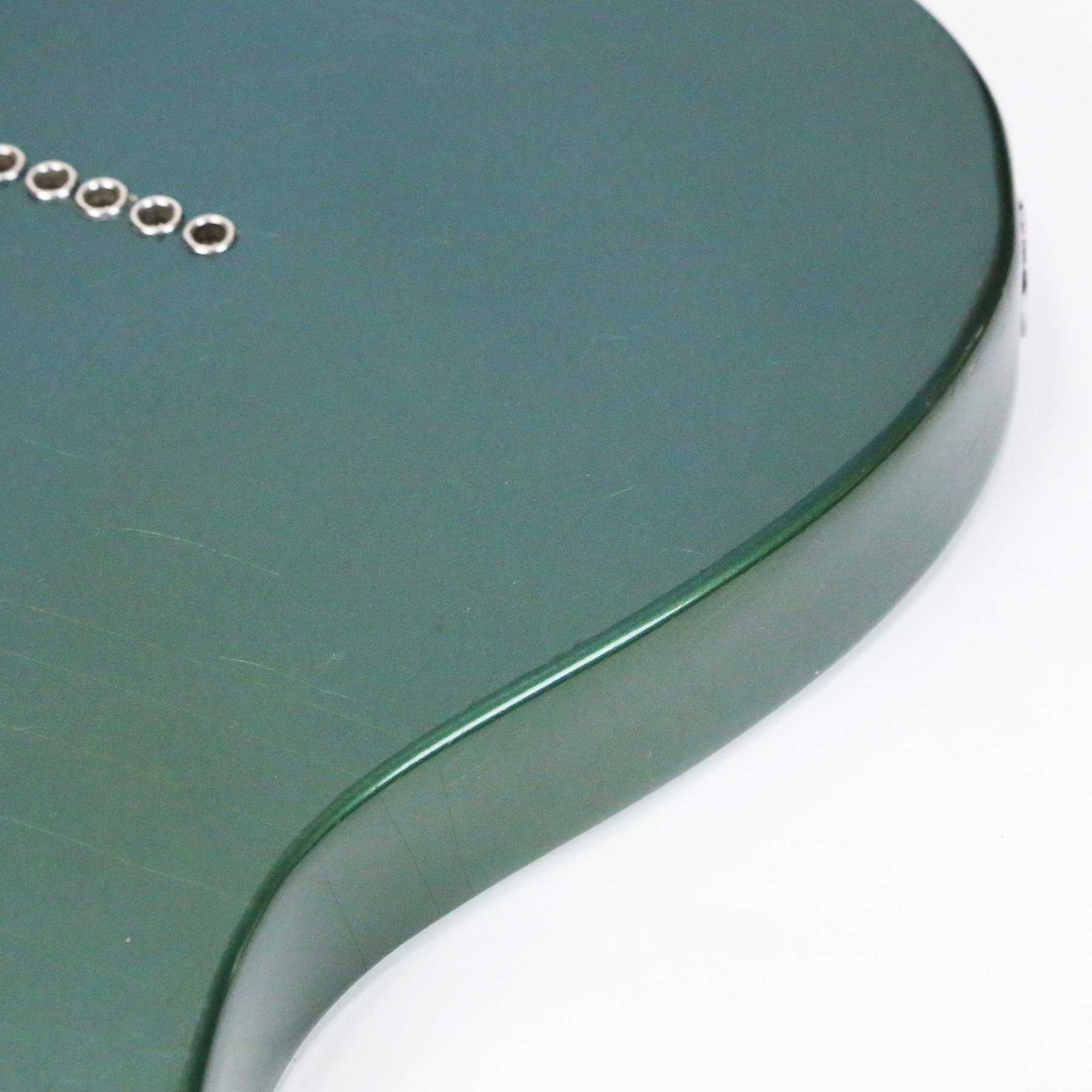 – An absolutely beautiful representation of Fender’s Lake Placid Blue custom color having evolved into a much more desirable nearly Sherwood Green. The body is handsomely weather-checked, sports crisp and bold UV fading lines, and displays moderate evidence of superficial wear otherwise.
