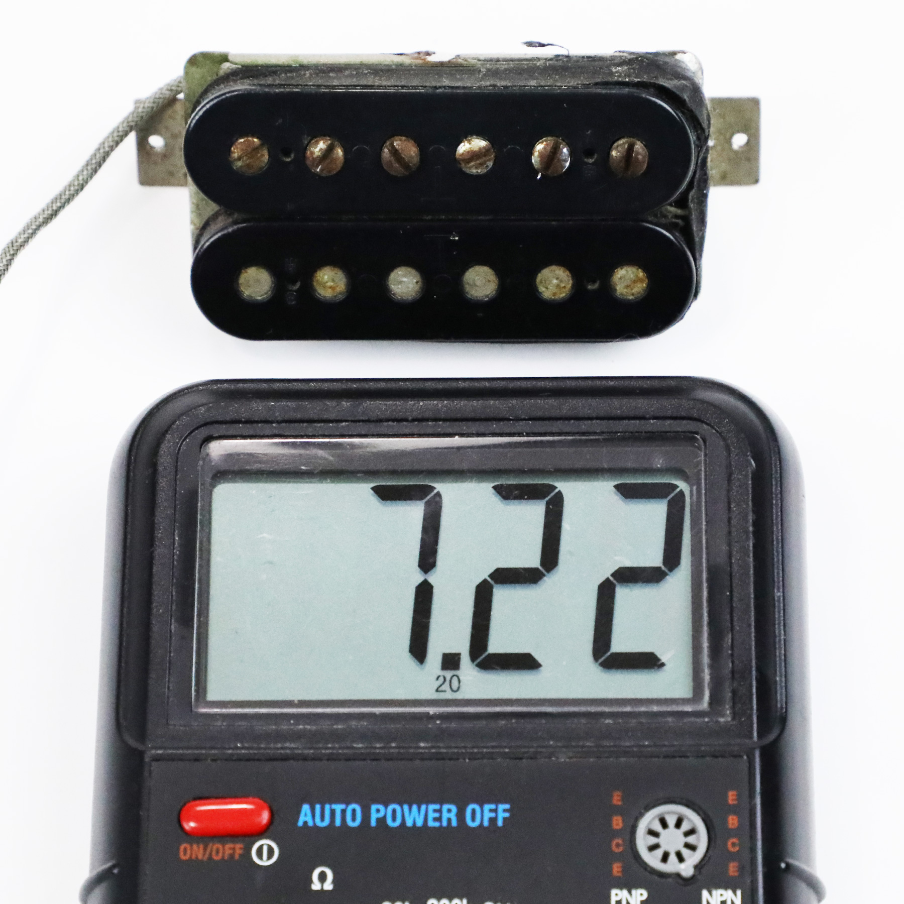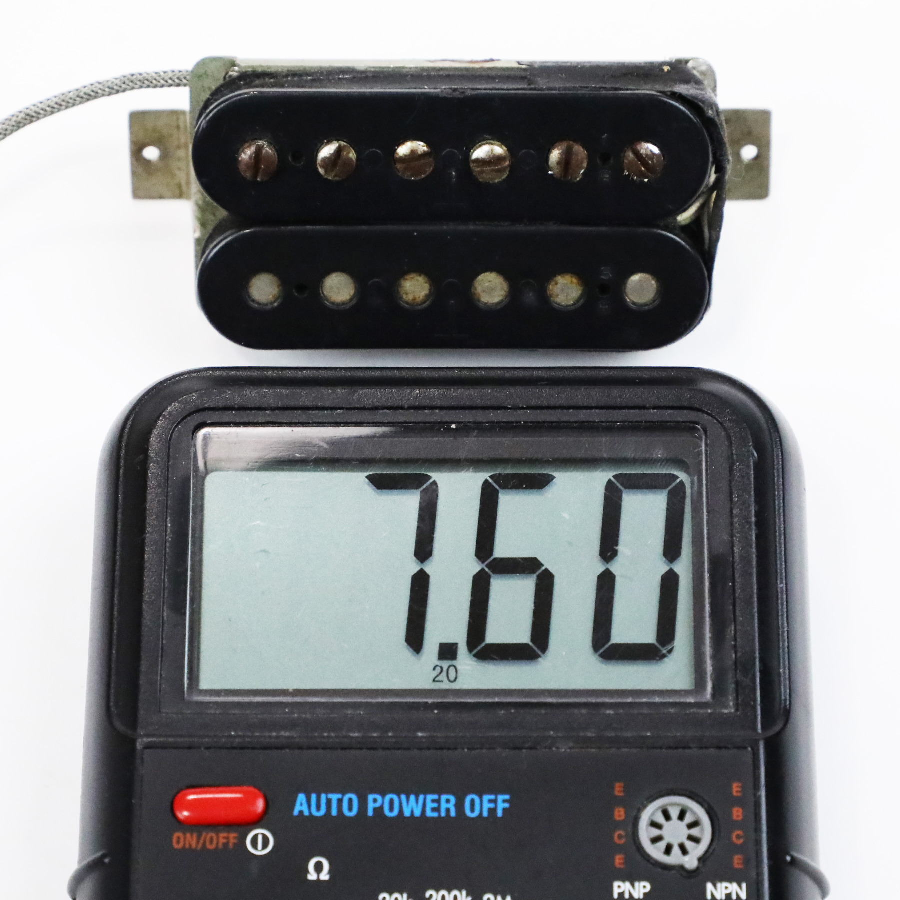 – The pickup measures 7.60 kOhms and 7.22 kOhms.