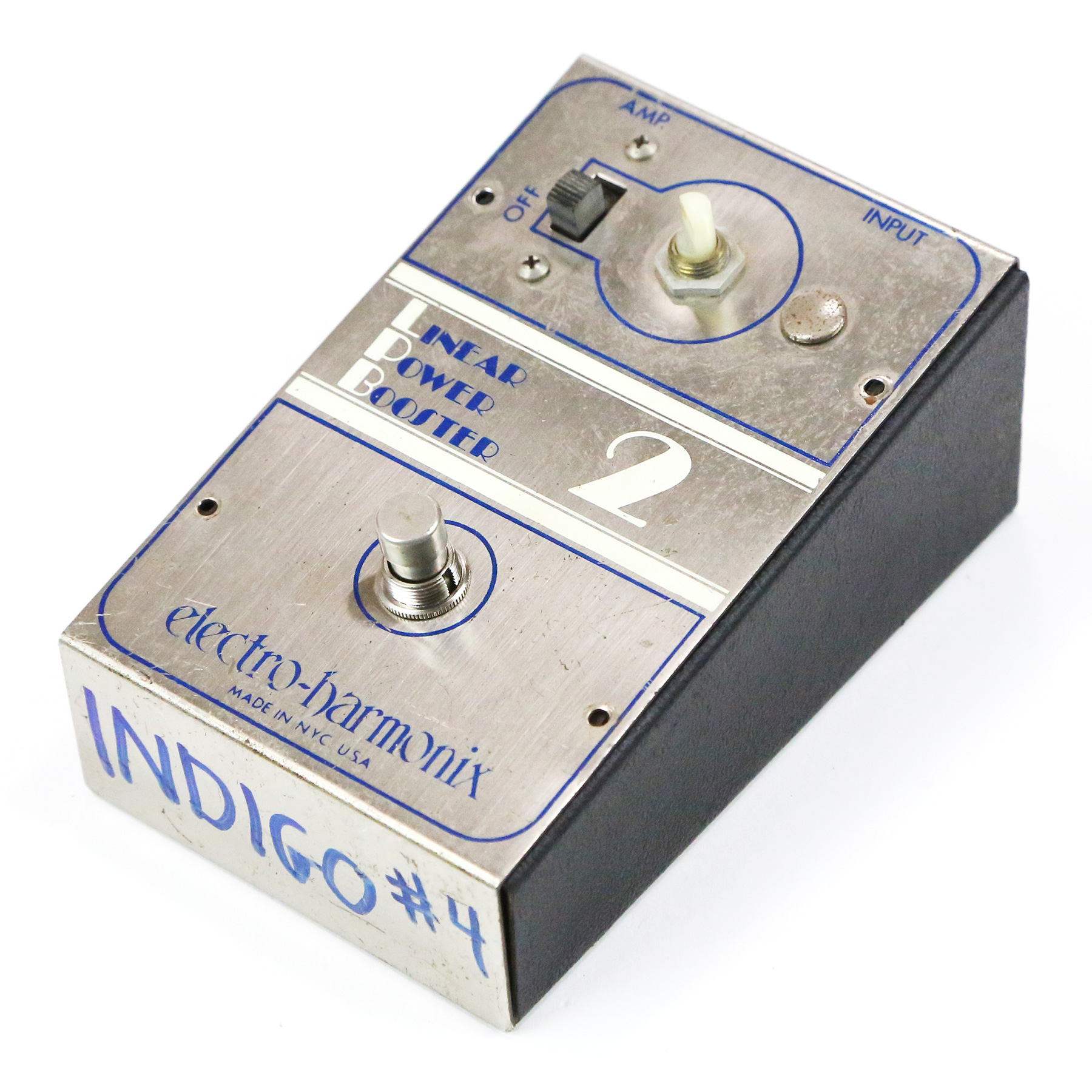 – “INDIGO #4” is written on the front and back, which was standard procedure for most Indigo pedals.