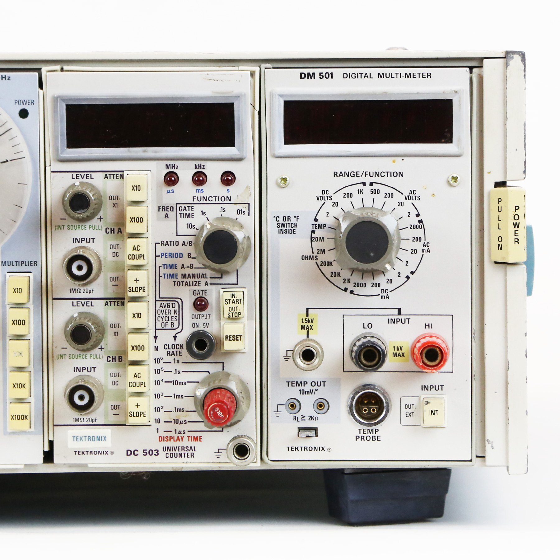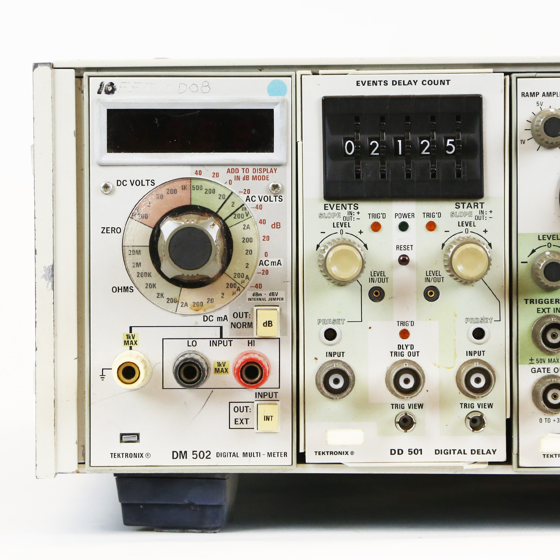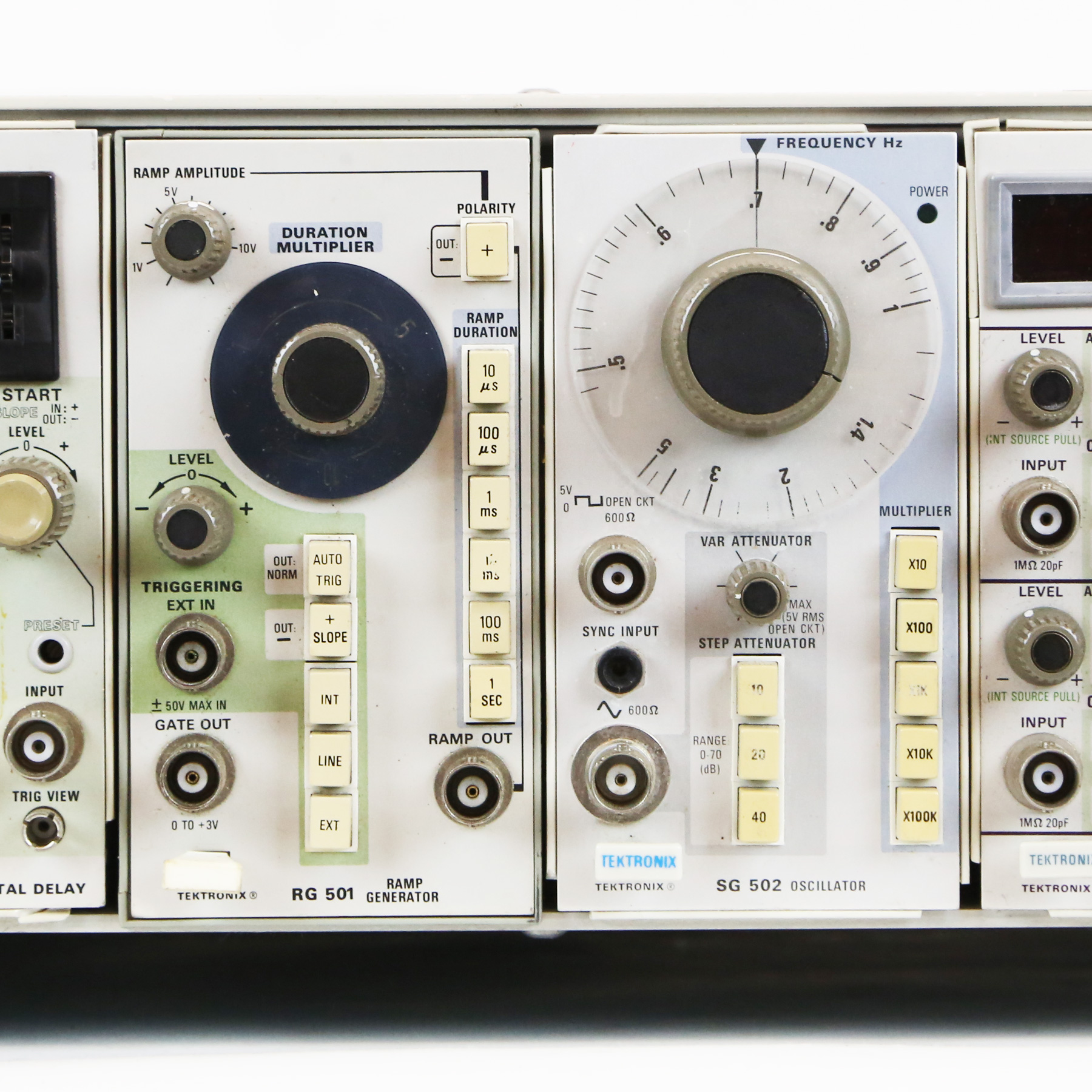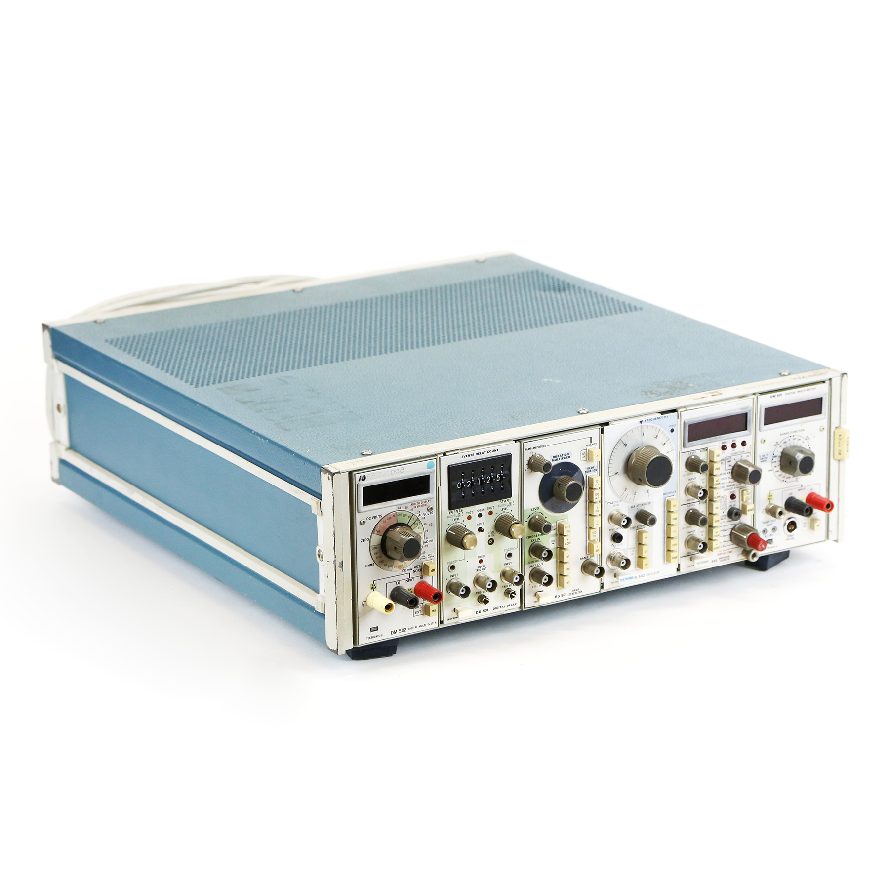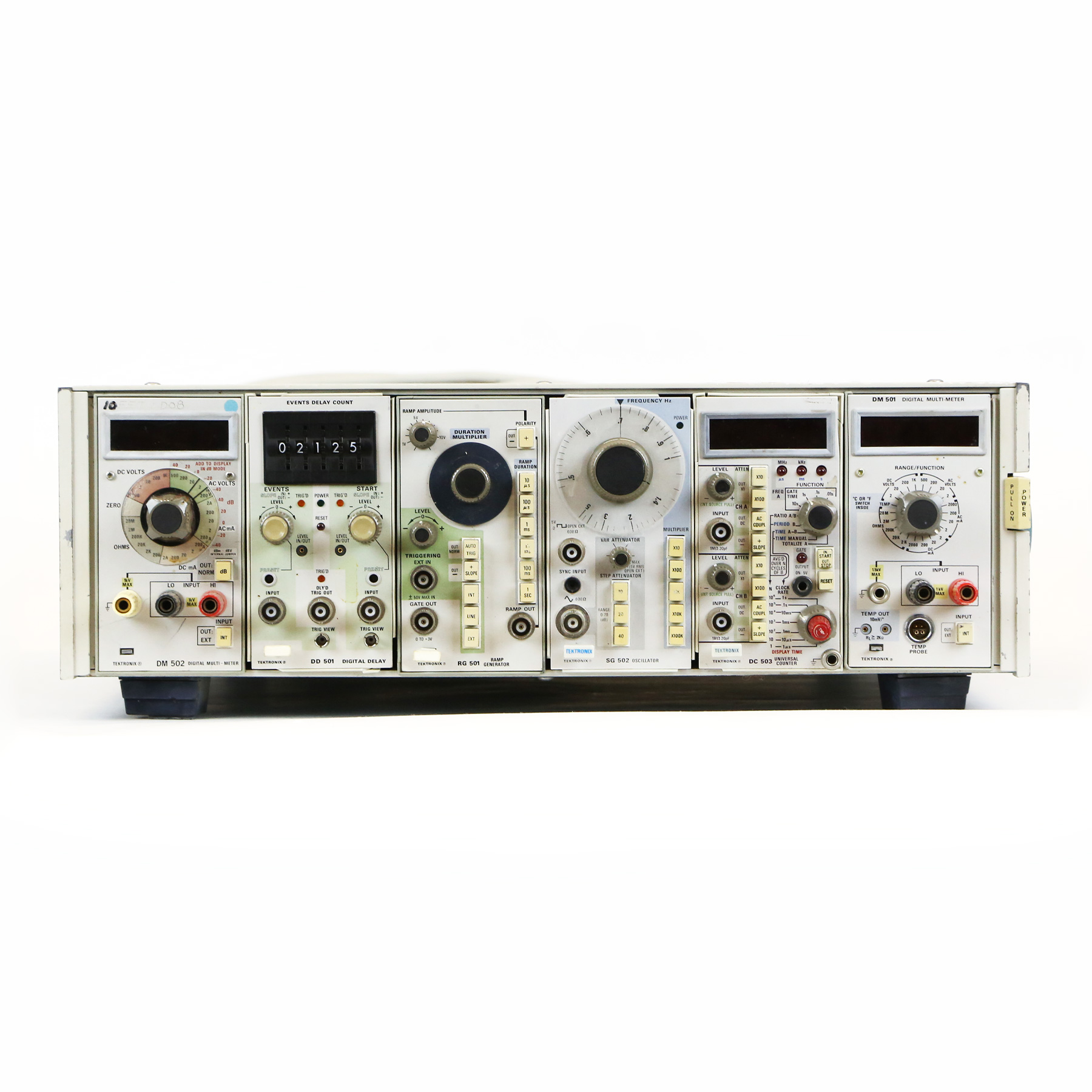 – Features include: DM 501 Digital Multi-Meter, DD 501 Digital Delay, RG 501 Ramp Generator, DM 502 Digital Multi-Meter, SG 502 Oscillator, and DC 503 Universal Counter.
