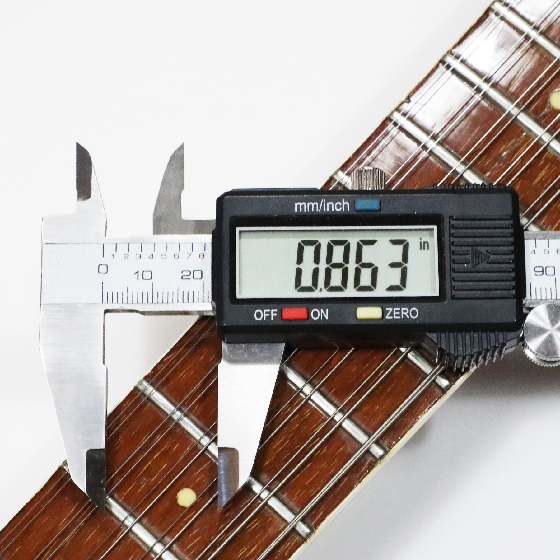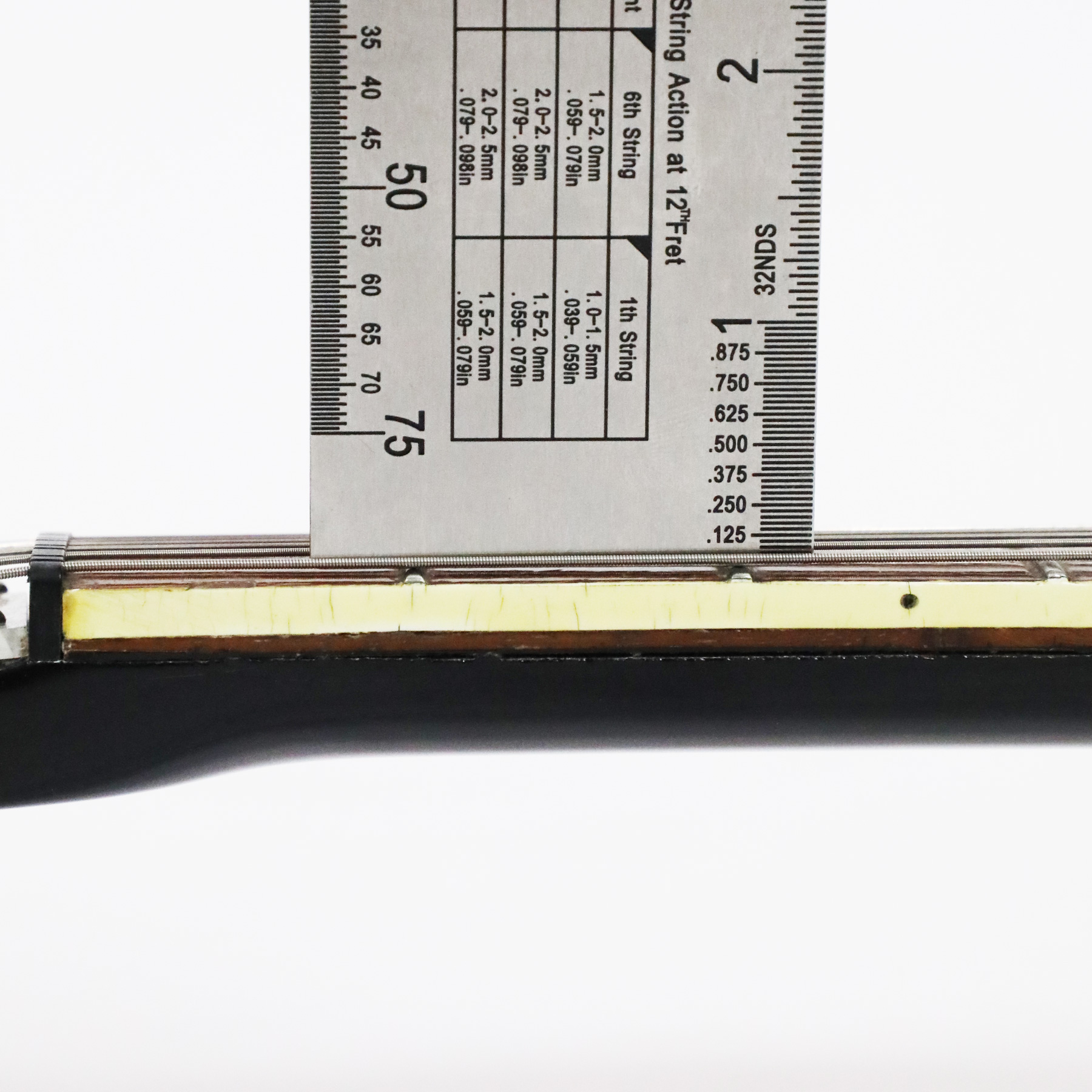 – Neck measurements: 1.616″ nut width, .814″ neck depth at 1st fret, .863″ depth at 12th fret.