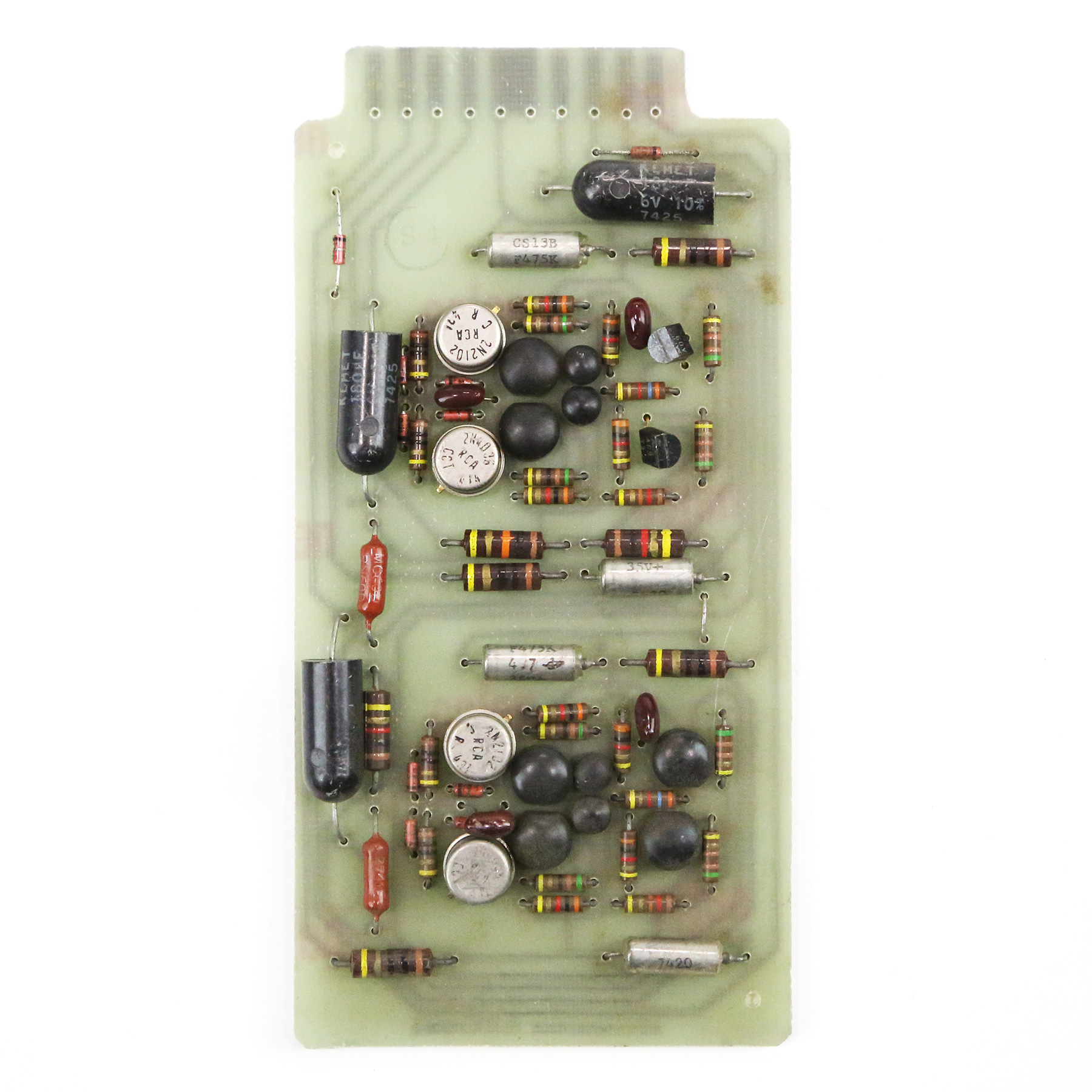 – Incredibly rare and impossible to source, some consider this simple dual amplifier to be one of the best sounding discrete preamps ever made. Ideal for anything from a custom pair of mic pres to a mini-console build, these PCBs are complete with RCA 2N2102 and RCA 2N4036 silicon transistors. Completed custom builds using COPIES of these cards have sold for over $4,000 for a pair.