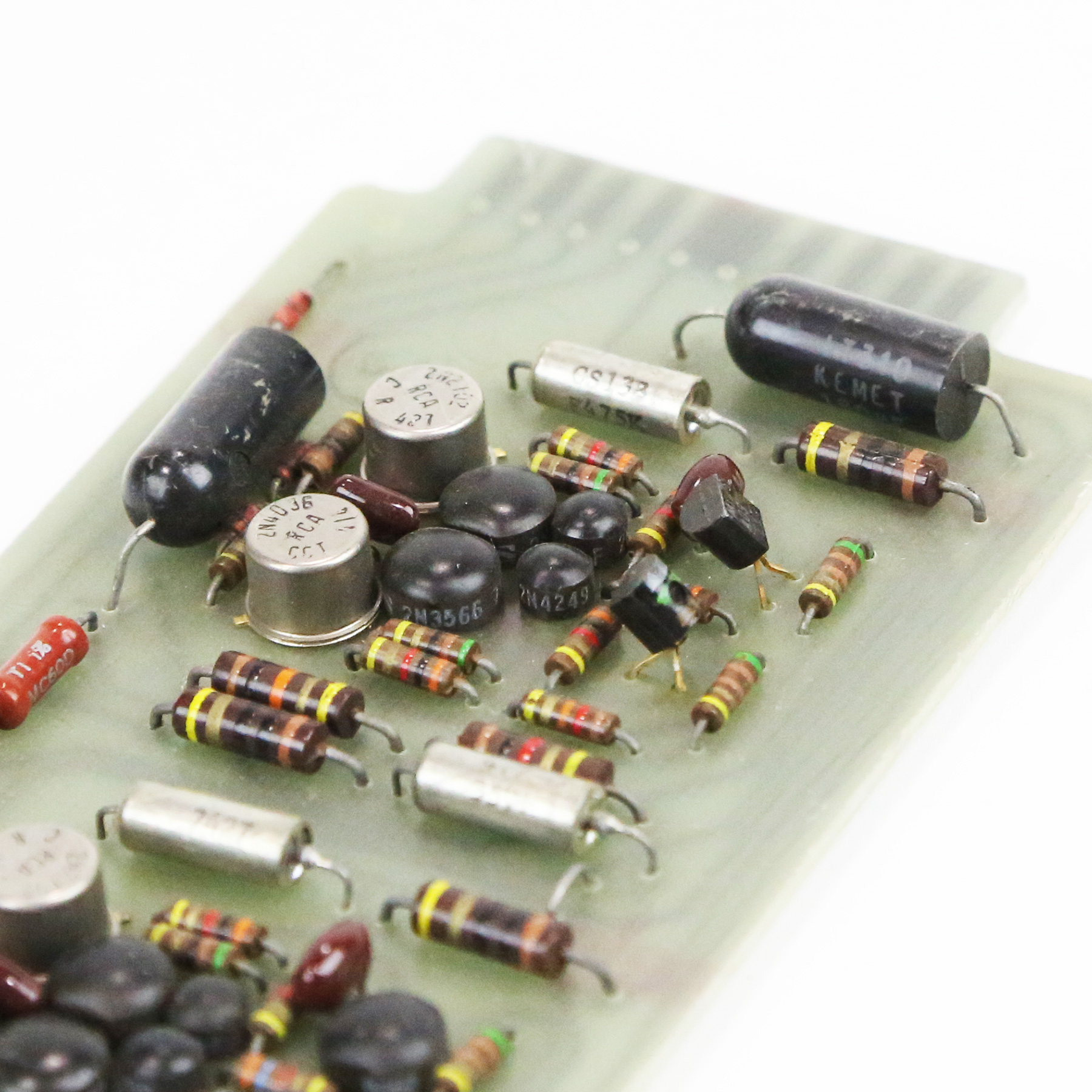– Incredibly rare and impossible to source, some consider this simple dual amplifier to be one of the best sounding discrete preamps ever made. Ideal for anything from a custom pair of mic pres to a mini-console build, these PCBs are complete with RCA 2N2102 and RCA 2N4036 silicon transistors. Completed custom builds using COPIES of these cards have sold for over $4,000 for a pair.