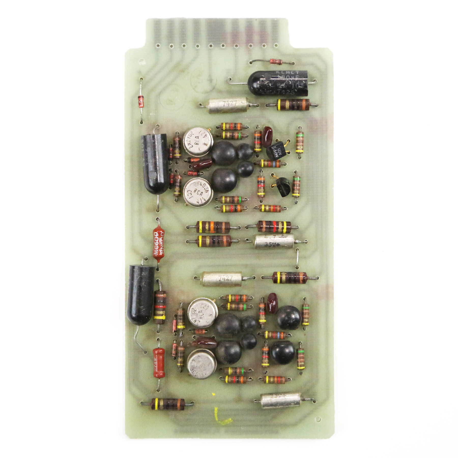 – Incredibly rare and impossible to source, some consider this simple dual amplifier to be one of the best sounding discrete preamps ever made. Ideal for anything from a custom pair of mic pres to a mini-console build, these PCBs are complete with RCA 2N2102 and RCA 2N4036 silicon transistors. Completed custom builds using COPIES of these cards have sold for over $4,000 for a pair.