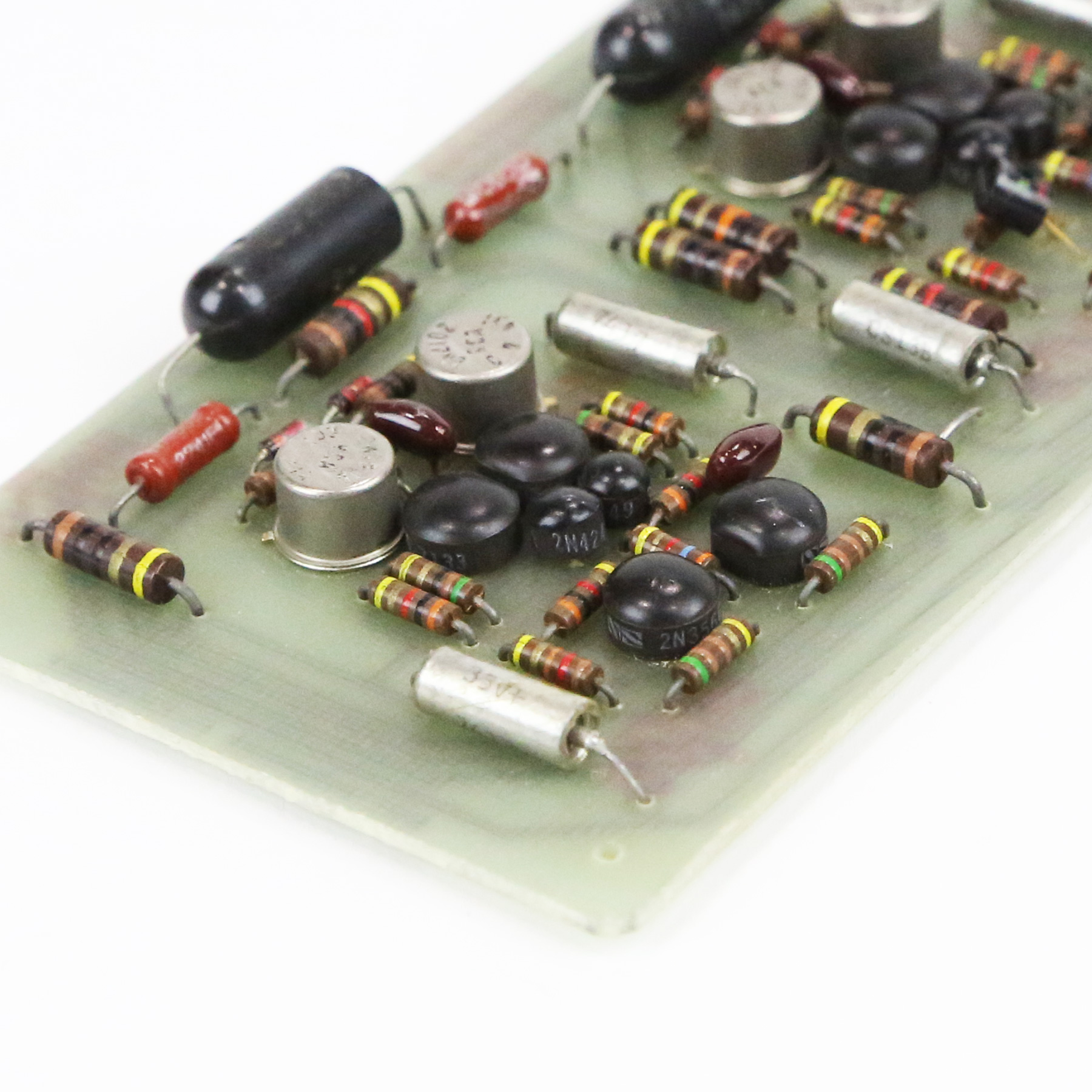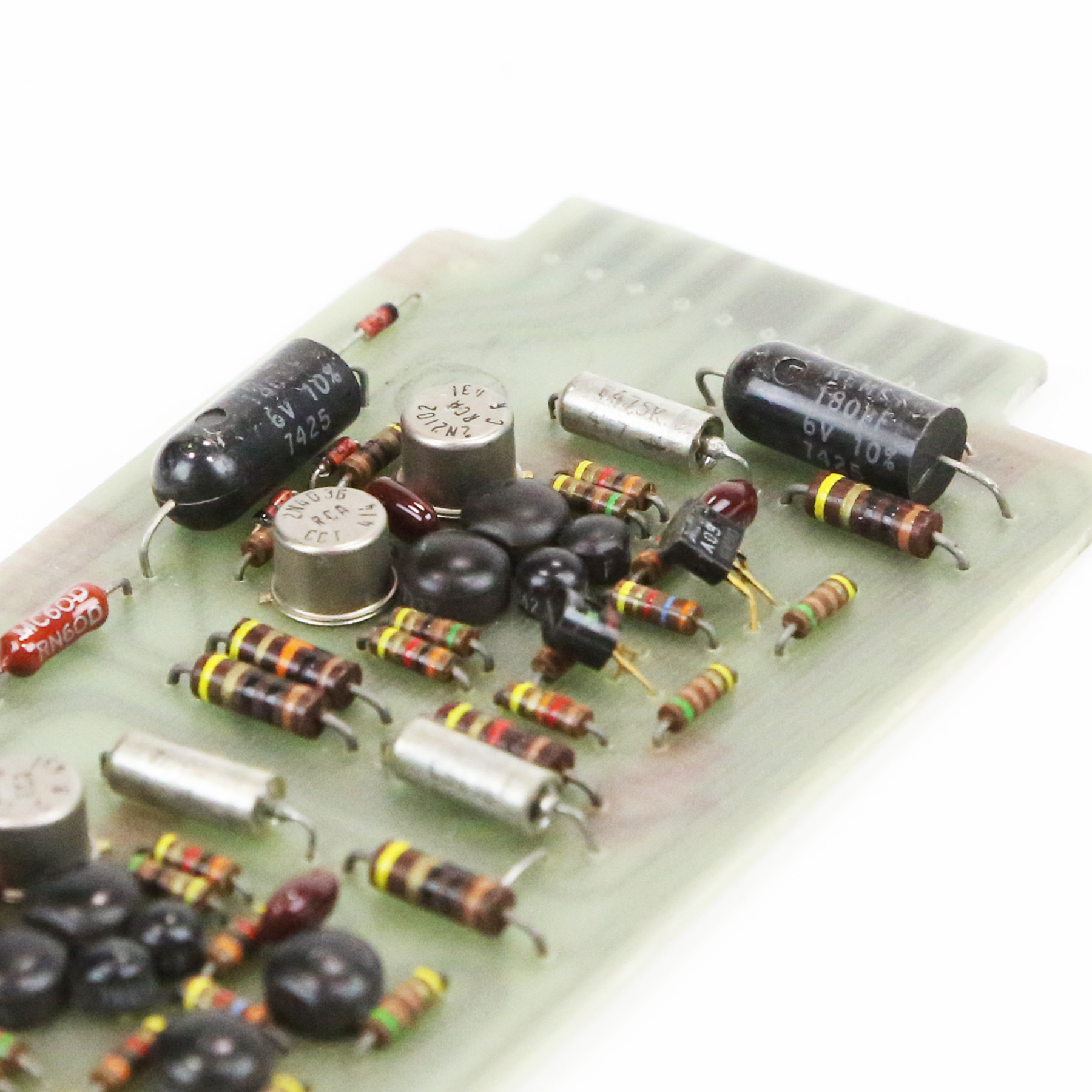 – Incredibly rare and impossible to source, some consider this simple dual amplifier to be one of the best sounding discrete preamps ever made. Ideal for anything from a custom pair of mic pres to a mini-console build, these PCBs are complete with RCA 2N2102 and RCA 2N4036 silicon transistors. Completed custom builds using COPIES of these cards have sold for over $4,000 for a pair.