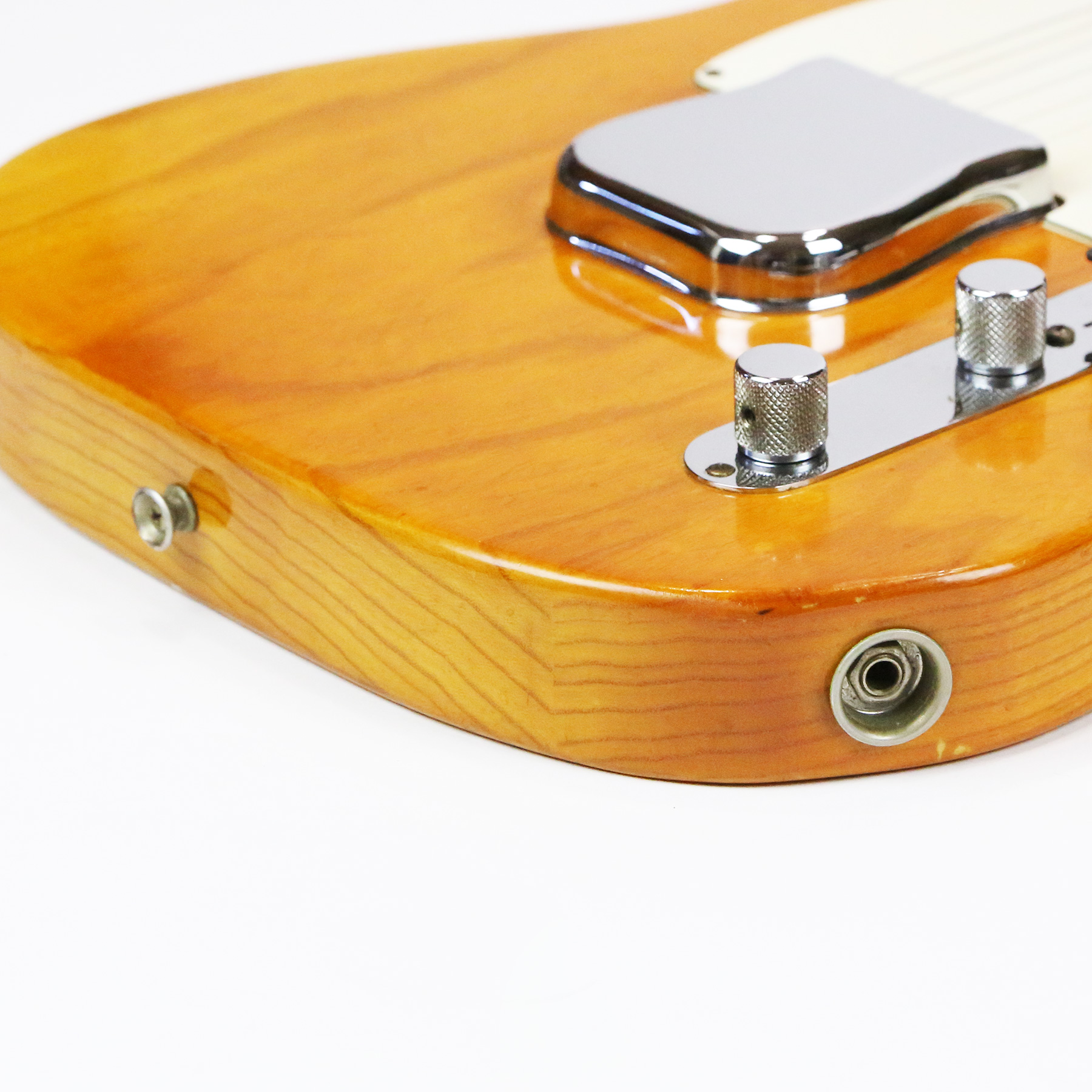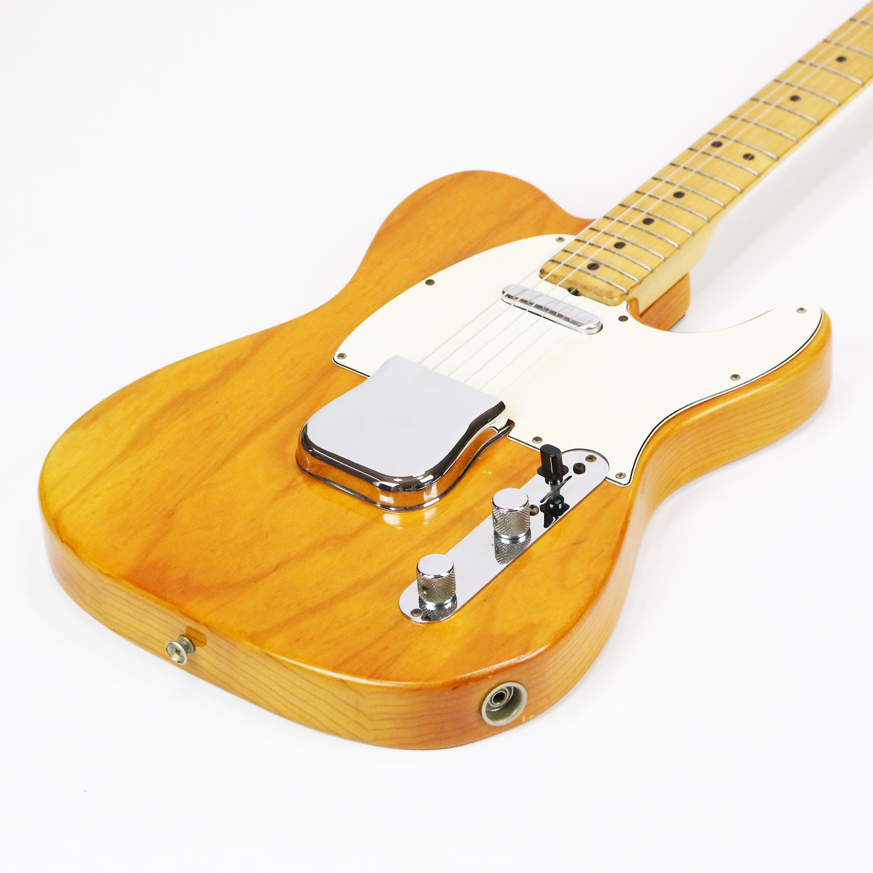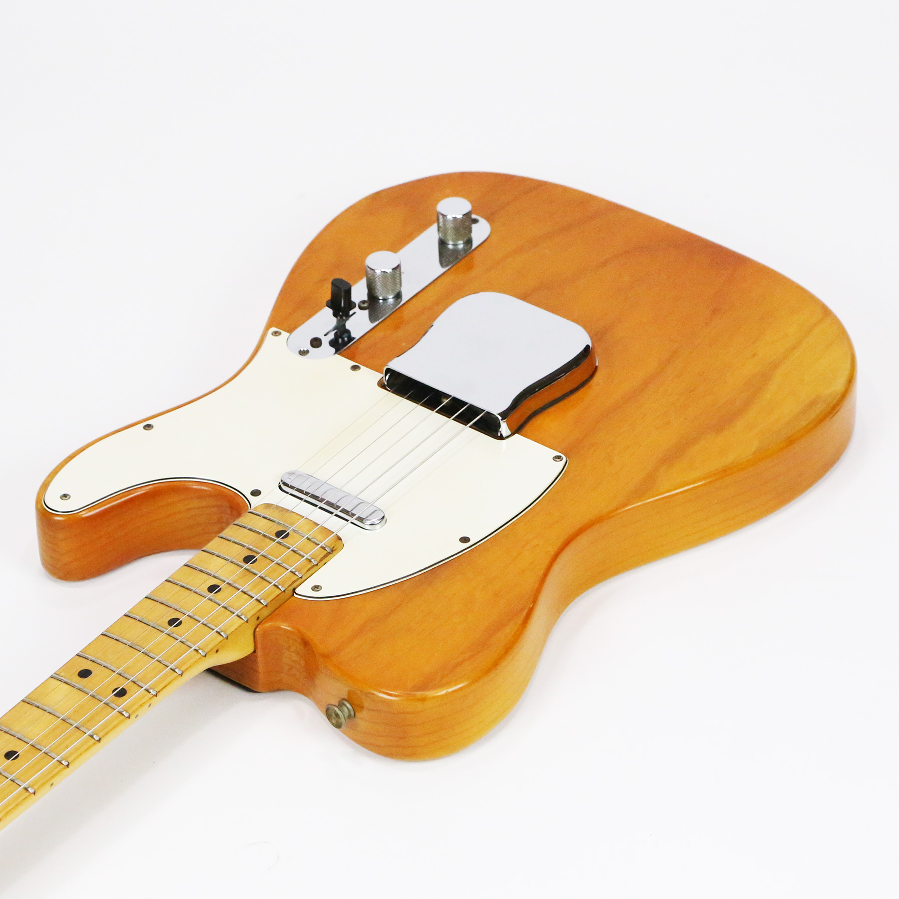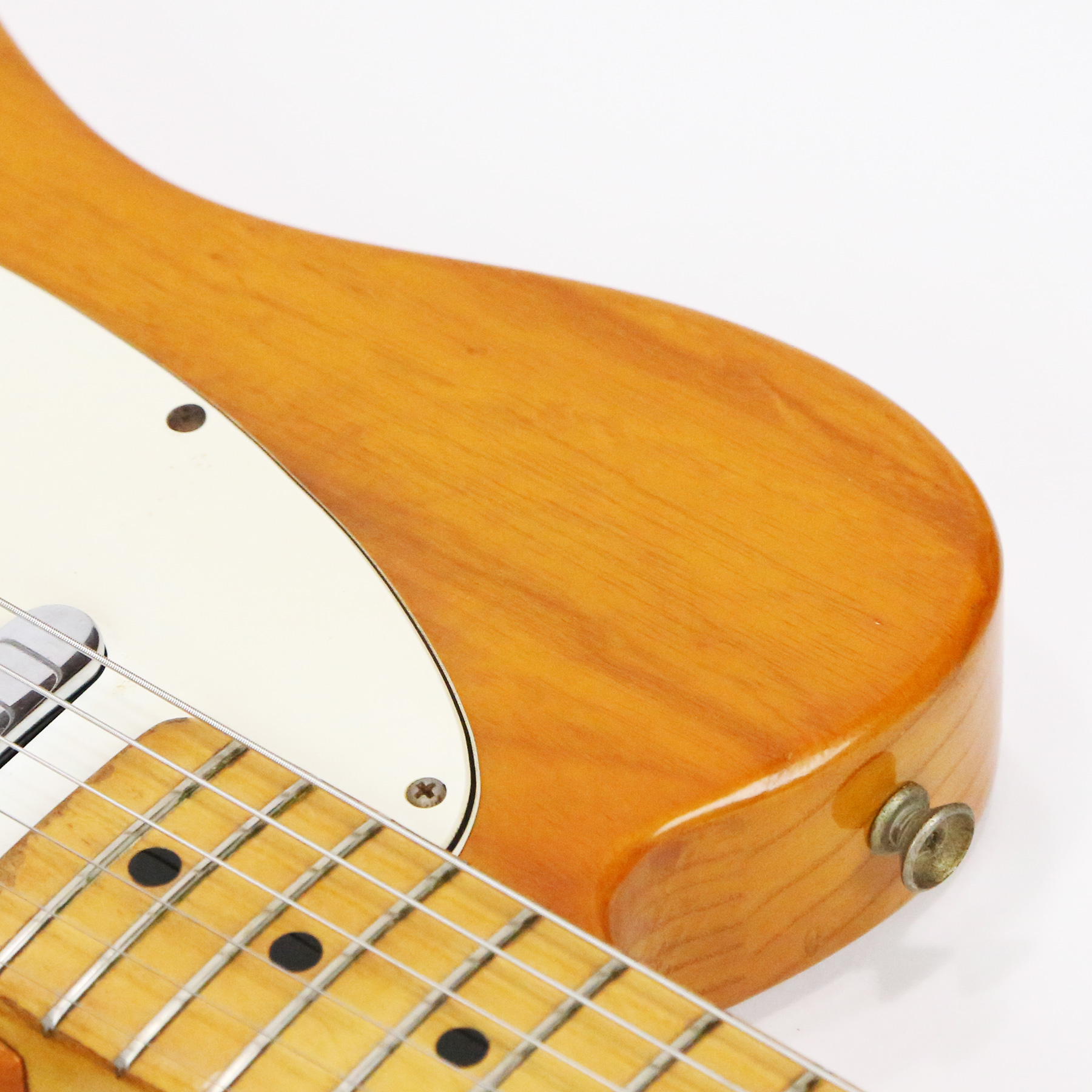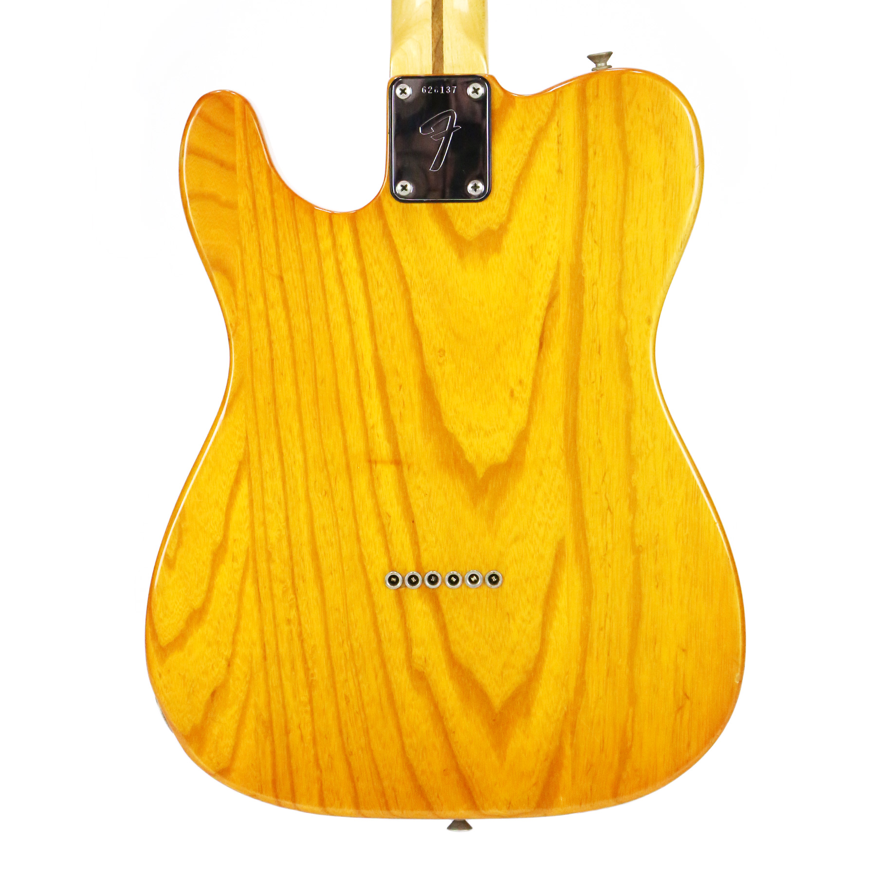 – A handsome survivor with attractive patina, this late white guard Tele displays a wonderful butterscotch yellowing to the natural finish. The clear polyurethane finish has evolved into a wonderful butterscotch color from UV-induced darkening. It does not smell of smoke and doesn’t emit an odor.