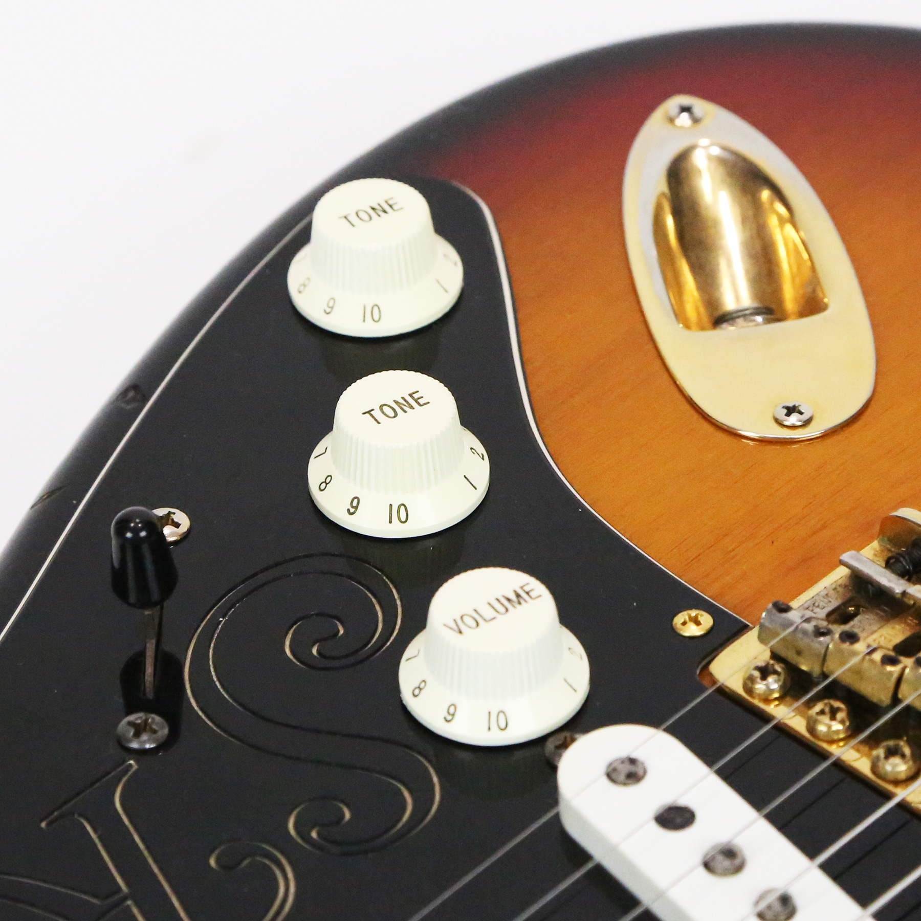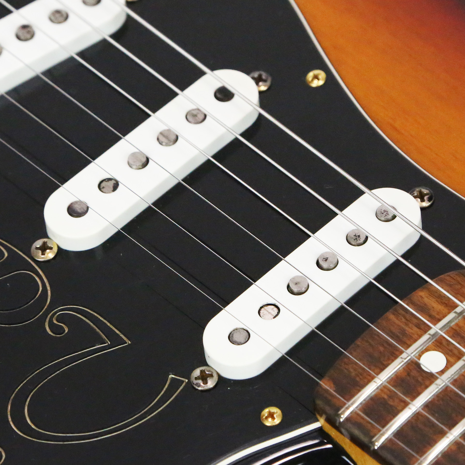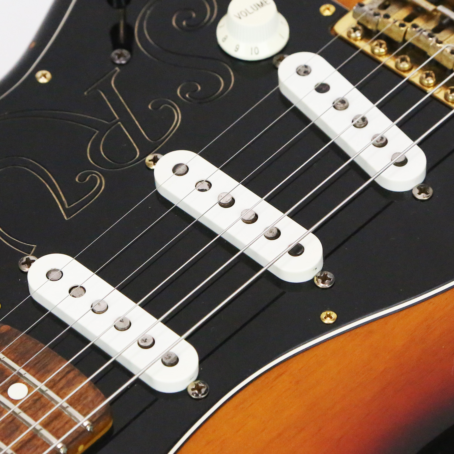 – Released in 1992, this first generation SRV signature with Pau Ferro fretboard is a wonderful player’s model. It features a Poplar body with Ash veneer, the aforementioned Pau Ferro fingerboard on maple neck, and robust Texas Special pickups.