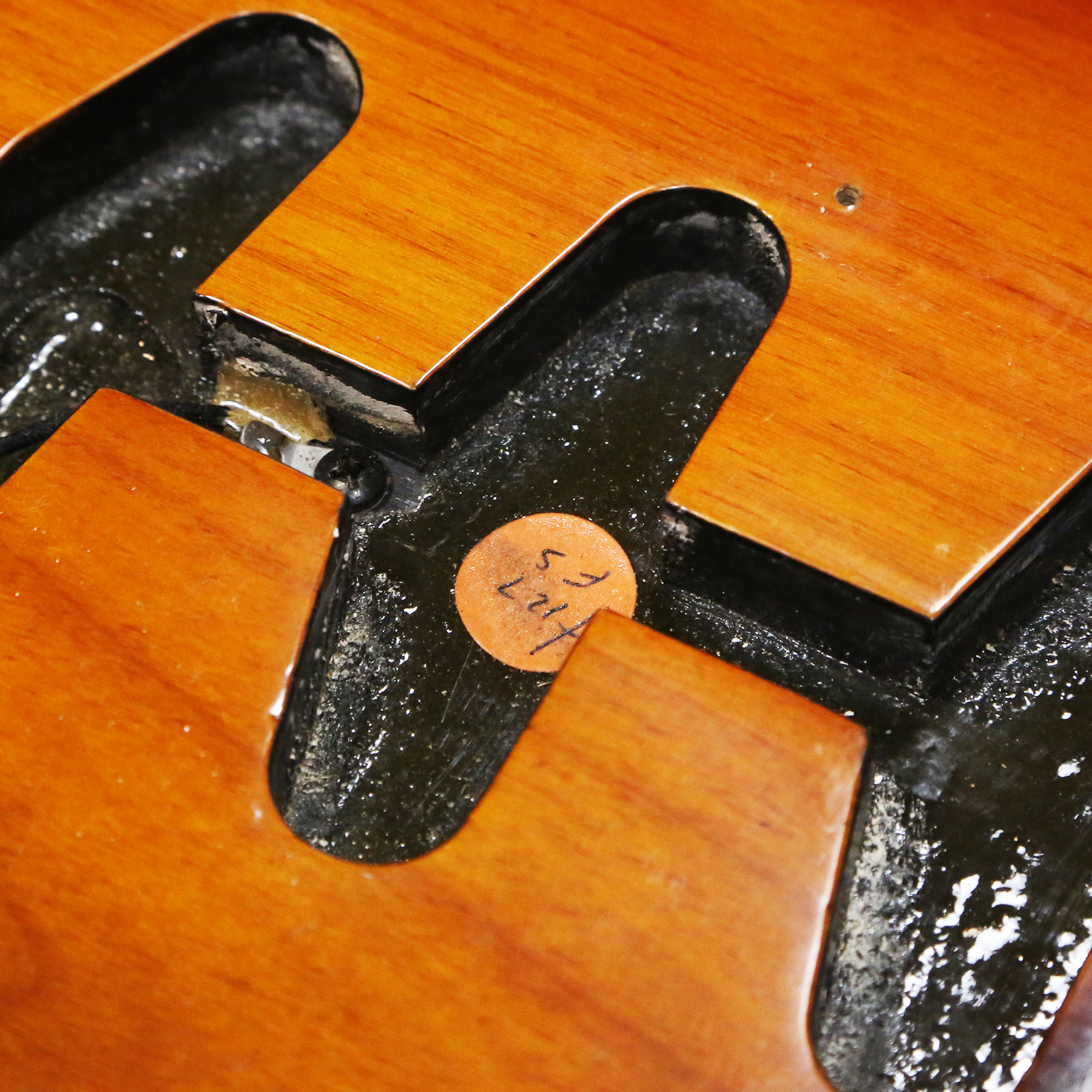 – This is a great feeling guitar with super low action that measures .085″ at the 12th fret. A great player and a particularly good sounding guitar, it’s understandable as to why there’s more than moderate playing wear on the body.