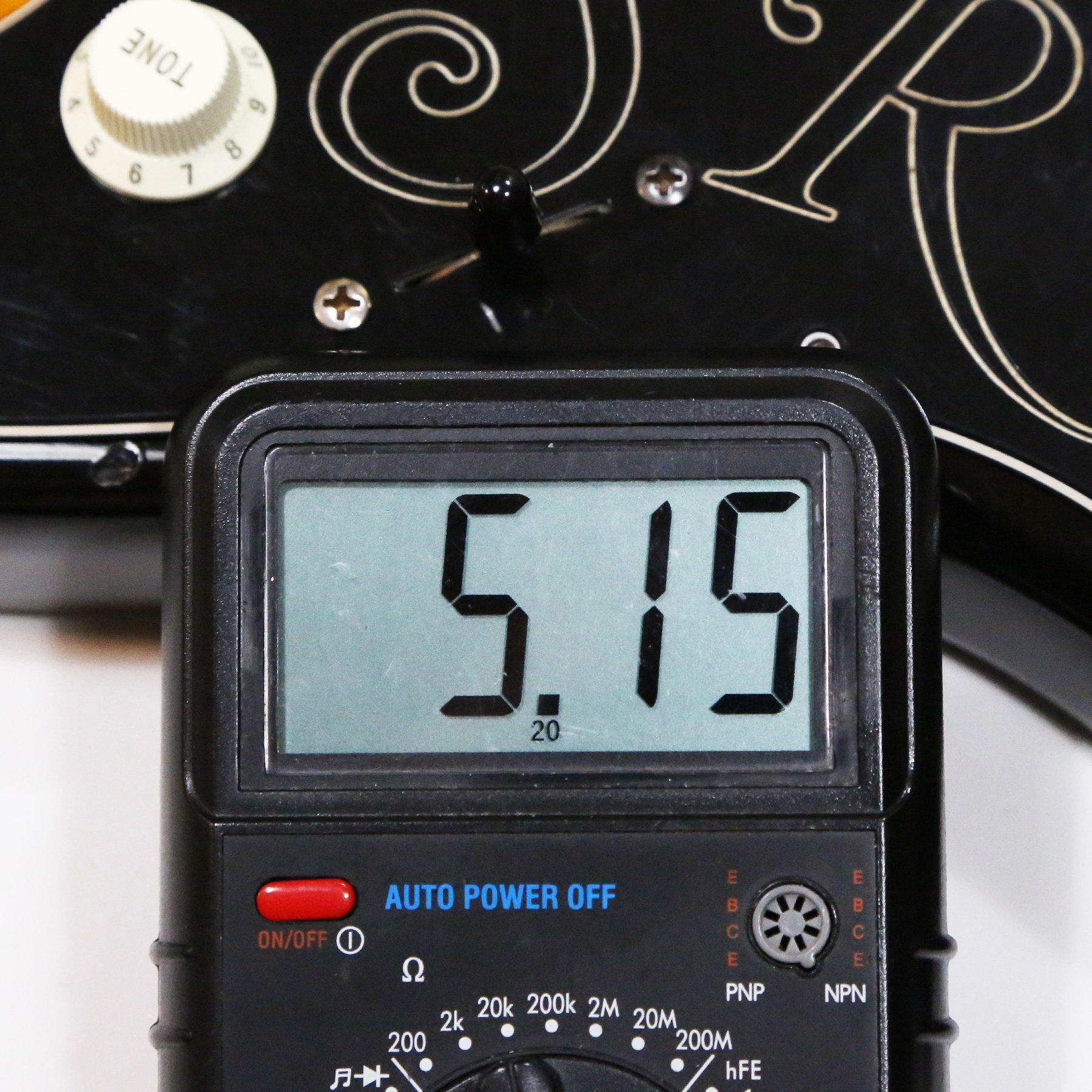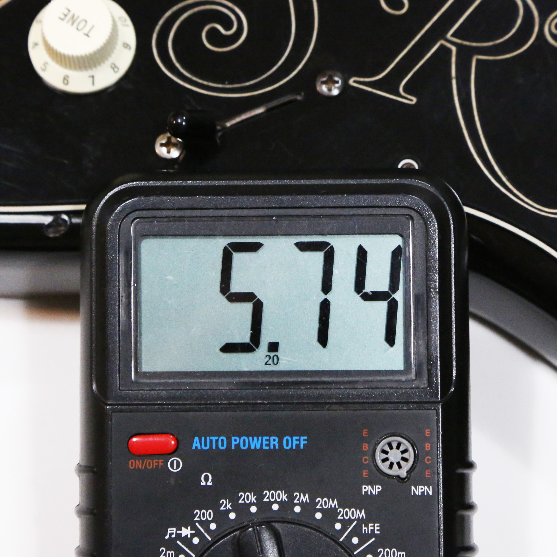 – Pickup measurements: 5.74 kOhm (bridge), 5.15 kOhm (middle), 5.02 kOhm (neck).