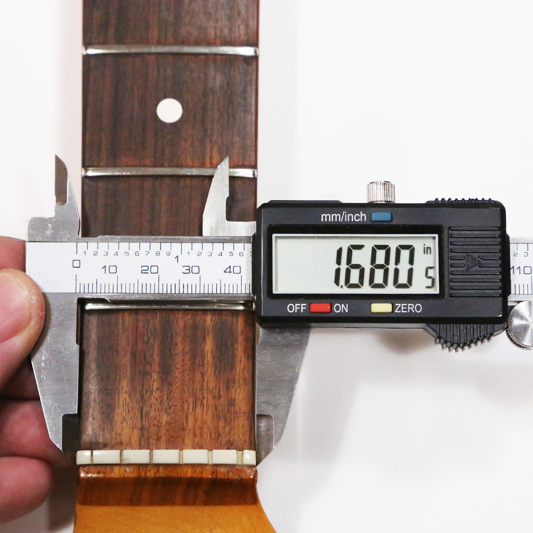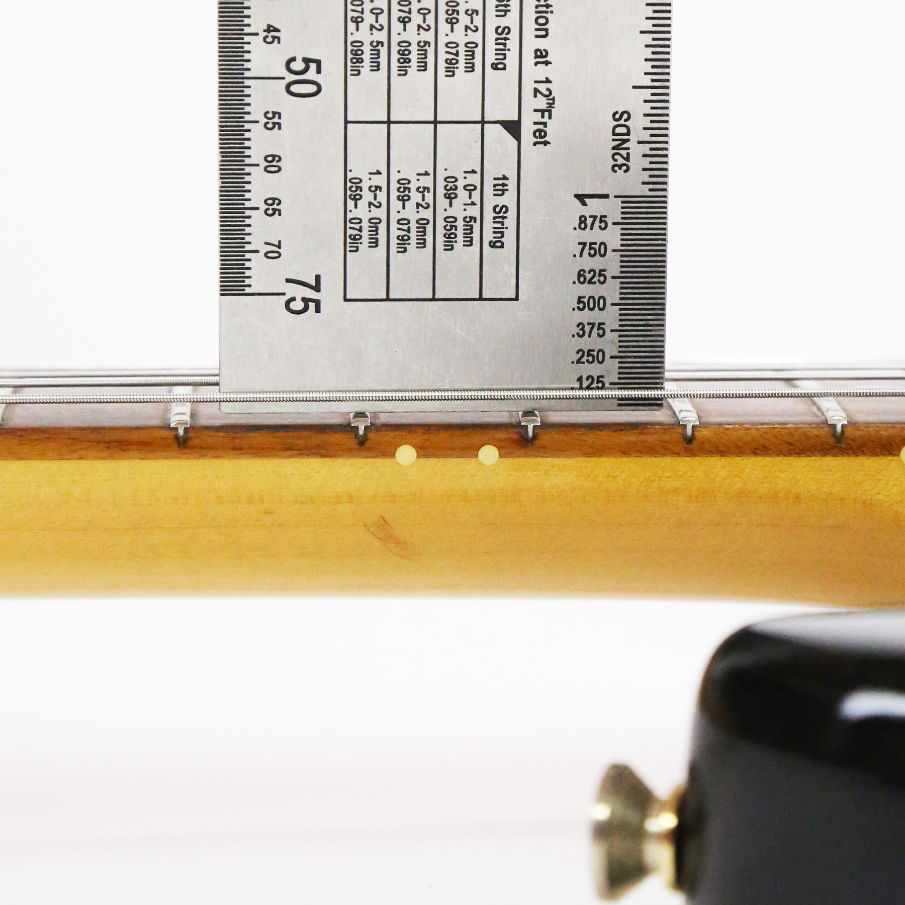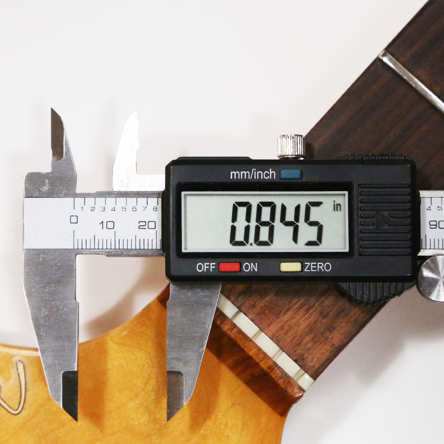 – Neck measurements: 1.680″ nut width, .845″ depth at 1st fret, .967″ depth at 12th fret.
