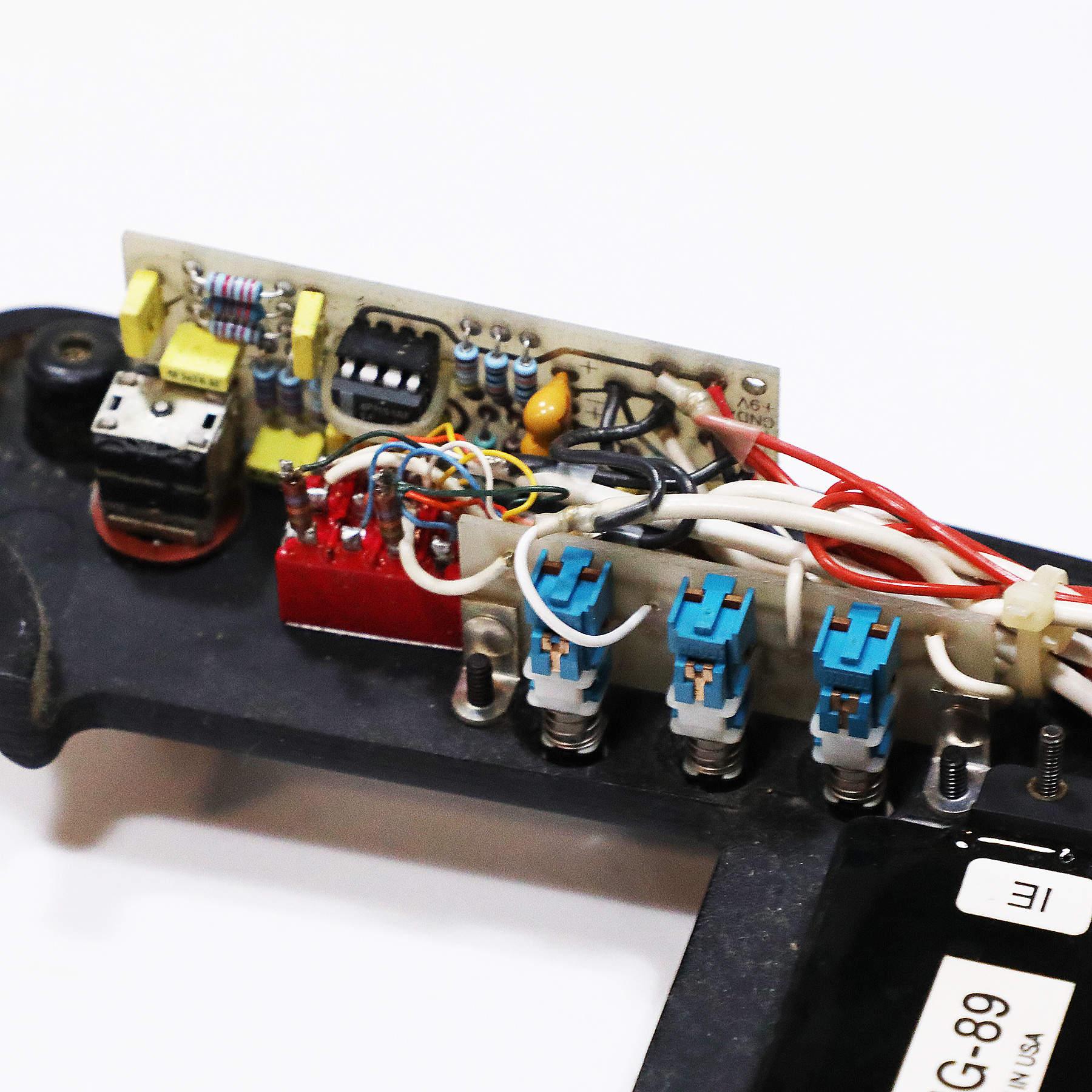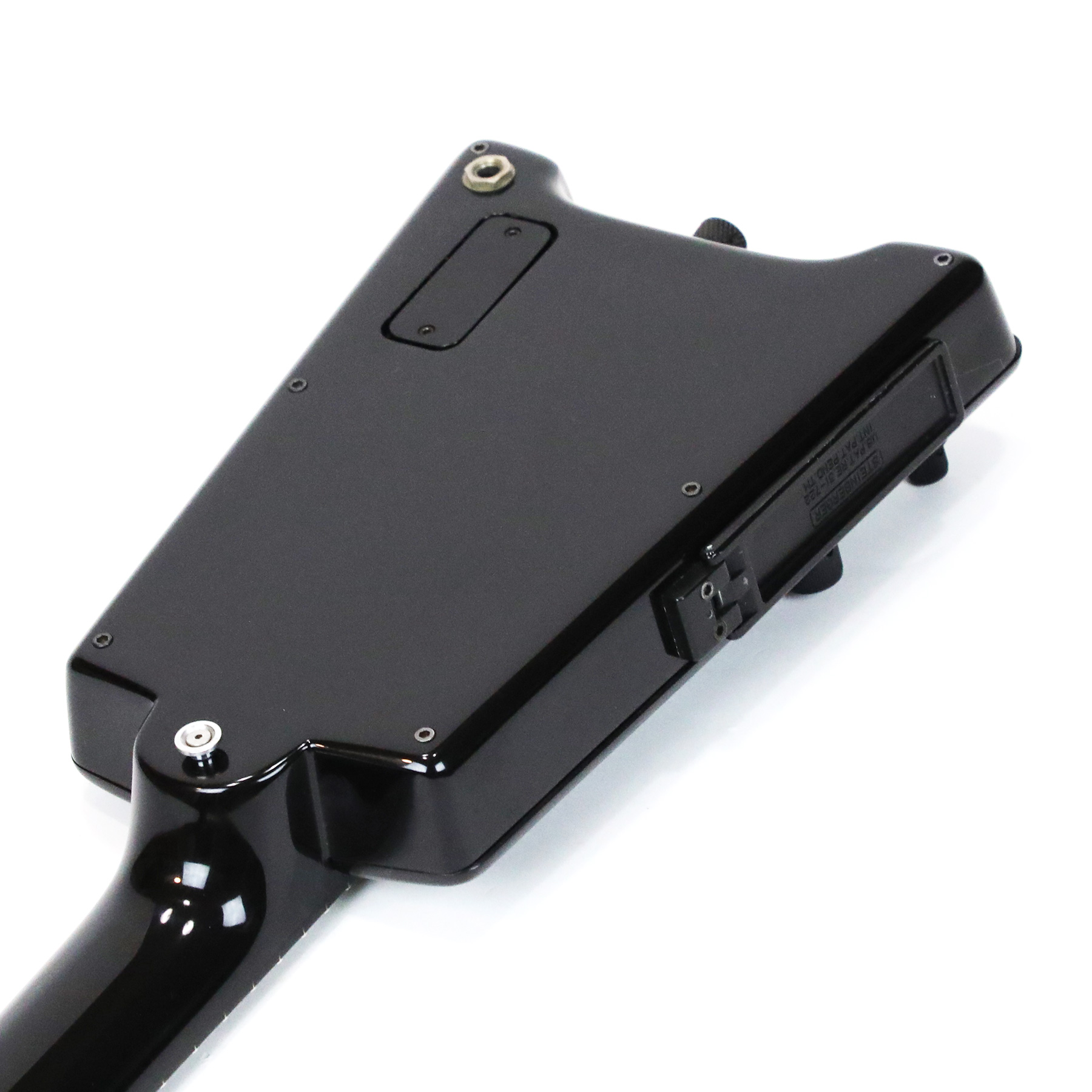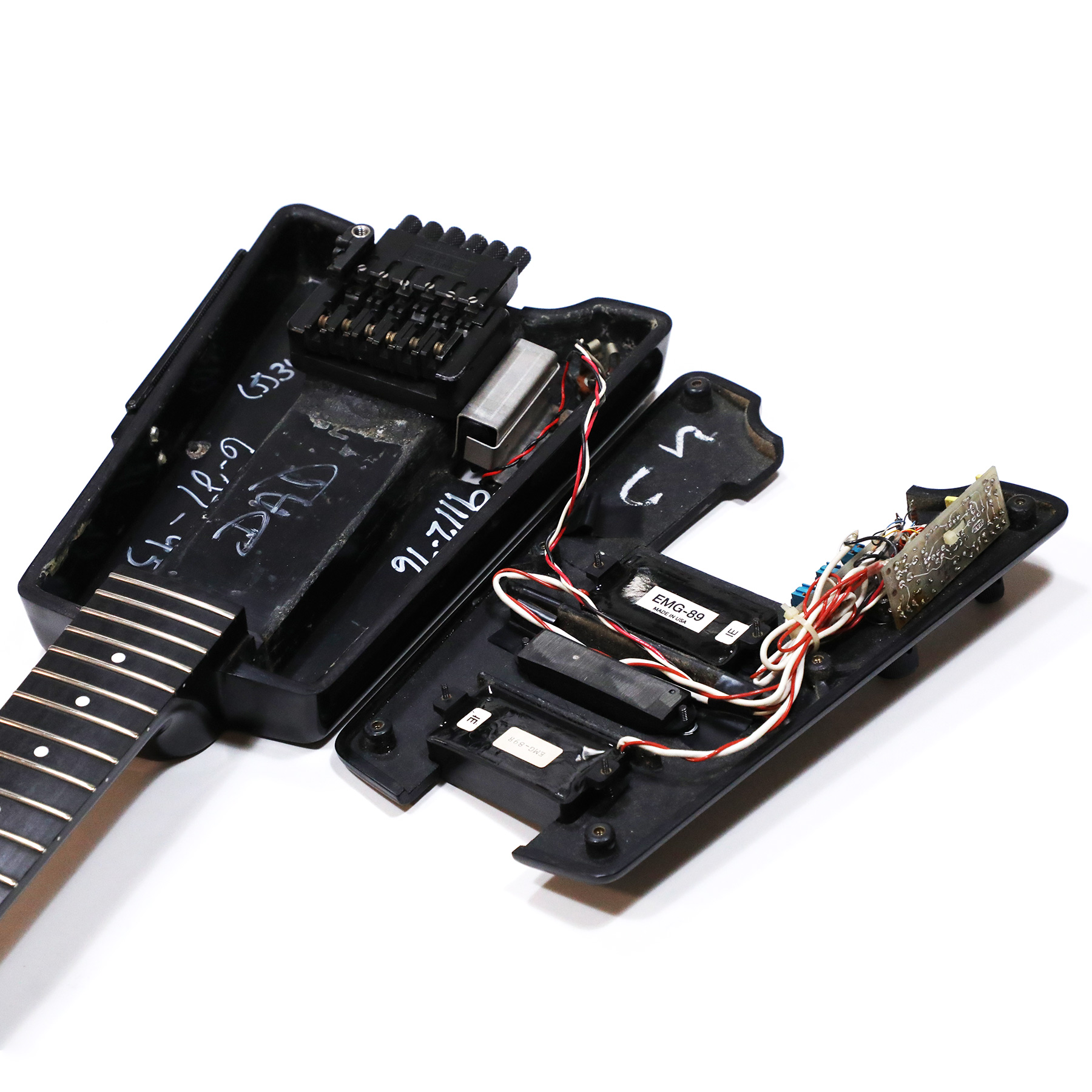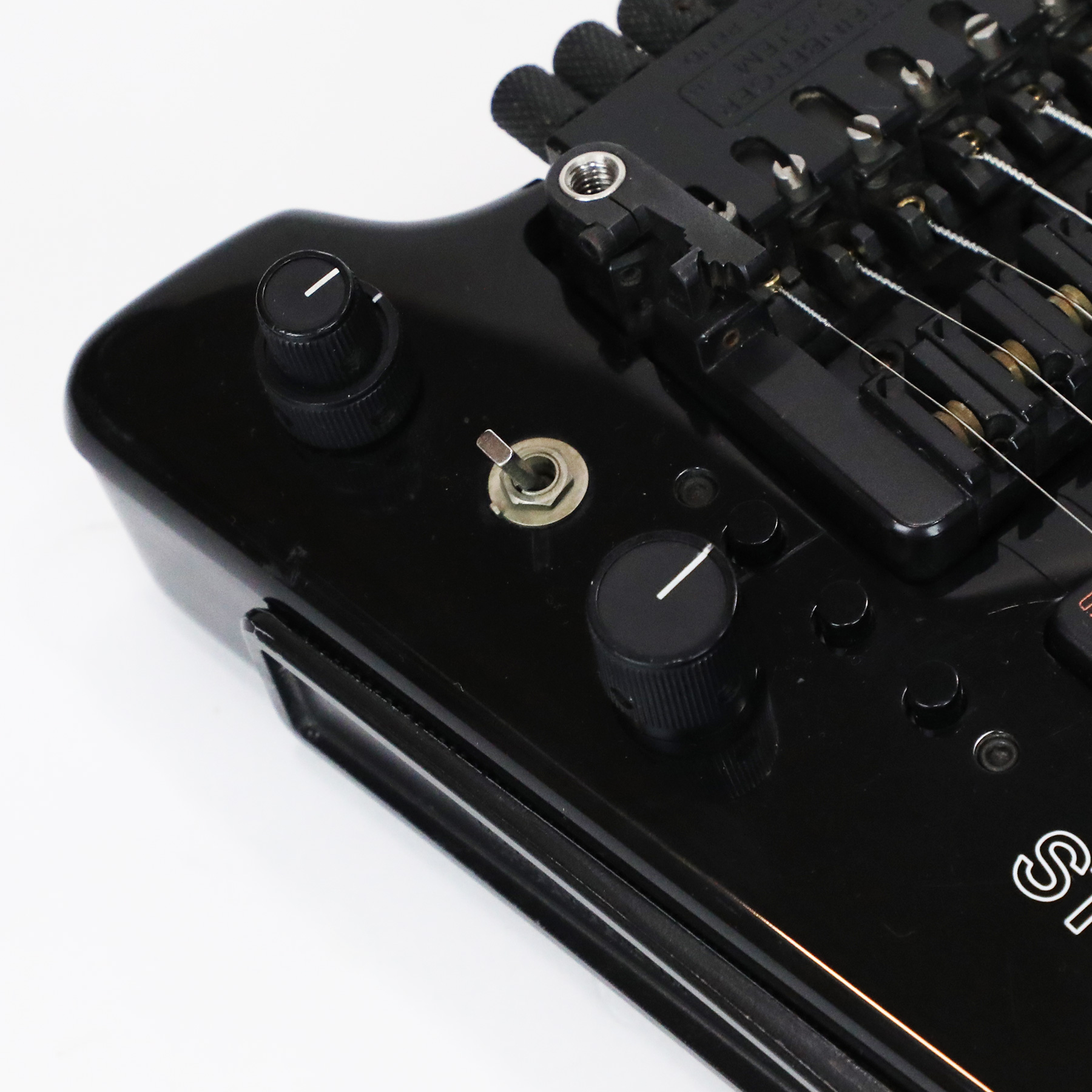 – The original vibrato arm whammy bar has been replaced with a matching black anodized finish version.