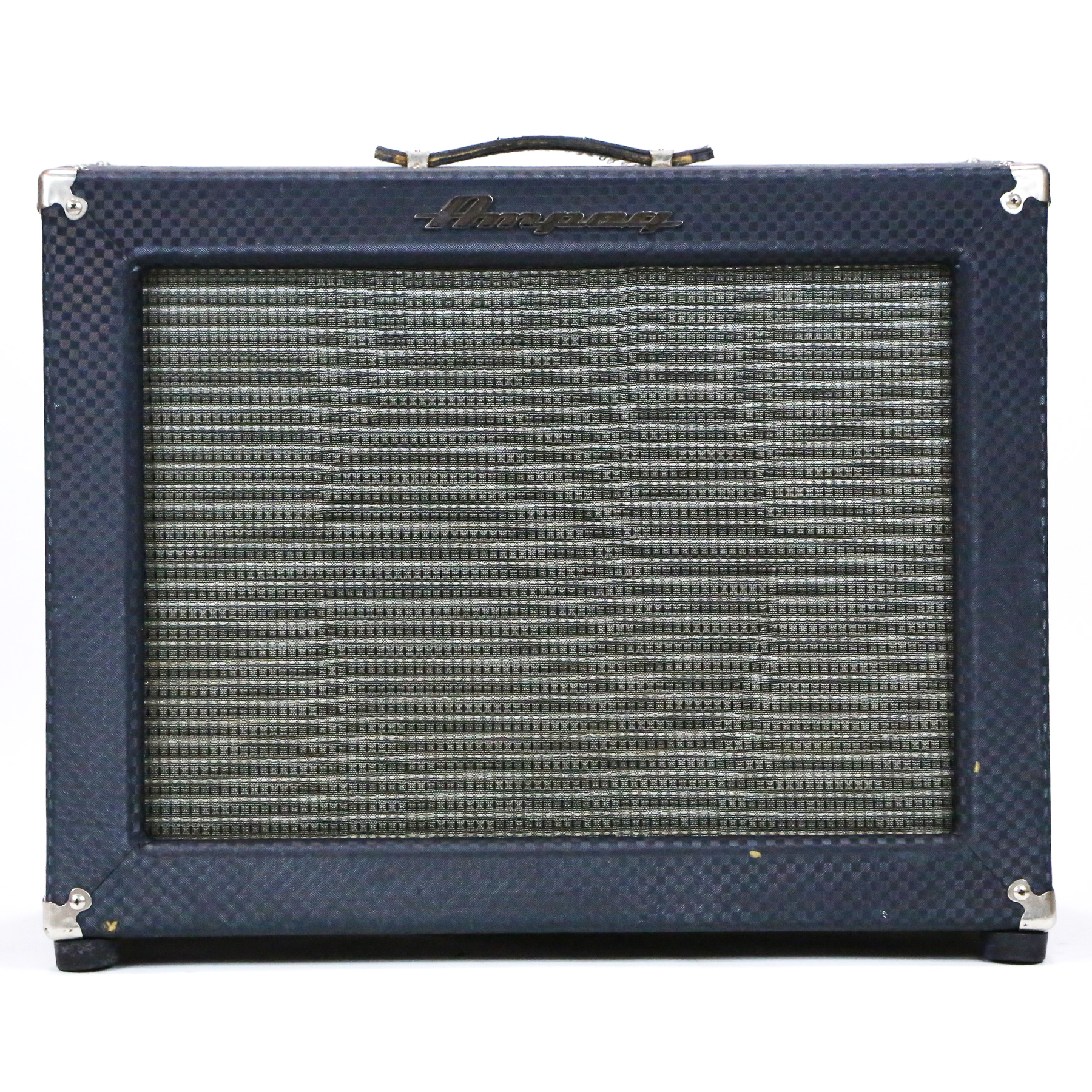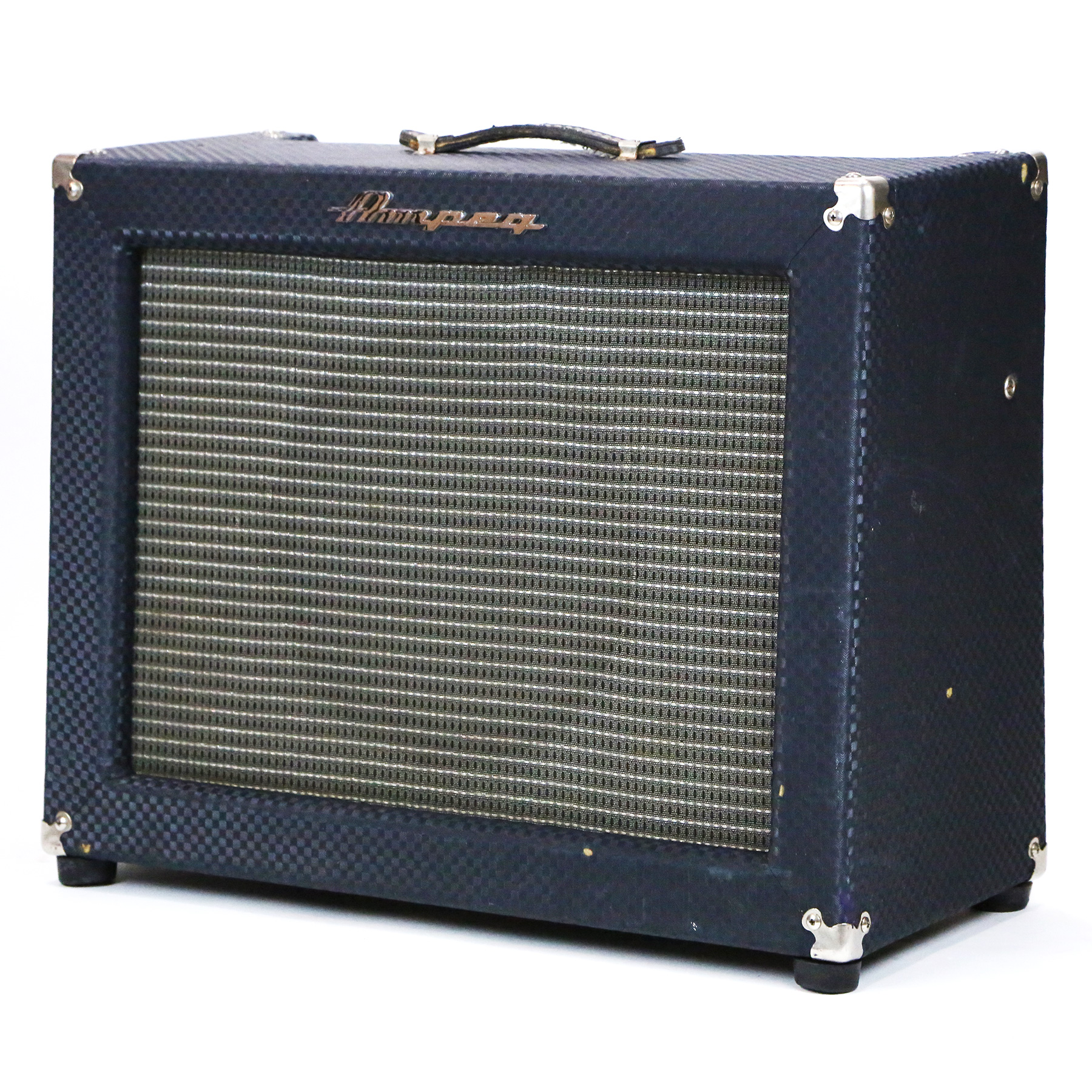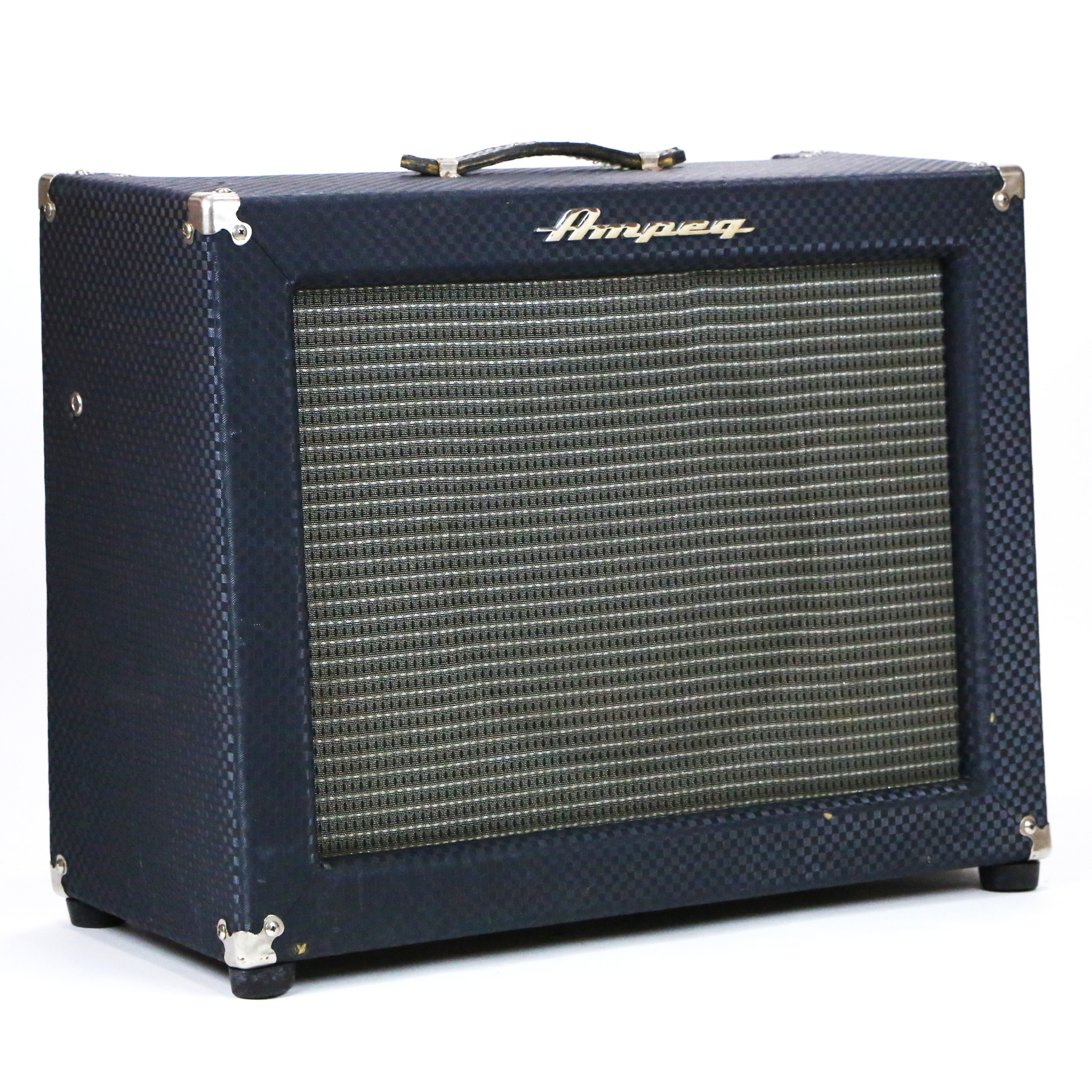 – Like the original, the late-’90s/early-’00s reissue features a 1 x 12″ speaker in a mid-sized combo cabinet, as well as, a full-size spring reverb tank. Unlike a vintage version, this amp sports a 2-channel tube preamp: one clean and one with drive. While the clean channel sounds similar to a classic and crisp Ampeg, the gain channel sounds much more Marshall-esque in nature.