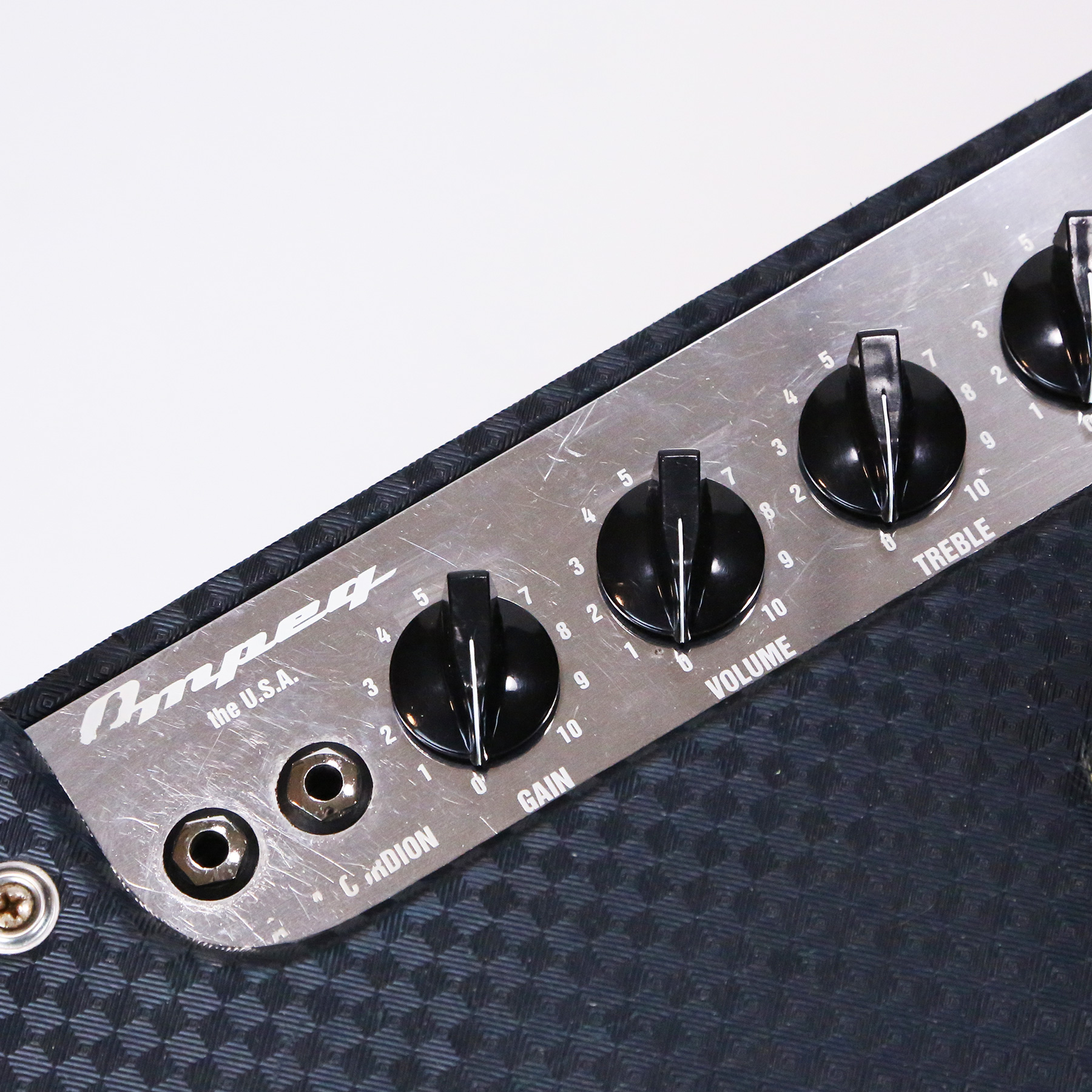 – Features: 50 watts, (2) EL34 power tubes, (3) 12AX7 preamp tubes, (1) 12″ Ampeg Special Design speaker, Gain/Volume/Treble/Mid/Bass/Master/Reverb controls.
