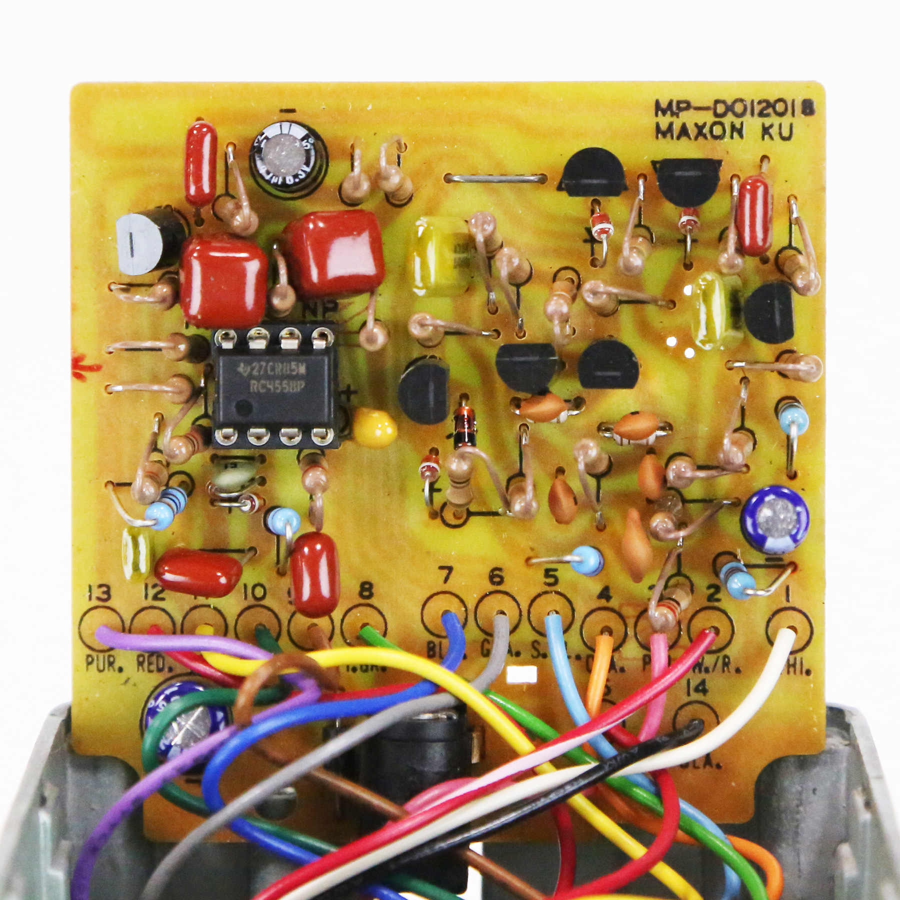 – The silver label features a large “CE” (post-’96) and both the circuit and battery clip display the Maxon designation (pre-’02).