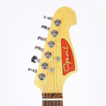 – Extremely well made, this custom electric guitar is most akin to an early production ’90s Reverend electric guitar. With a Danelectro-inspired Masonite style body construction (which is similarly made from a wood-based phenolic resin used to make the Reverend Slingshot) and overall identical build quality, this Los Angeles made instrument is a wonderful and rare guitar. Just like a Reverend, it is also a string-through design with a bolt-on neck.
