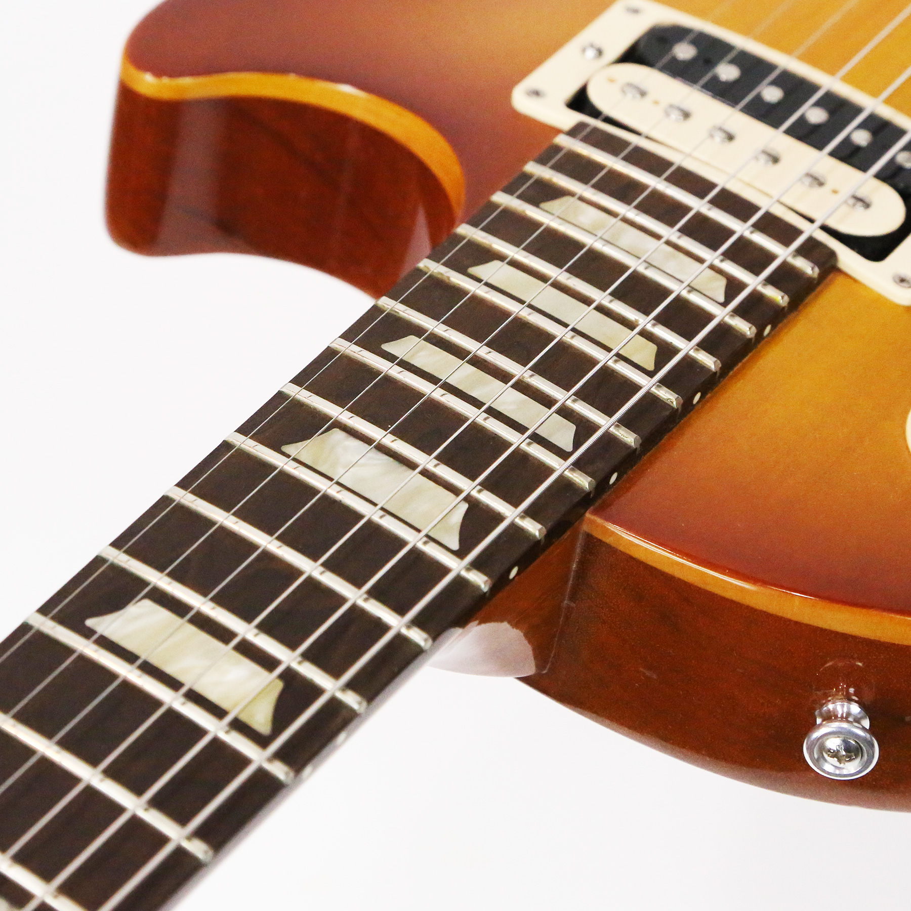 – Body: Solid mahogany body with carved A grade maple top in Iced Tea Burst finish. Stopbar tailpiece with Tune-O-Matic bridge. Chrome hardware.