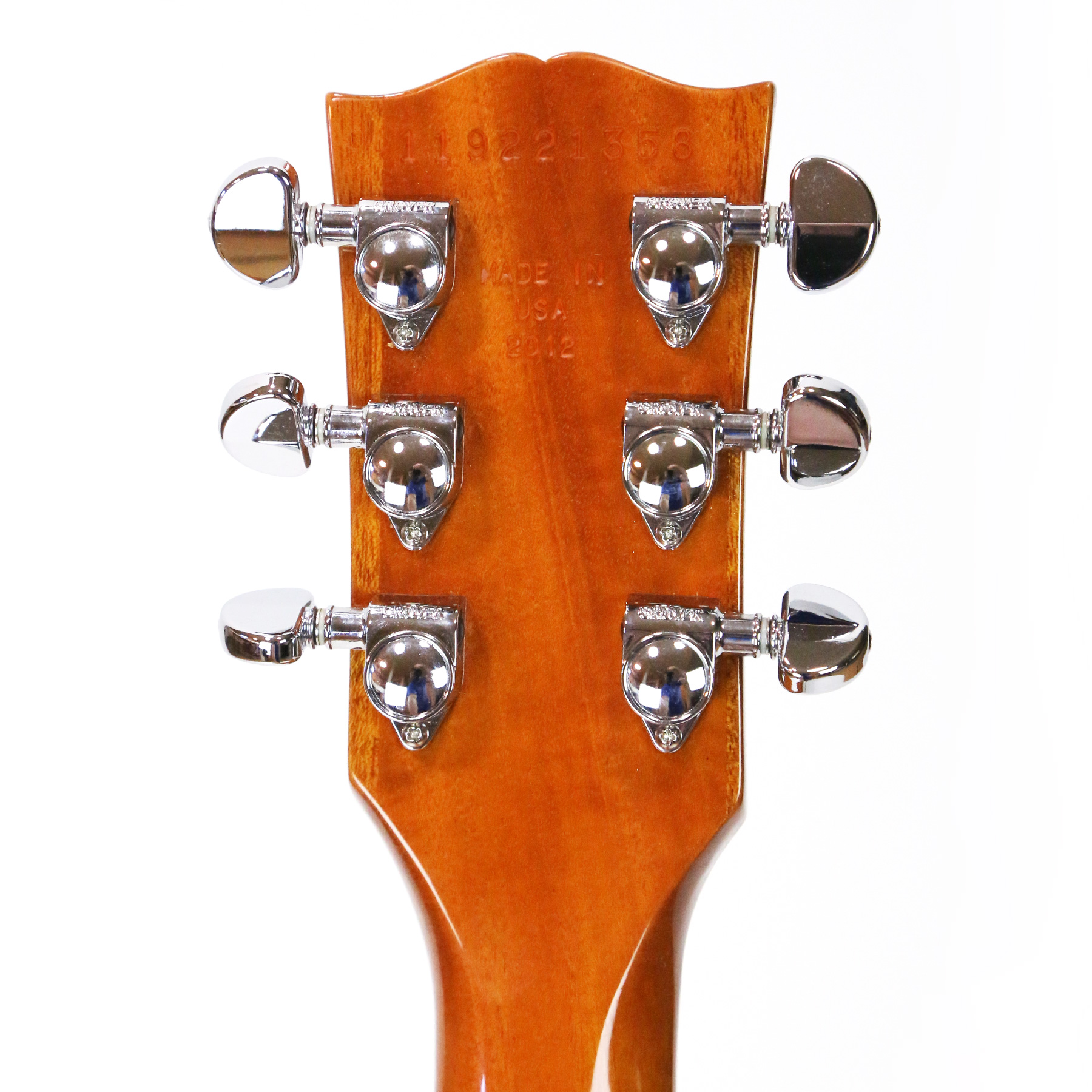 – Neck: Nicely rounded, ’50s profile mahogany neck with unbound baked maple fingerboard with mother of pearl trapezoid inlays. Frets are in great shape with no wear. Grover Rotomatic tuners are in perfect working condition.