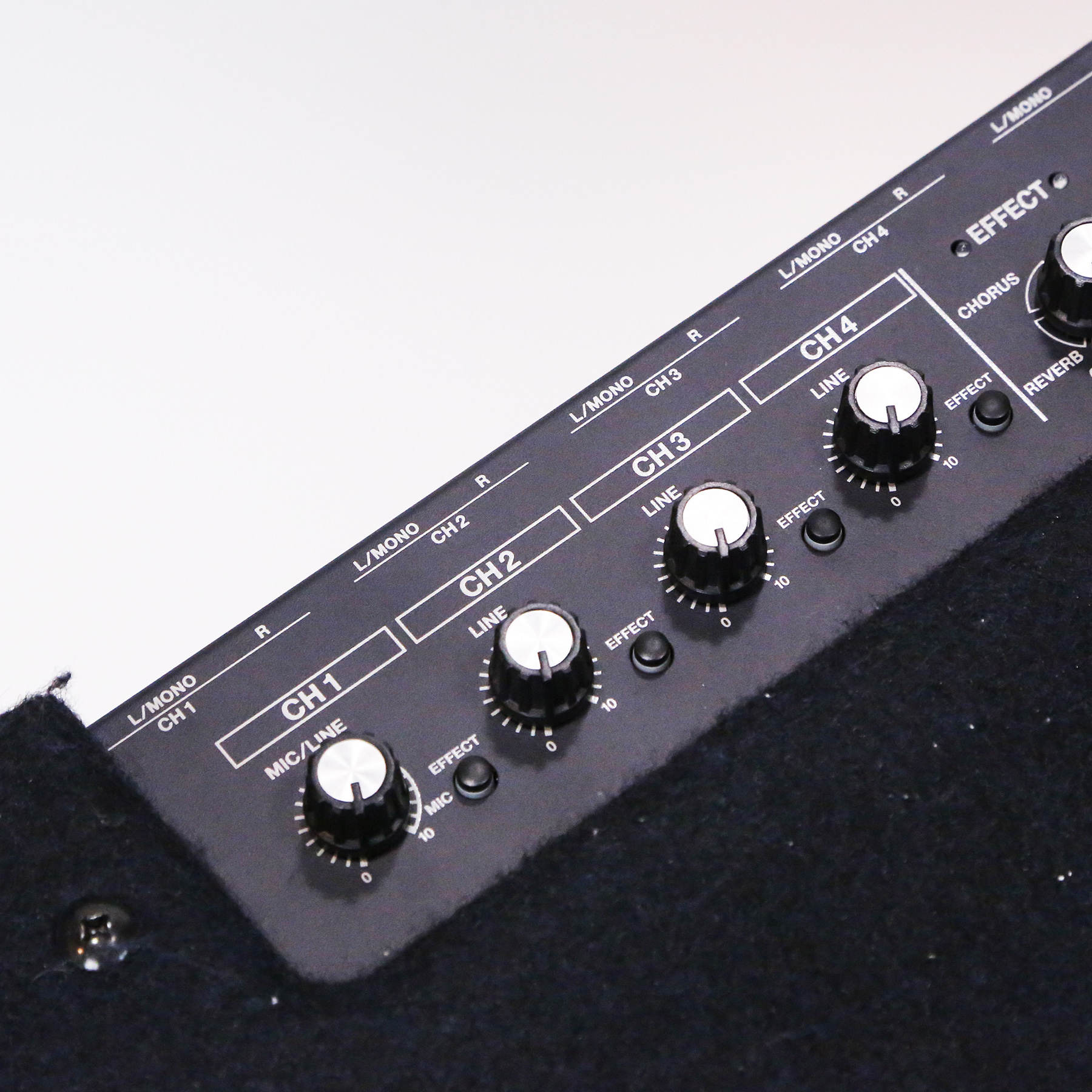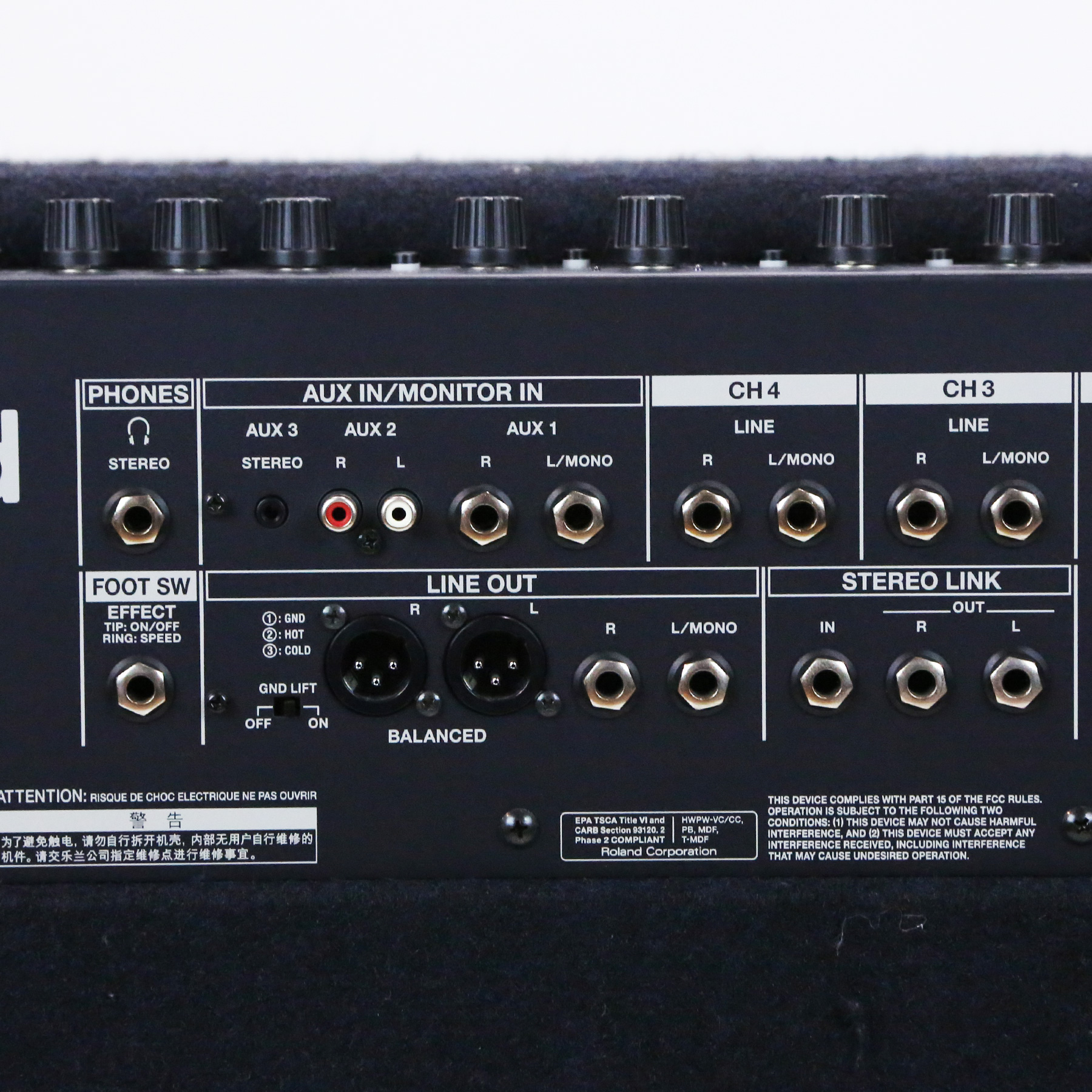 Roland’s most powerful KC amp is a complete stereo sound system in a single package, making it ideal for backline amplification, stage monitoring, and even main PA use. With four stereo line input channels available, you can connect keyboards, percussion pads, drum machines, and more. There’s also a dedicated auxiliary input to plug in a smartphone or music player for backing tracks. Channel 1 includes an XLR input too, allowing you to connect a vocal mic for even more versatility. The Aux In channel supports 1/8 in., RCA, and 1/4 in. connections, and features a handy monitor function for working with guide tracks on stage.