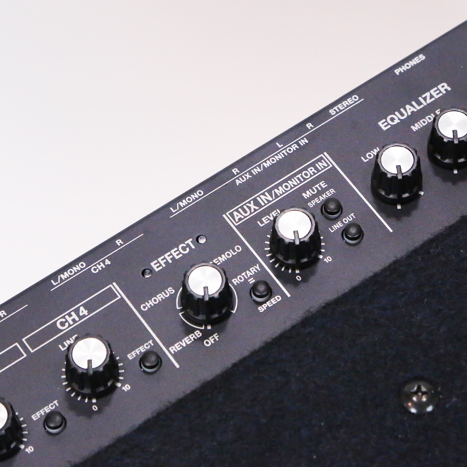The KC-990 comes equipped with four different effects for sweetening your live sound. The chorus effect is derived from Roland’s world-famous JC-series amps, providing unmatched depth and dimension through the KC-990’s stereo speakers. The amp also includes tremolo and rotary effects that work great with organs and electric pianos, plus a lush stereo reverb for vocals and instruments. By connecting optional footswitches, you can turn the effects on/off and control rotary speed hands-free while performing.