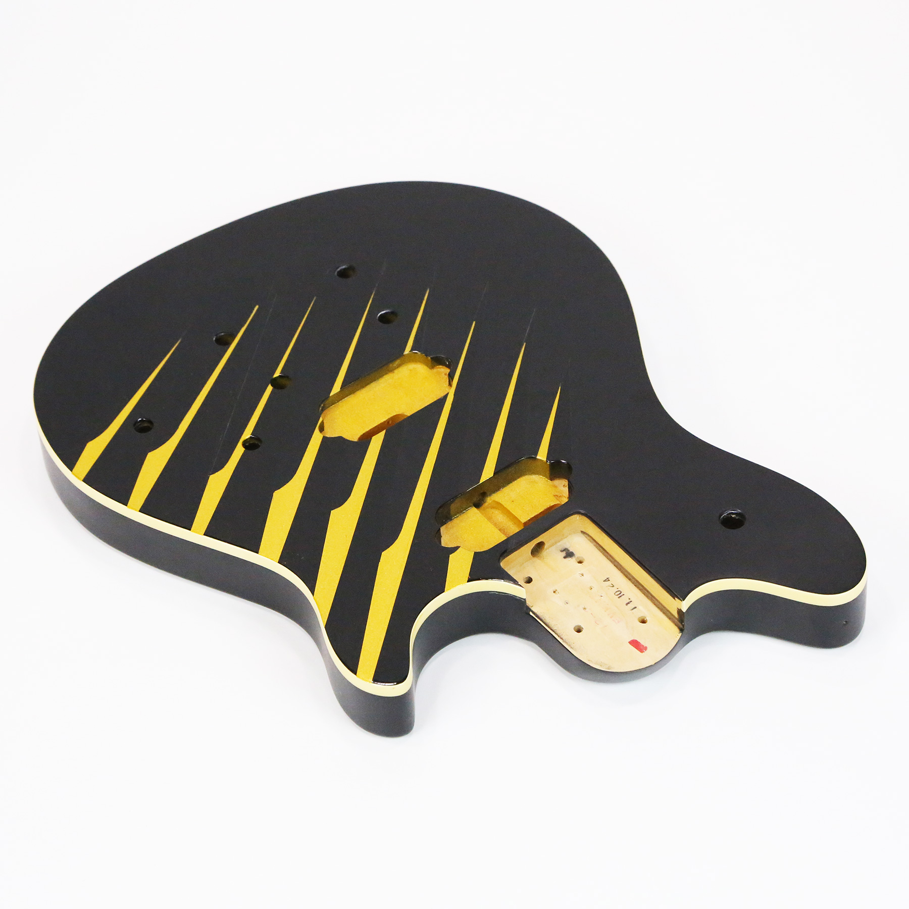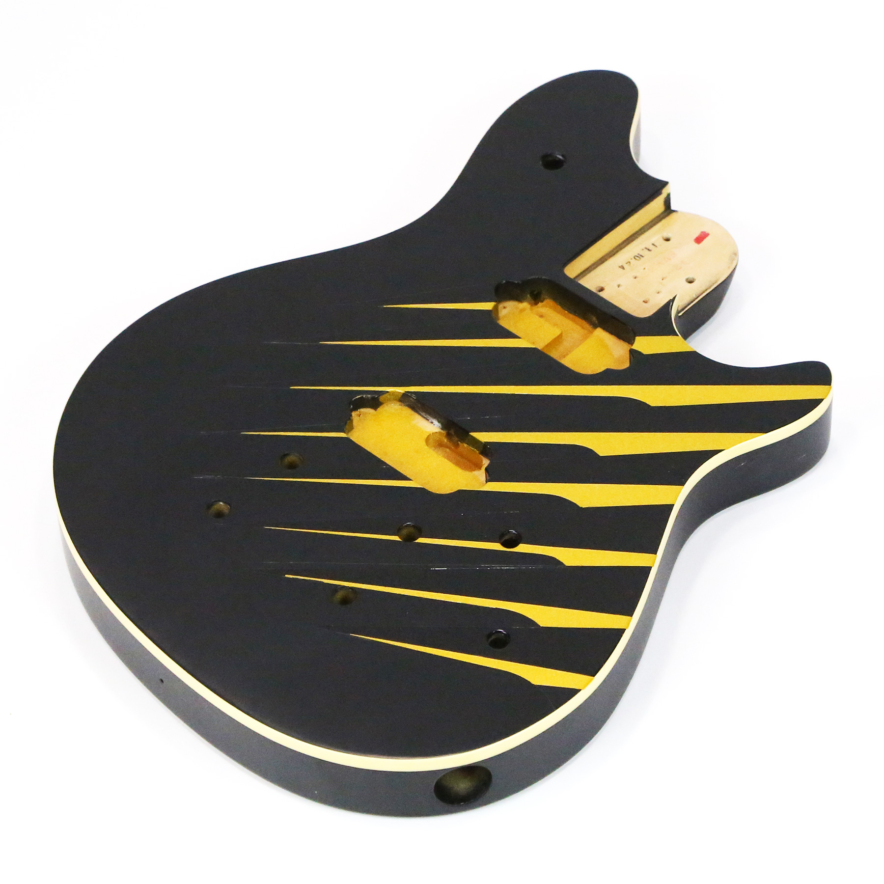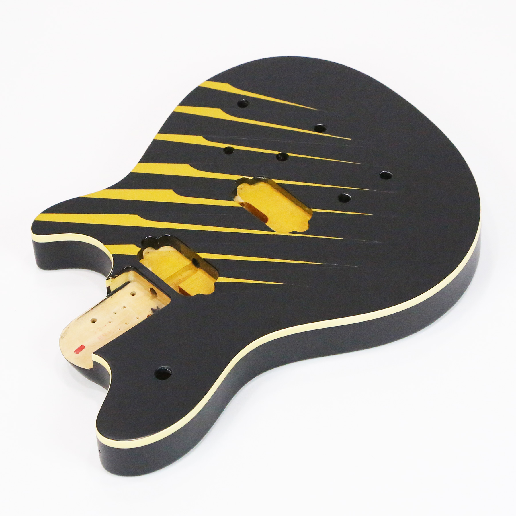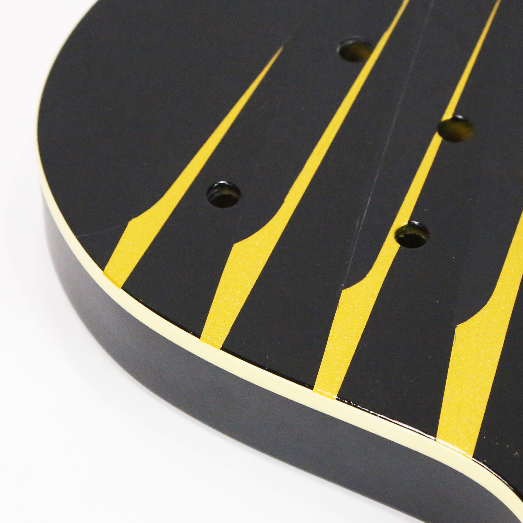- It has a custom paint job applied which features parallel metallic gold lines with gloss black accents. The body is otherwise finished in a matte black.