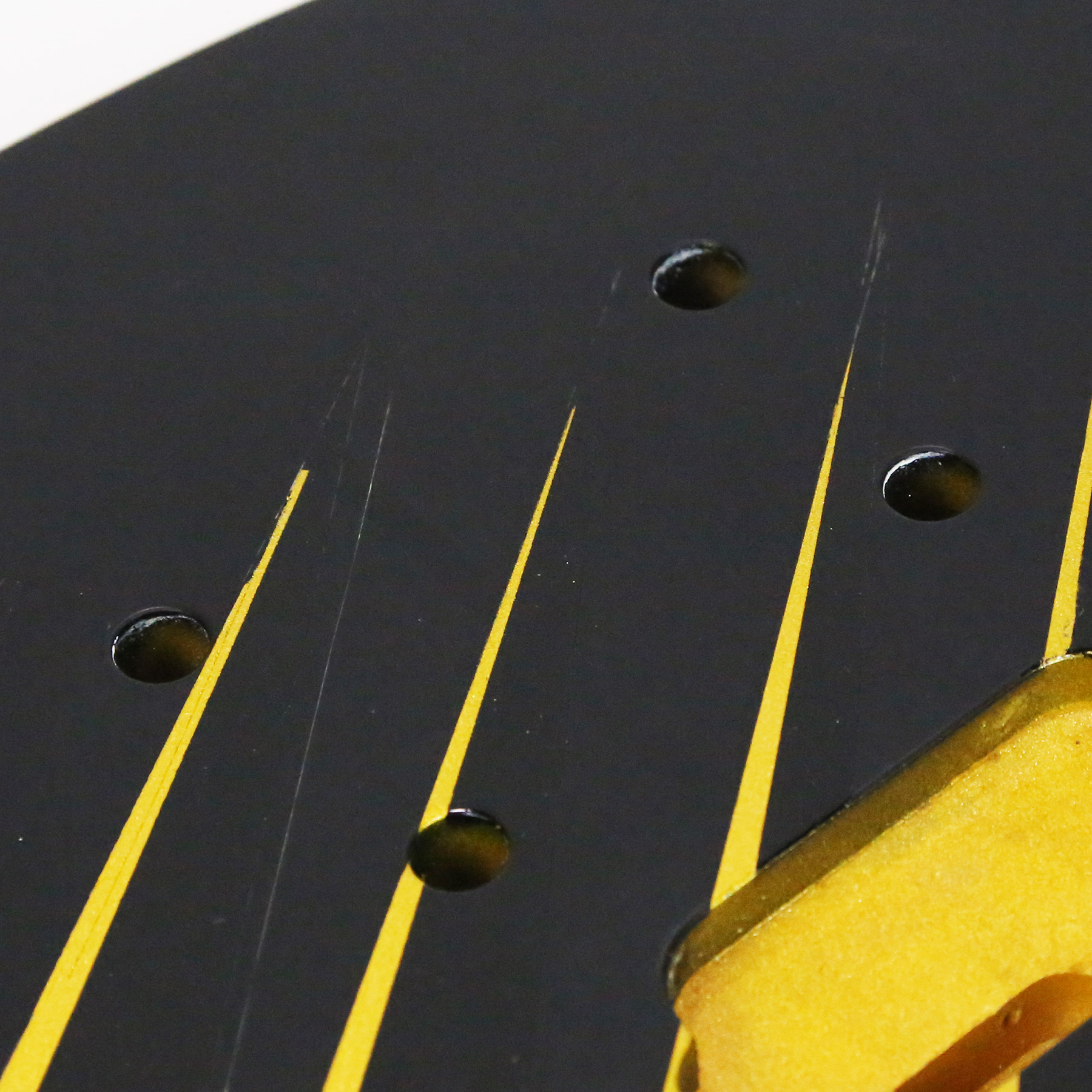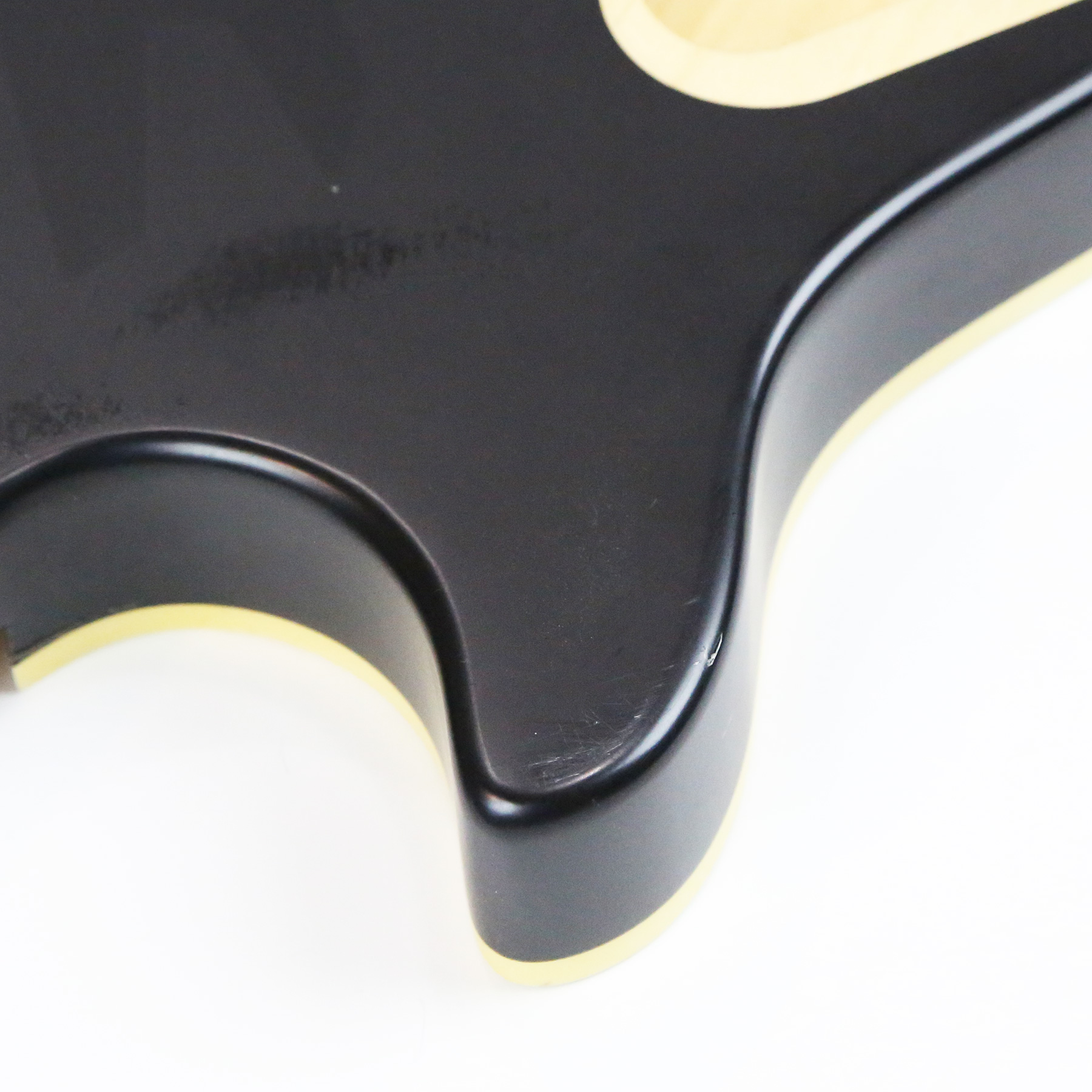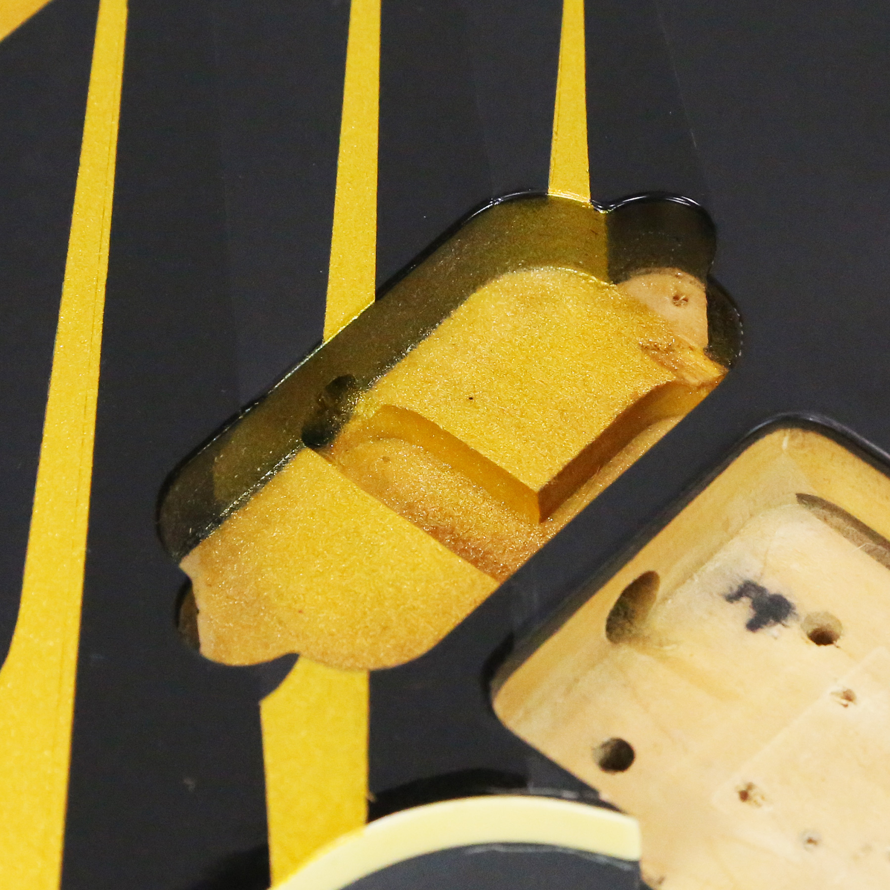 - It has a custom paint job applied which features parallel metallic gold lines with gloss black accents. The body is otherwise finished in a matte black.