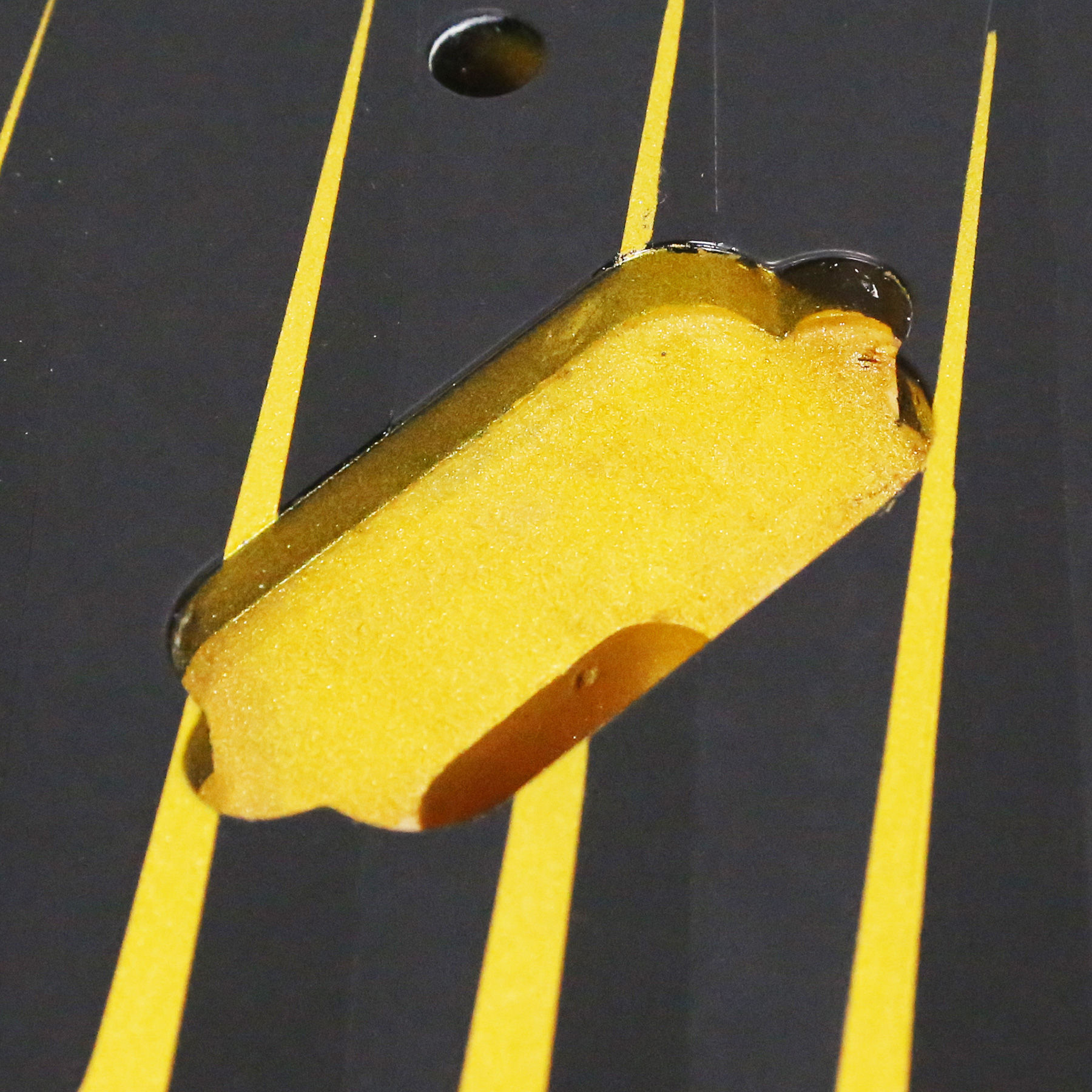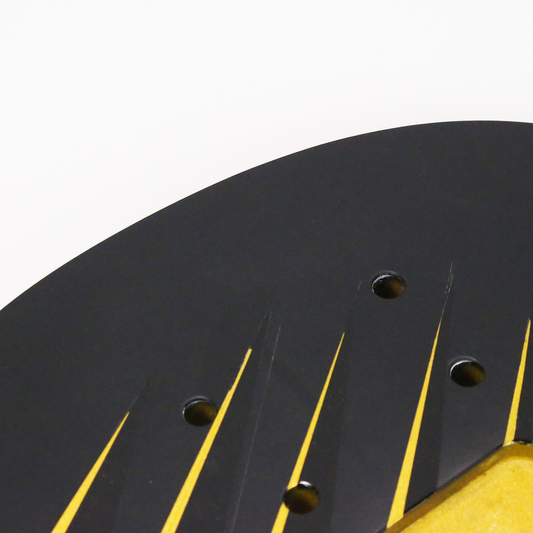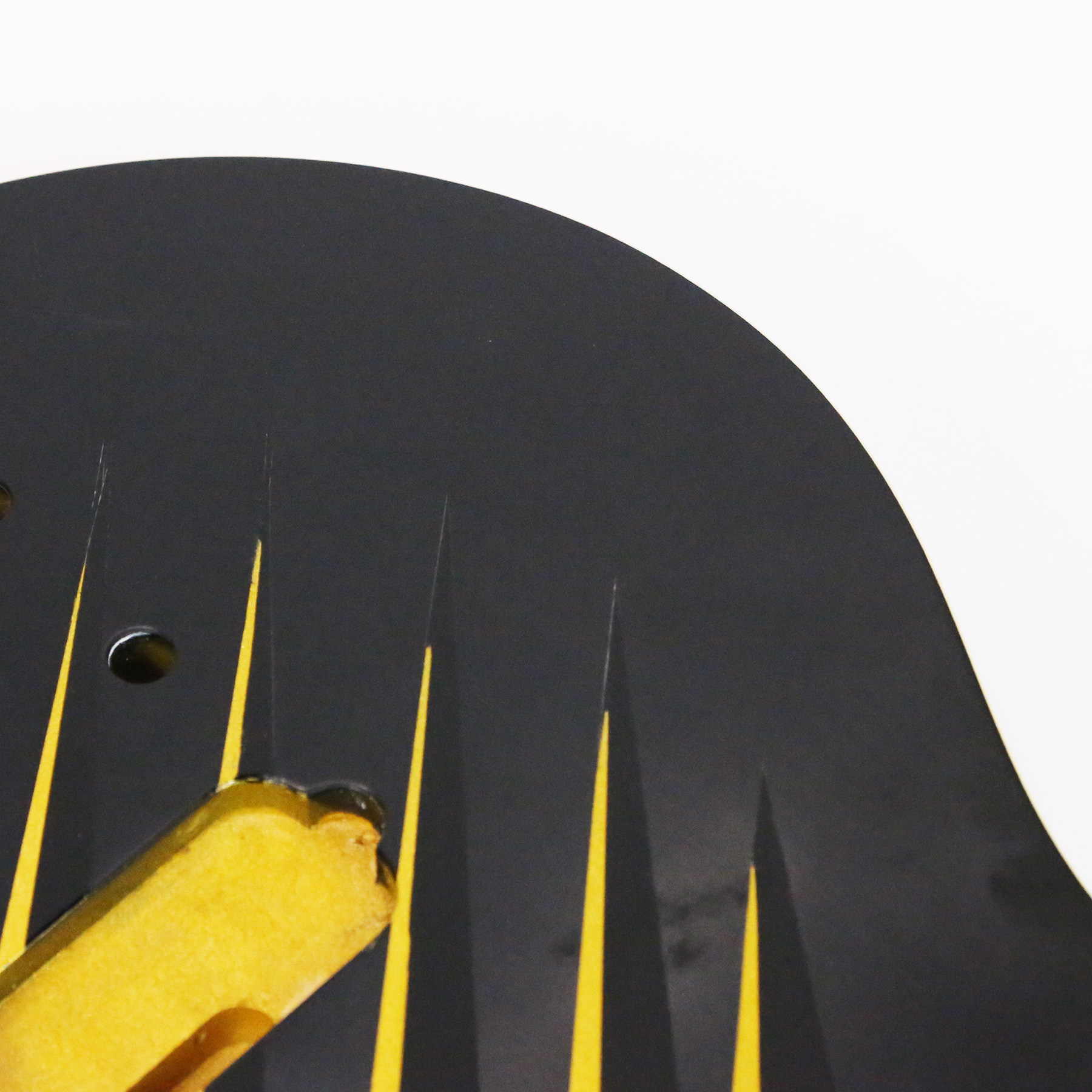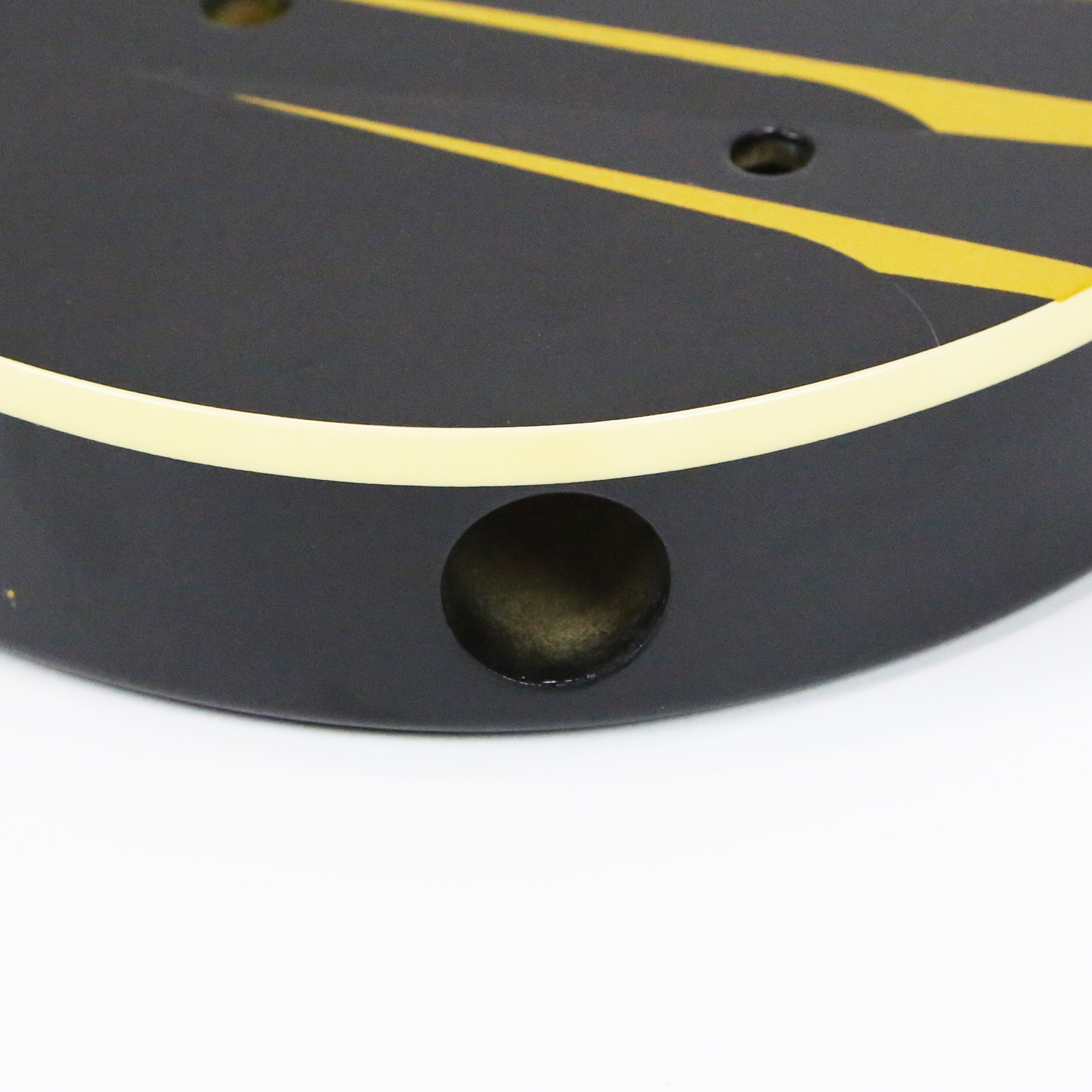 - It has a custom paint job applied which features parallel metallic gold lines with gloss black accents. The body is otherwise finished in a matte black.
